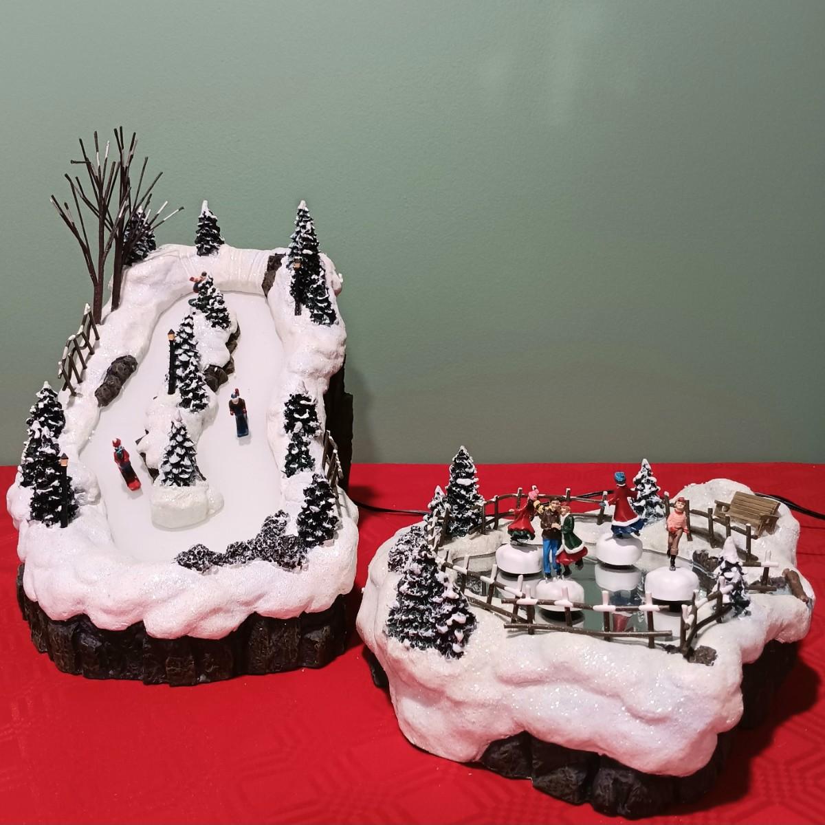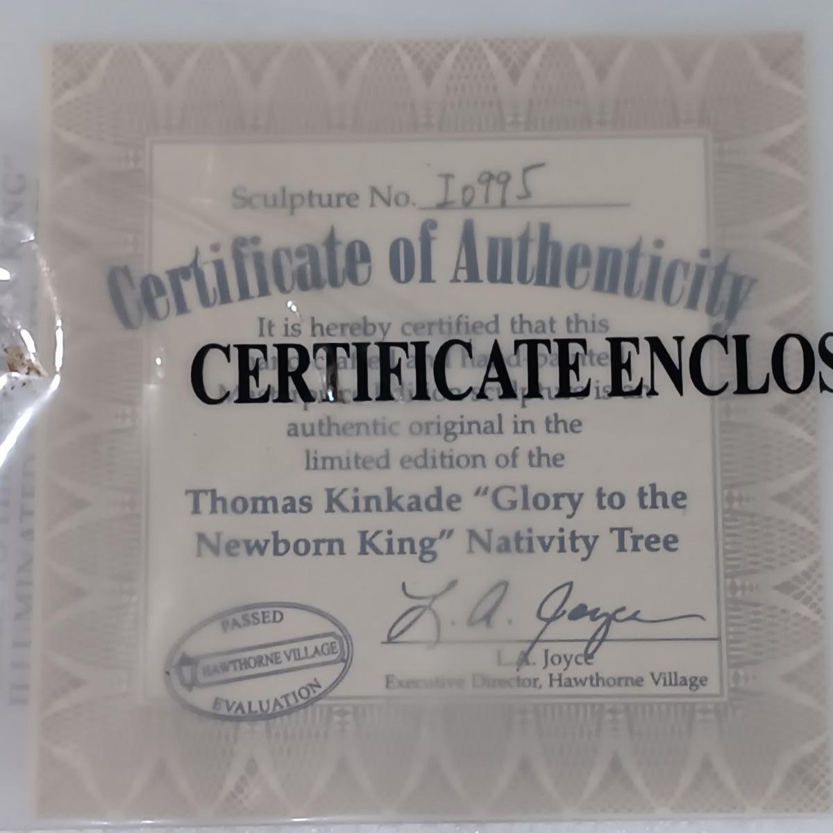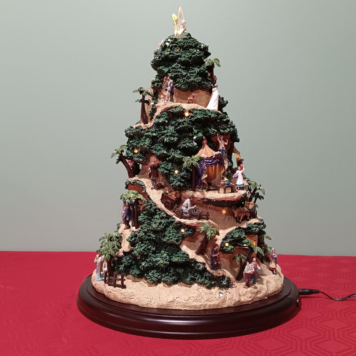 LOT 119: Thomas Kinkade Mistletoe Mountain Collection and Nativity Tree w/ Avon Christmas Memories Figurine