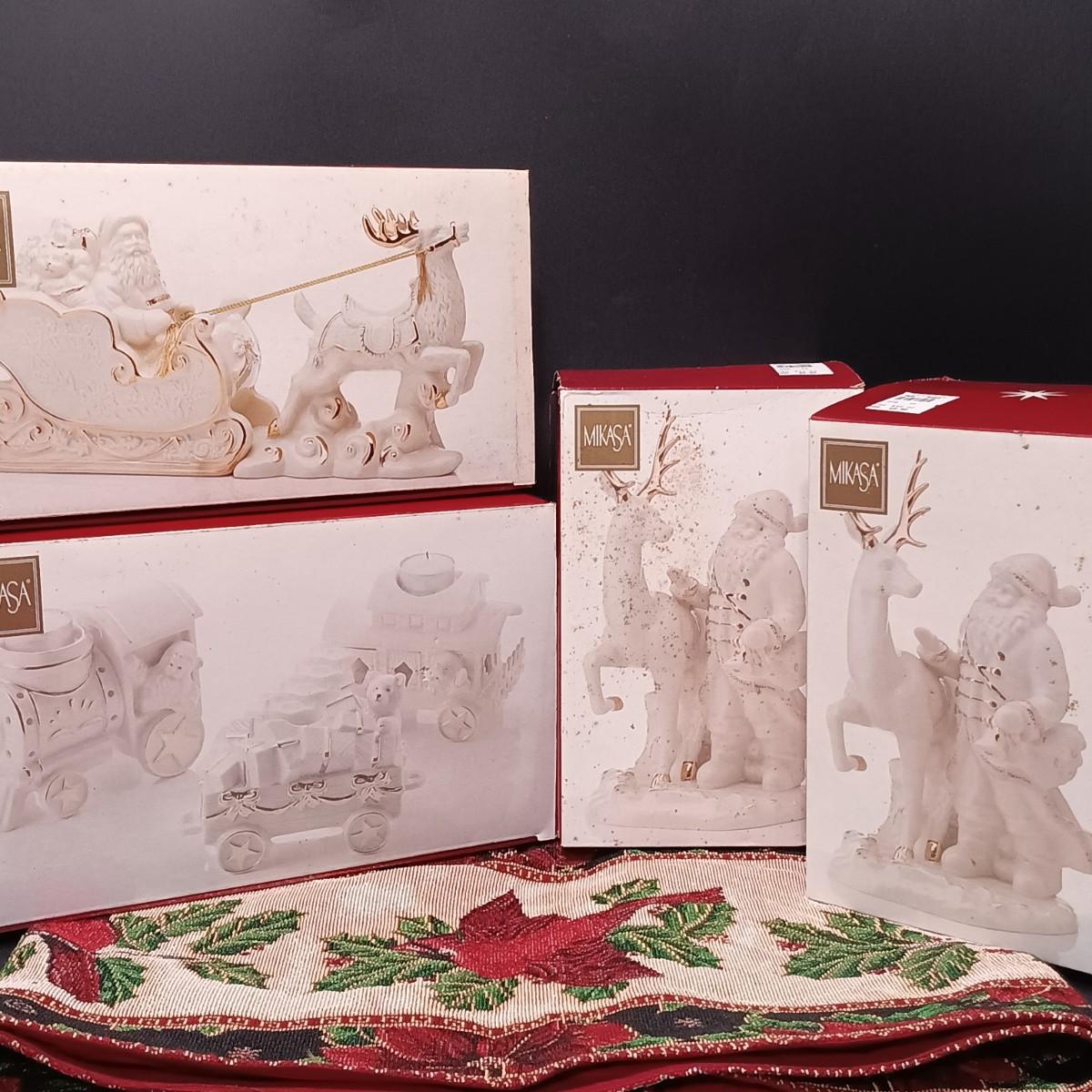 LOT 123: Vintage Mikasa Christmas Figurines and Table Runner