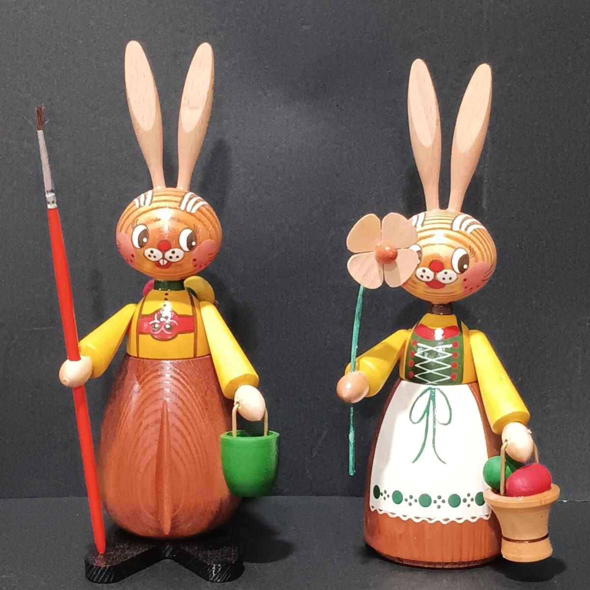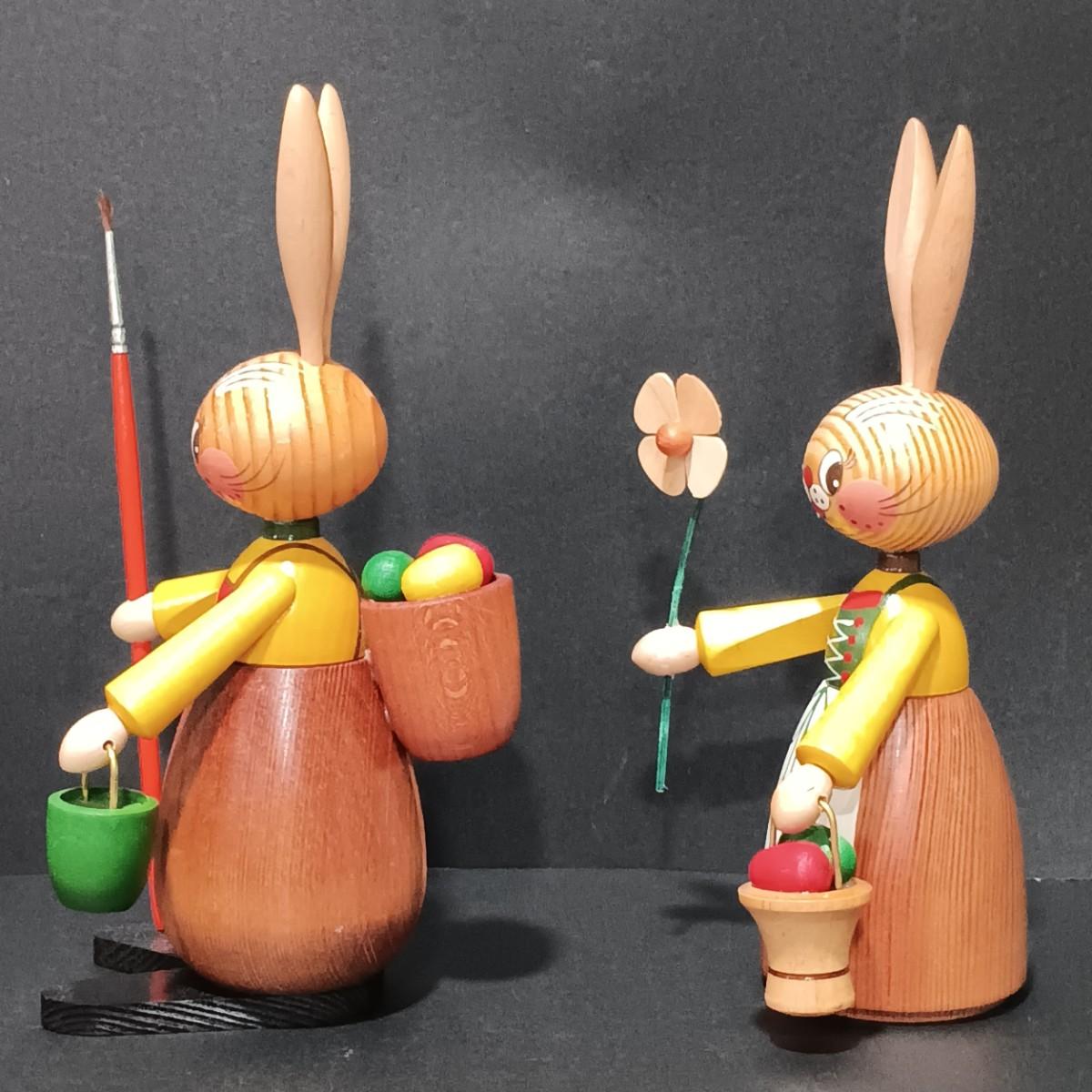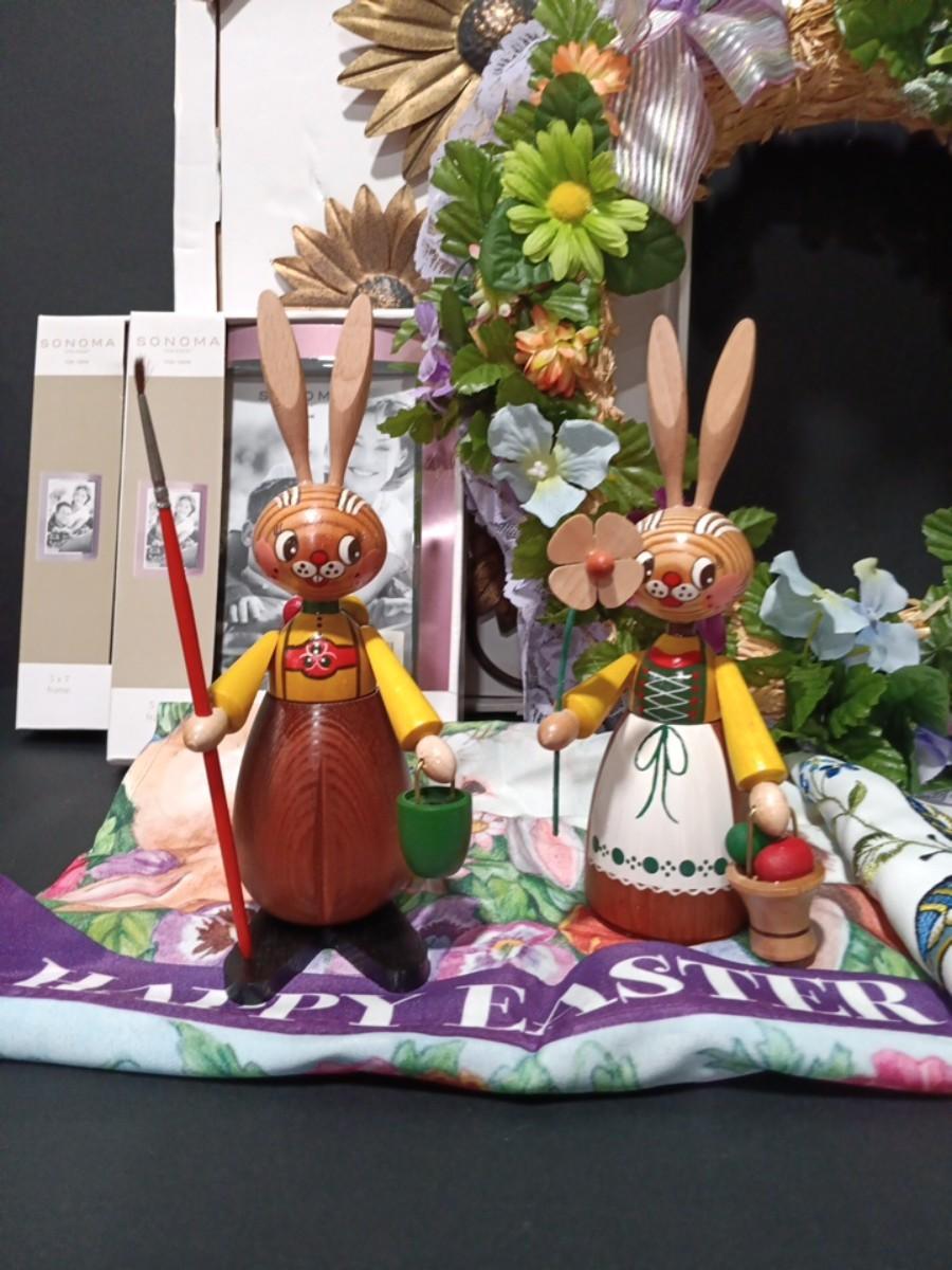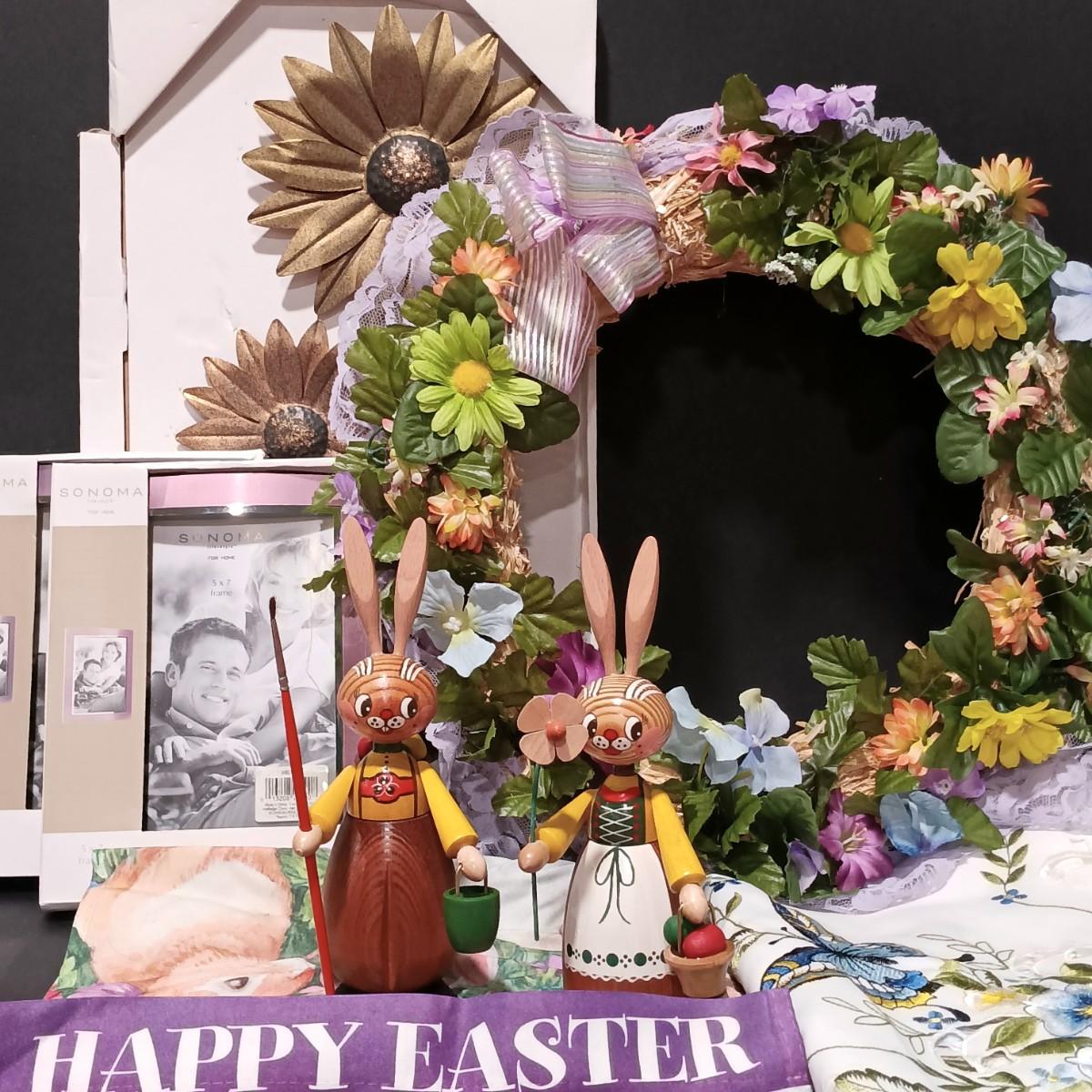 LOT 125: Easter Collection- Erzgebirge Wooden Easter Rabbits w/ Picture Frames, Wreath, Daisy Wall Art & More