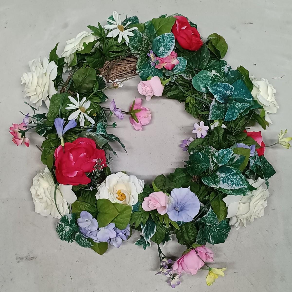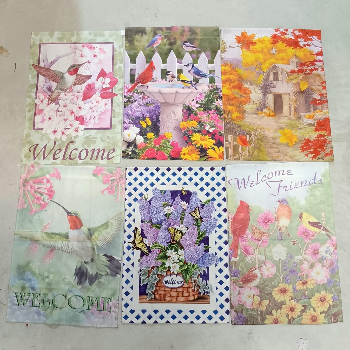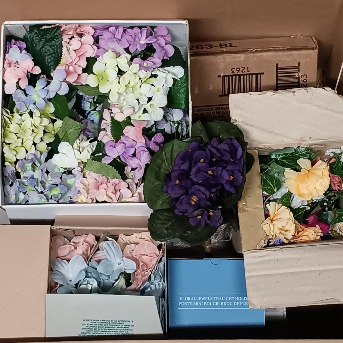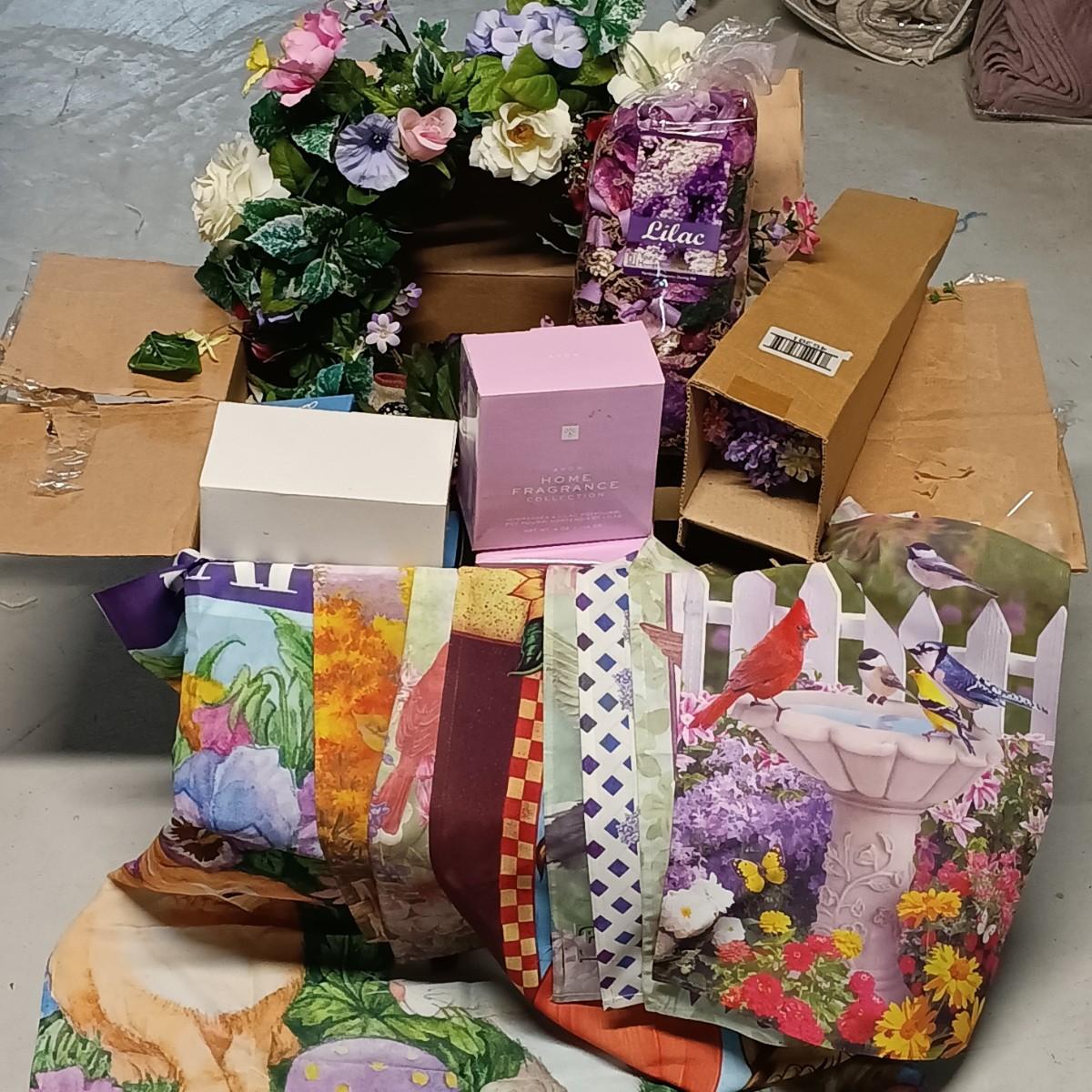 LOT 126: Spring Collection- Small Faux Floral Sets, Mixed Lot of Holiday Banners, Spring Wreath & More