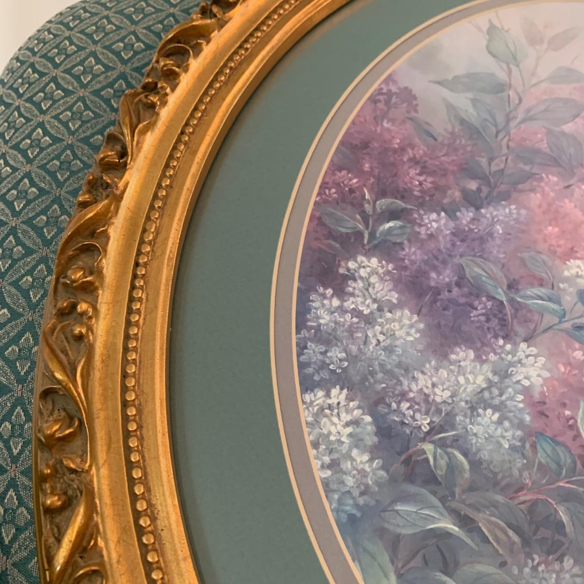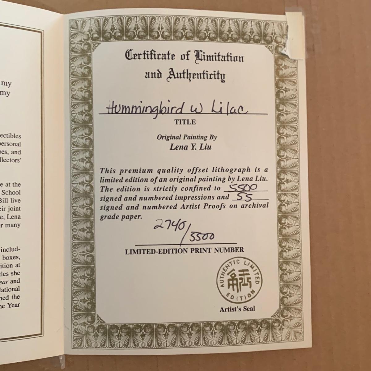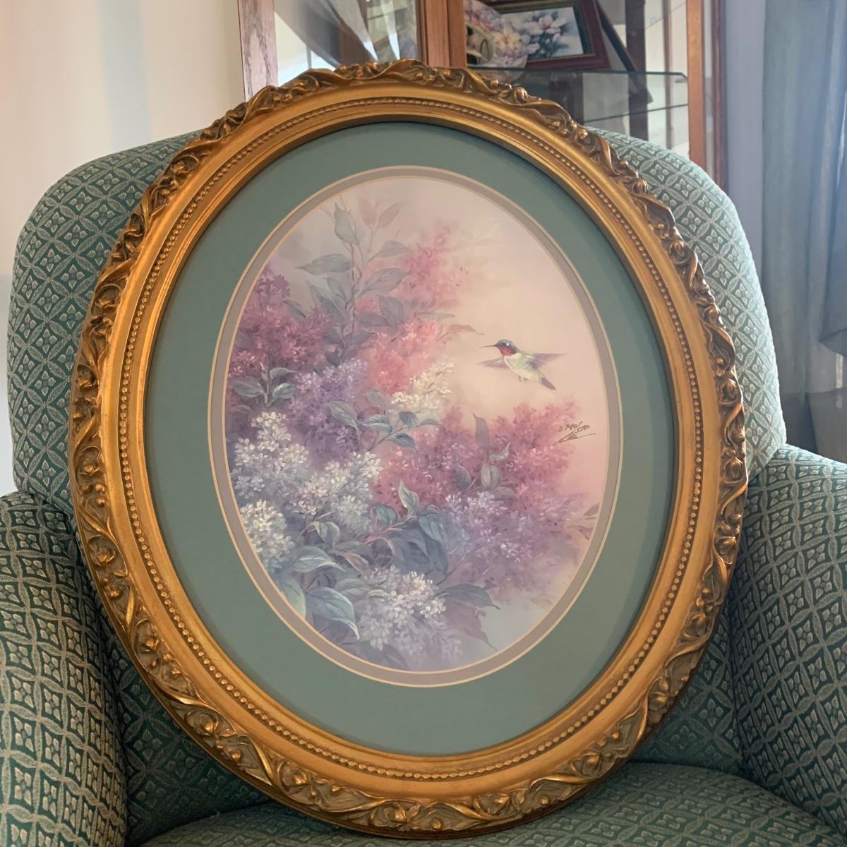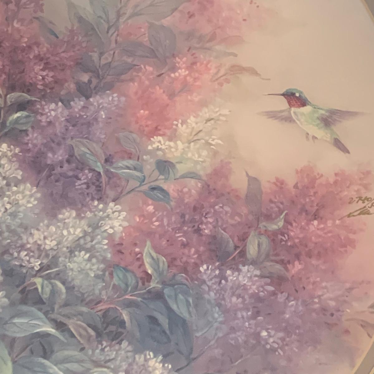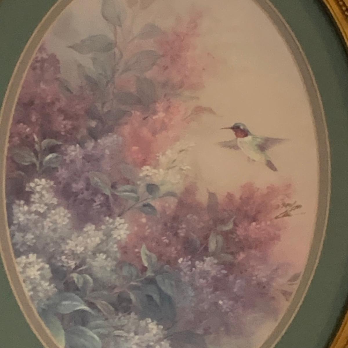 LOT 140: Imperial Graphics Framed and Matted Oval Shaped Lithograph - "Humming Bird with Lilac" by Lena Liu, Numbered with COA