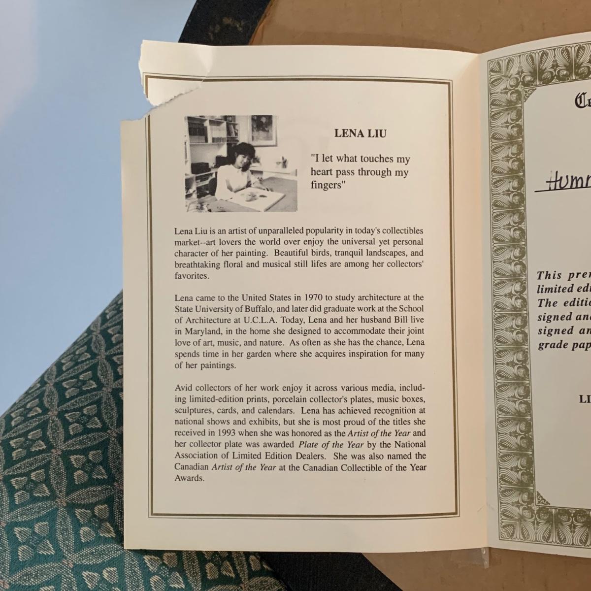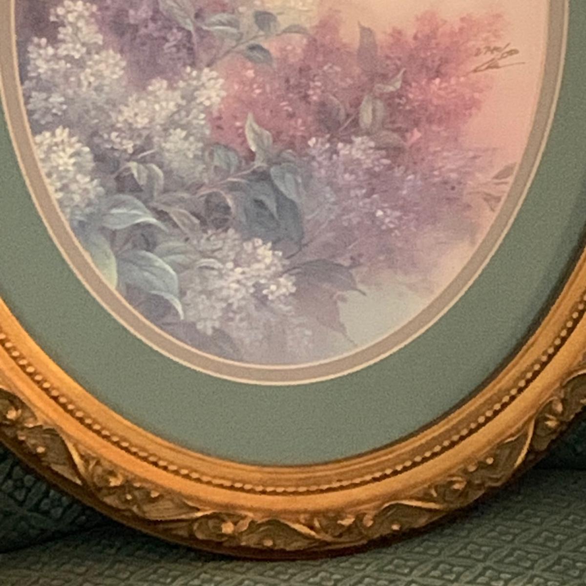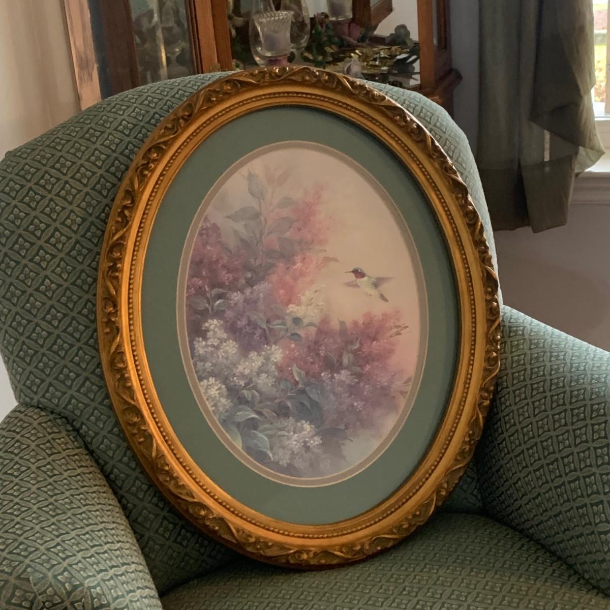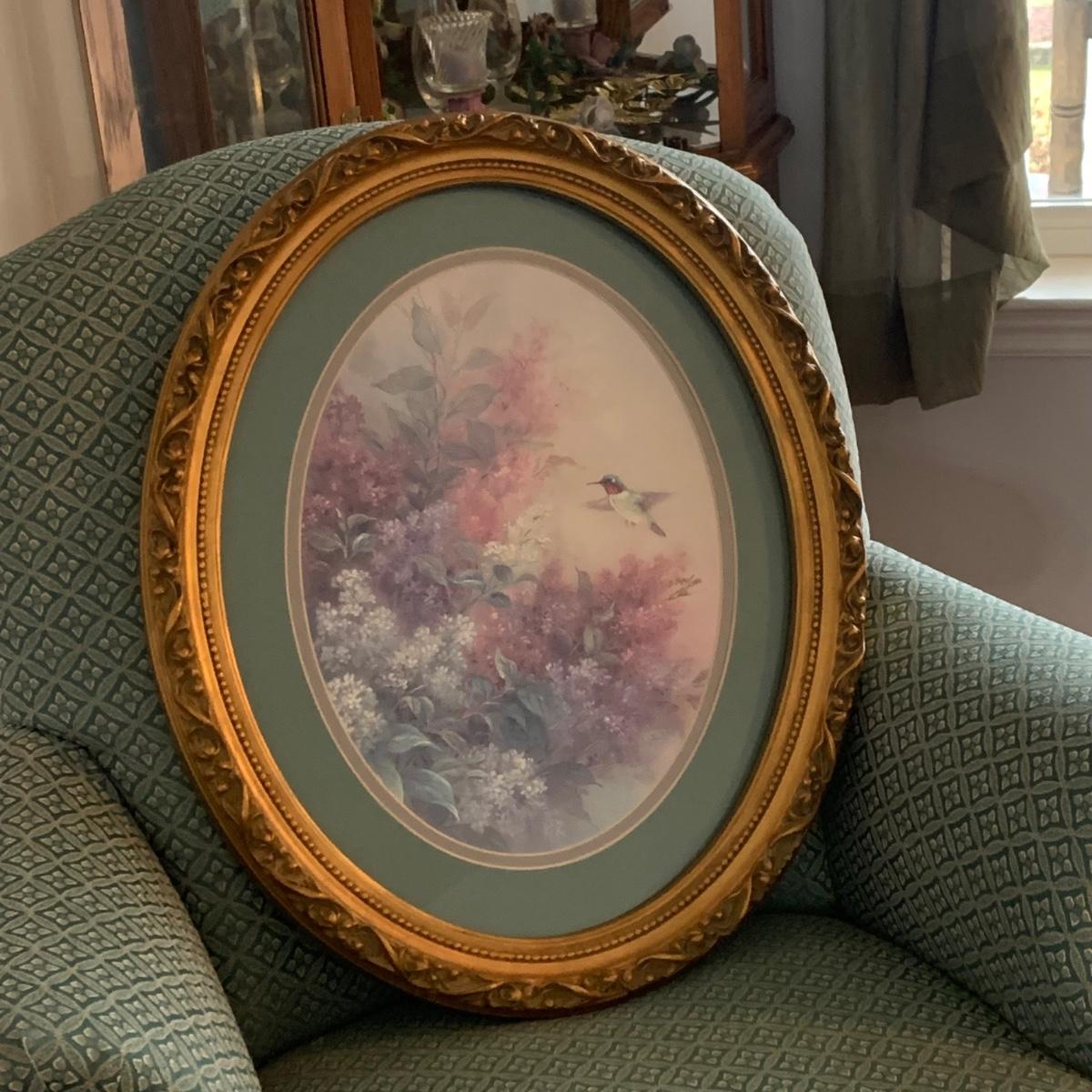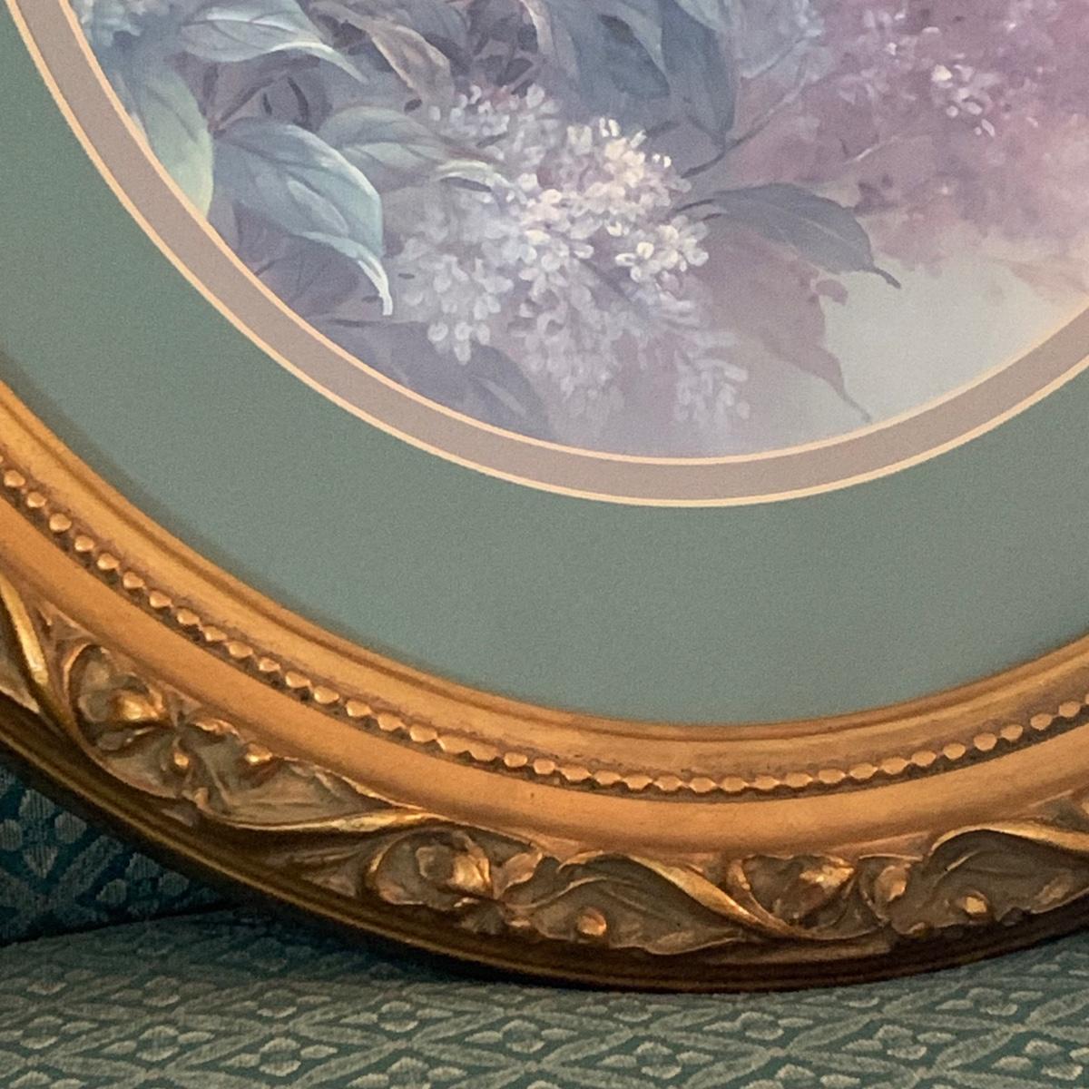 LOT 140: Imperial Graphics Framed and Matted Oval Shaped Lithograph - "Humming Bird with Lilac" by Lena Liu, Numbered with COA