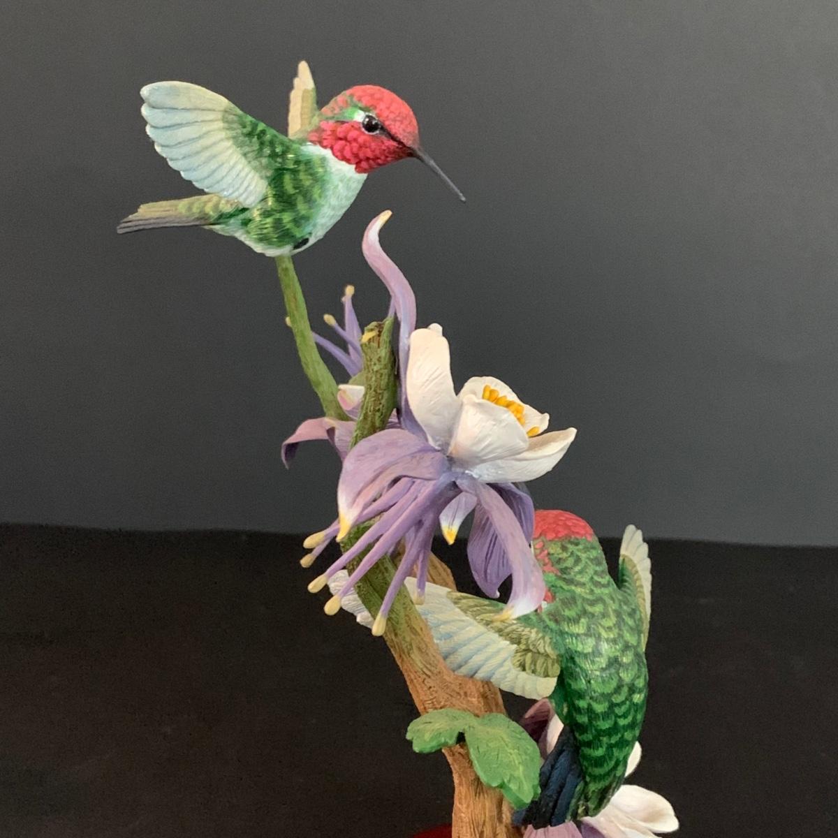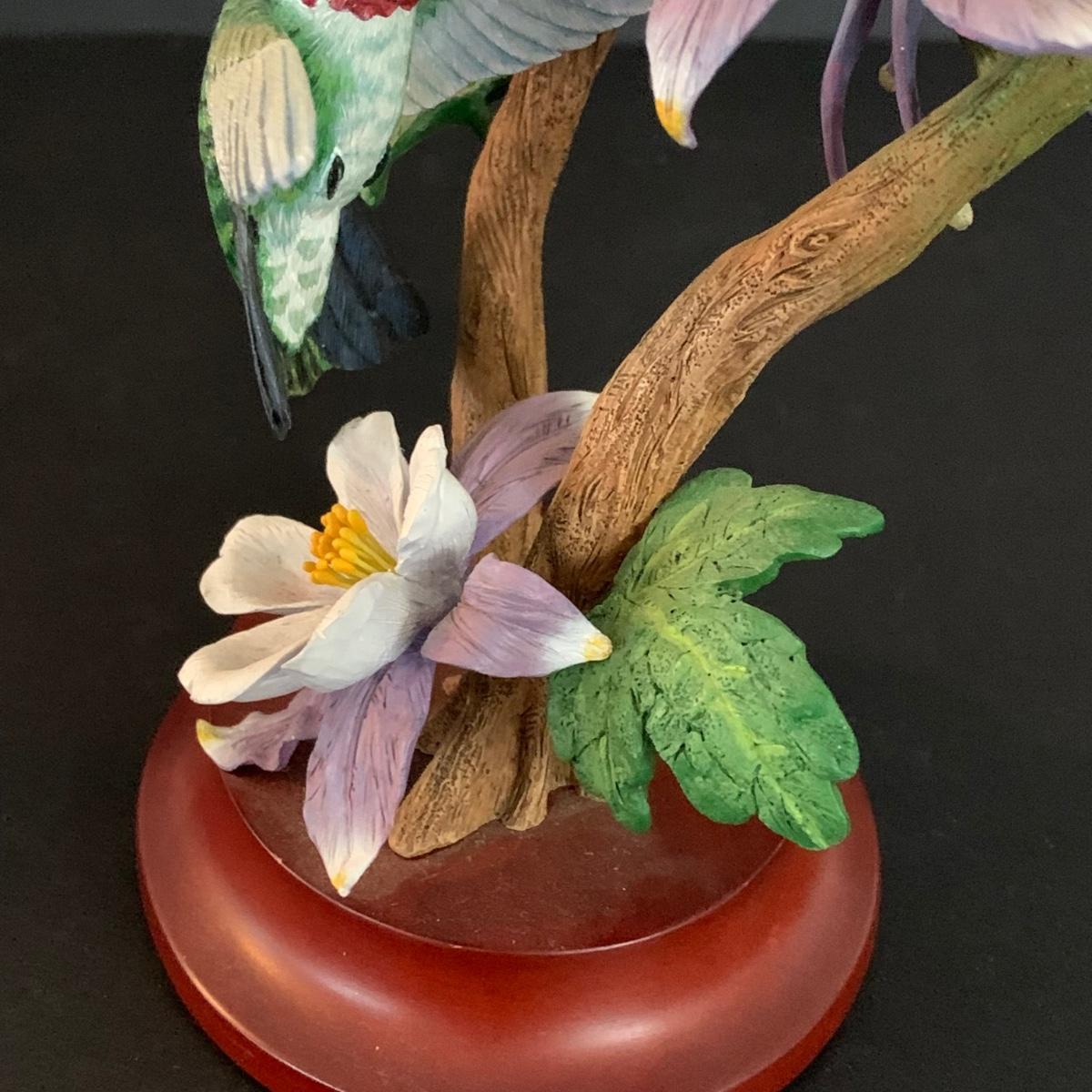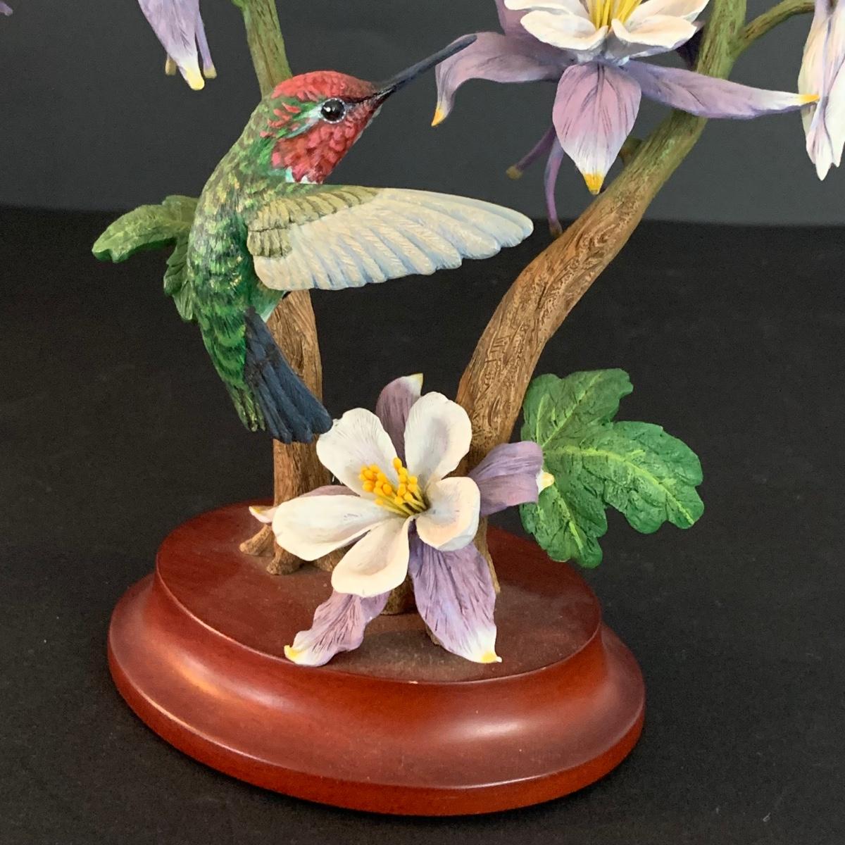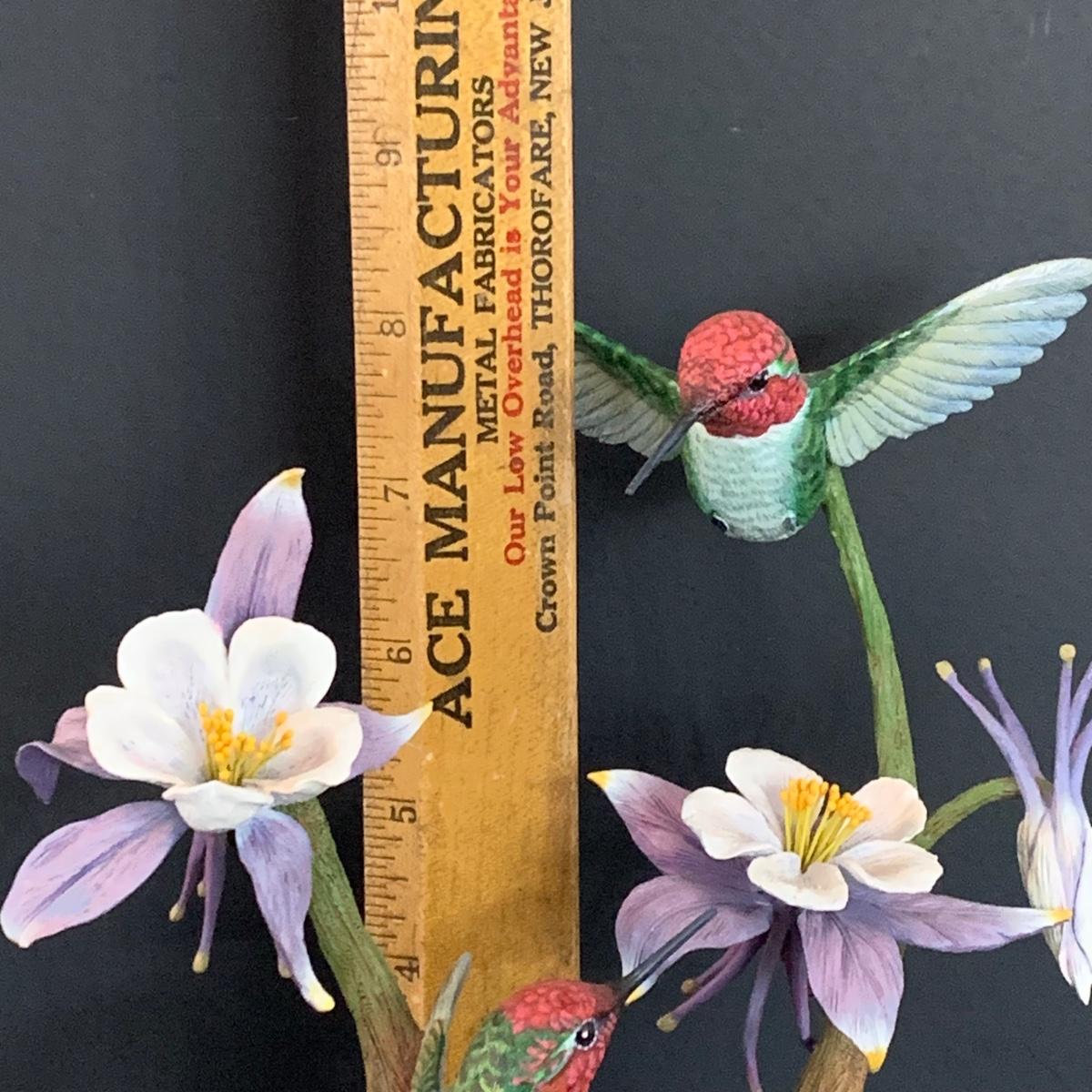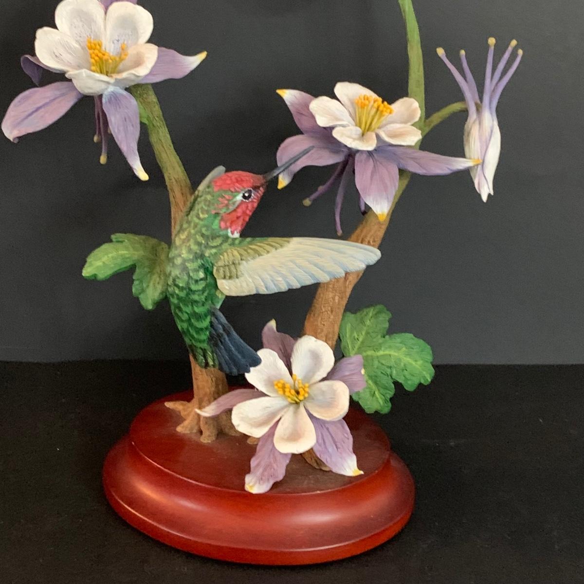 LOT 144: Beautiful Hummingbirds and Columbine Flower Statue and Danbury Mint Hummingbird Ornaments