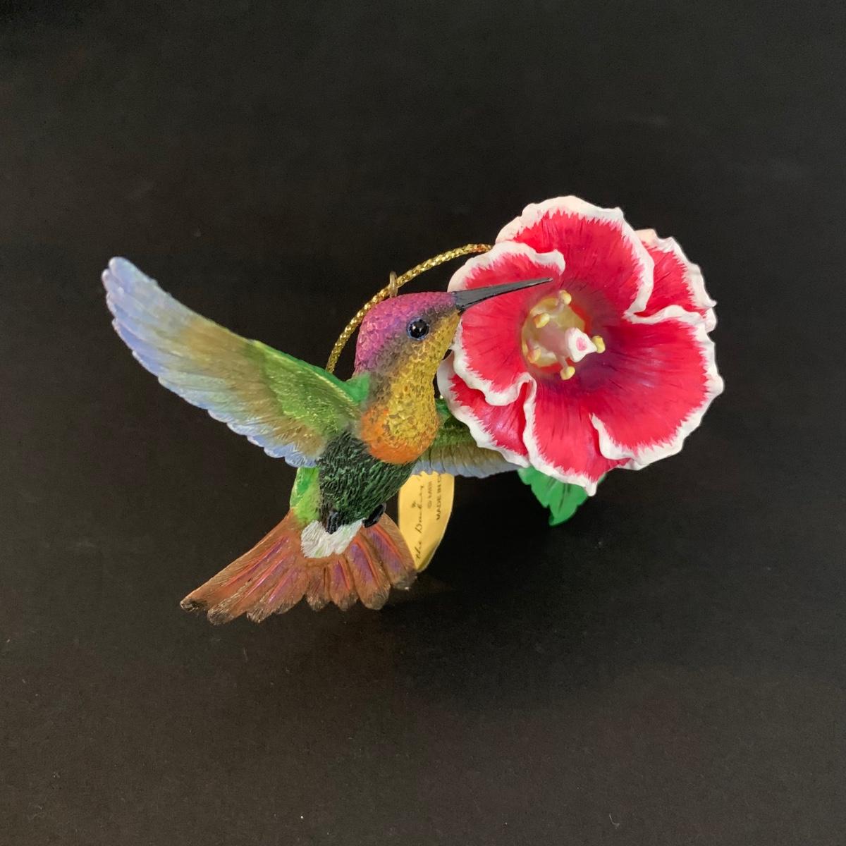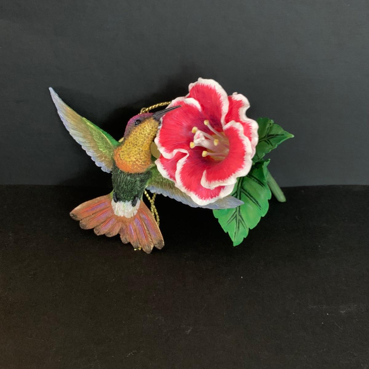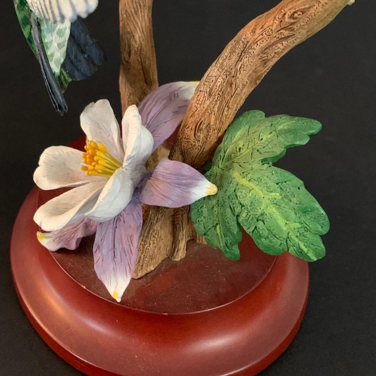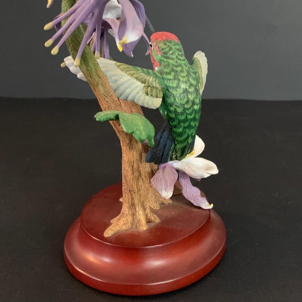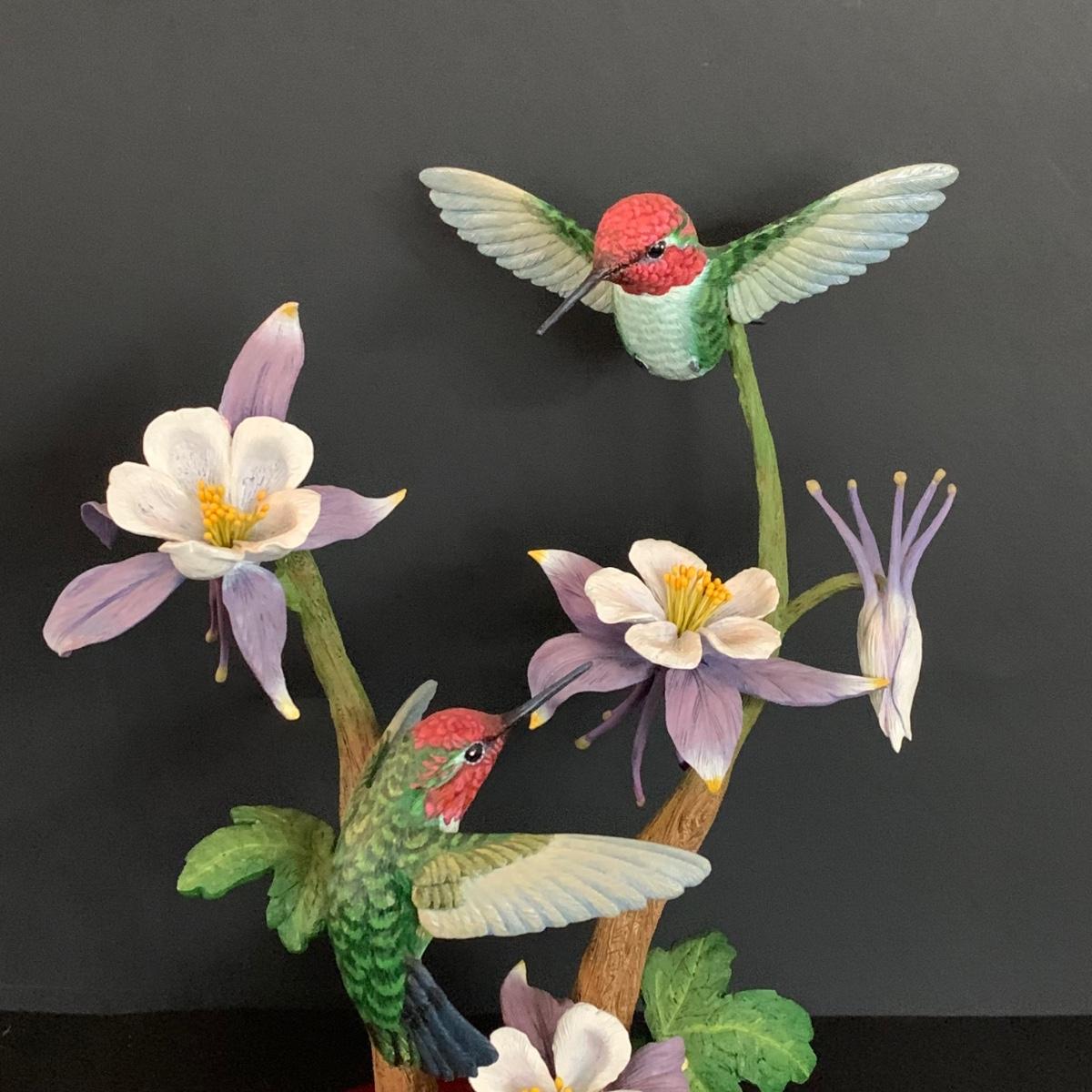 LOT 144: Beautiful Hummingbirds and Columbine Flower Statue and Danbury Mint Hummingbird Ornaments
