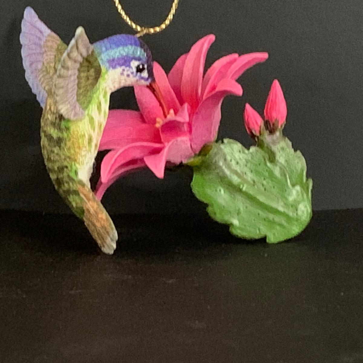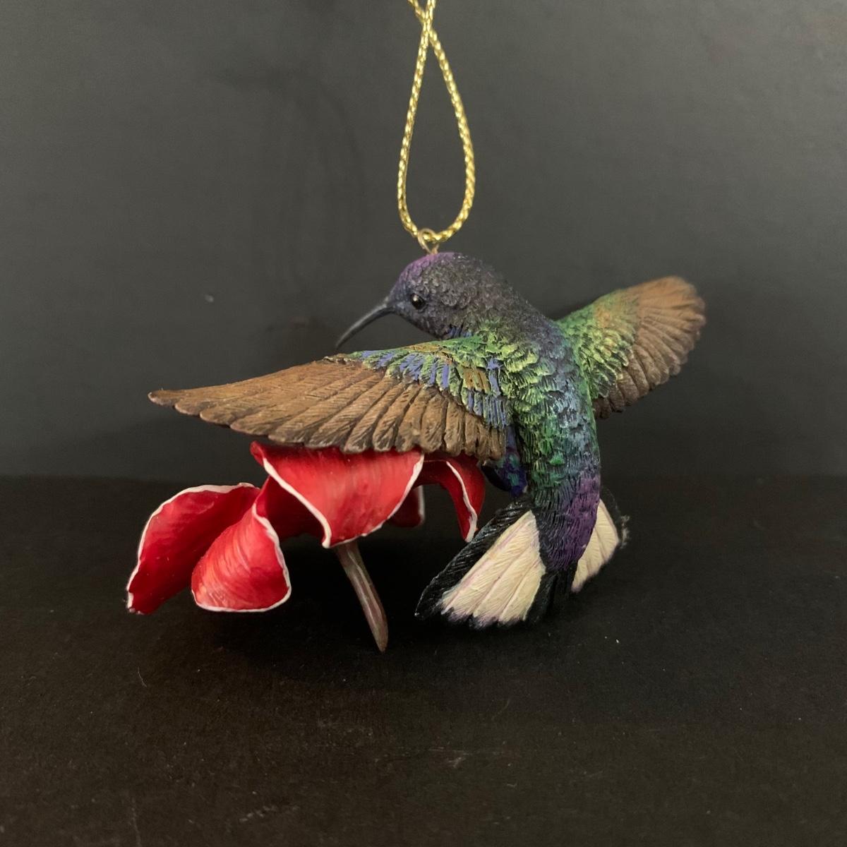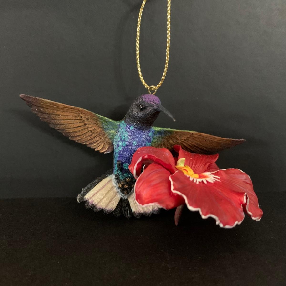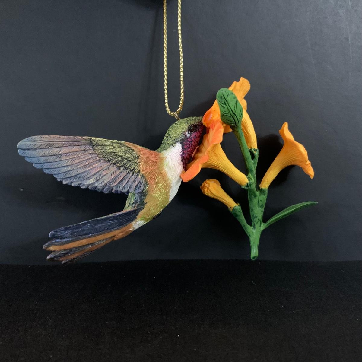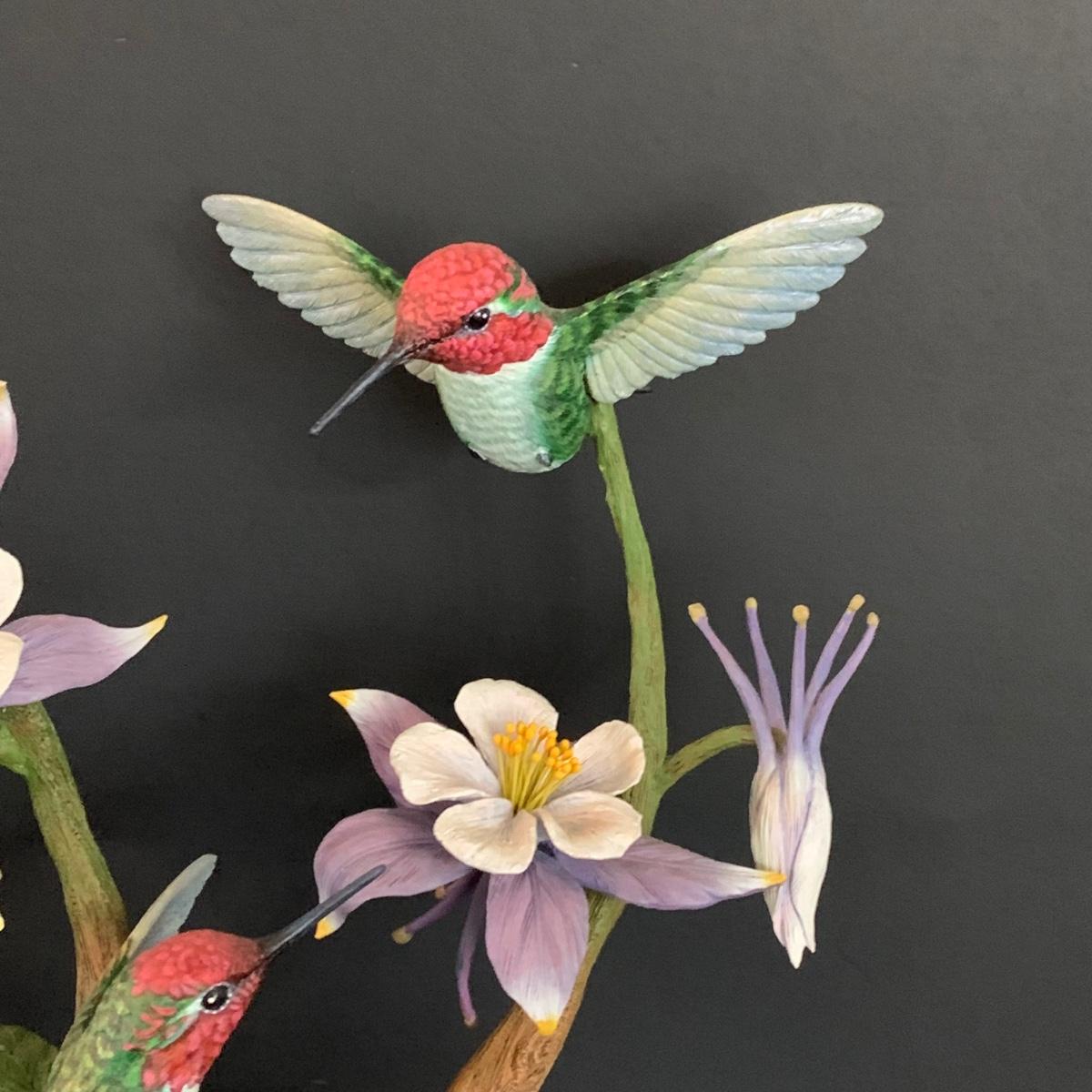 LOT 144: Beautiful Hummingbirds and Columbine Flower Statue and Danbury Mint Hummingbird Ornaments