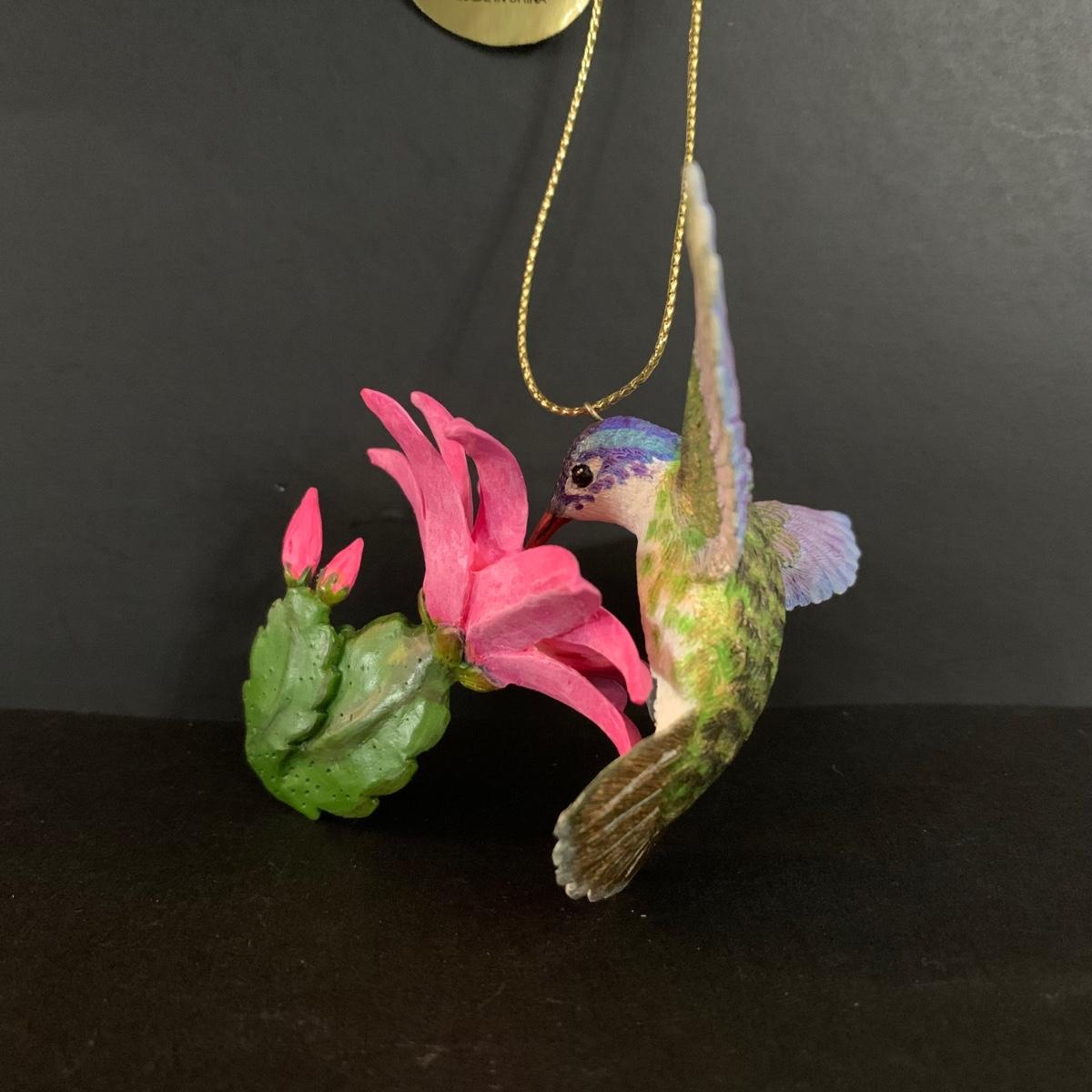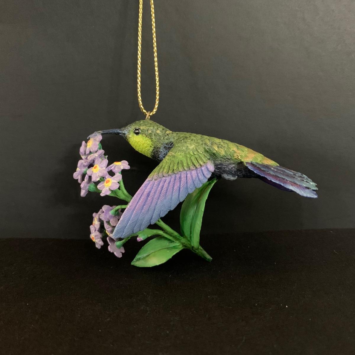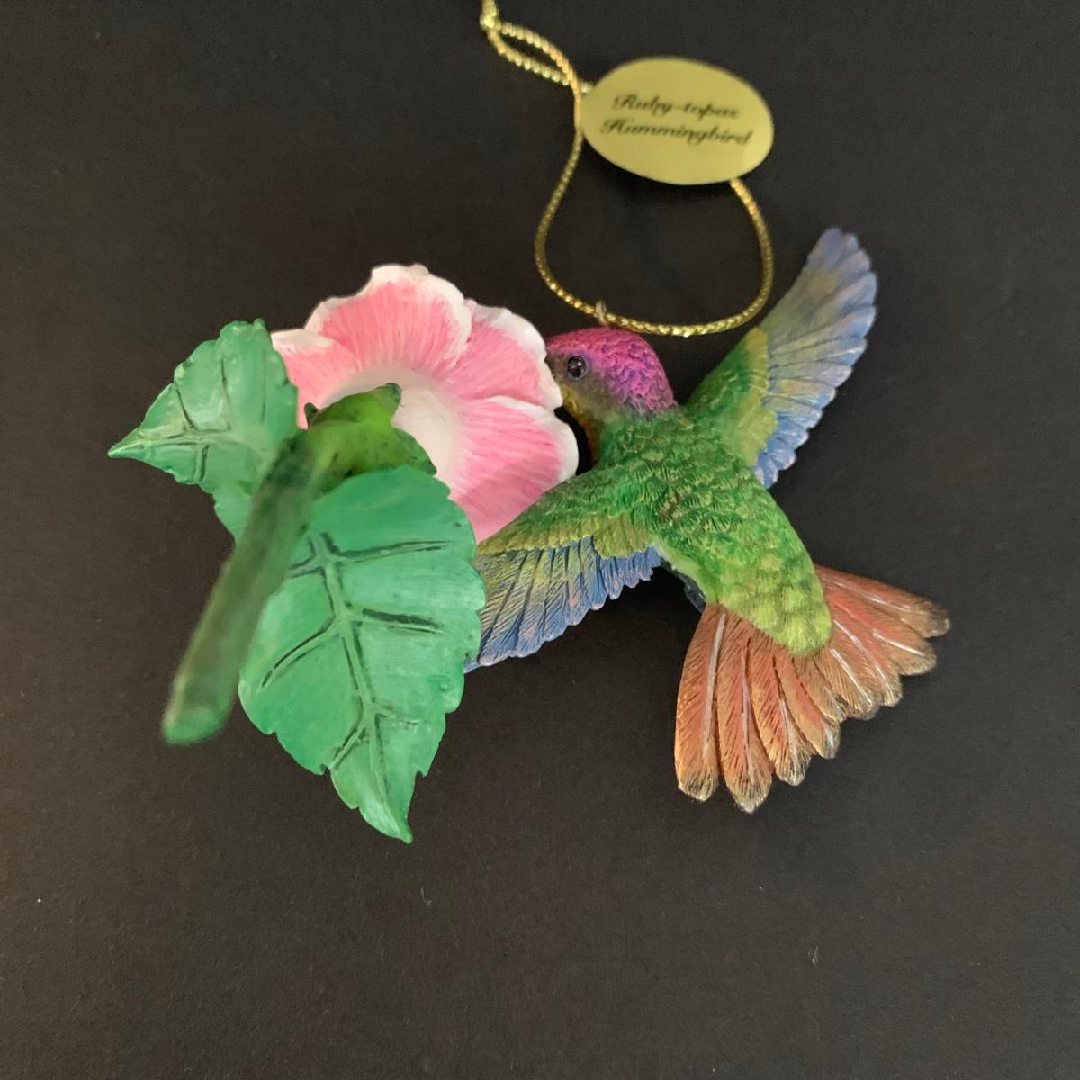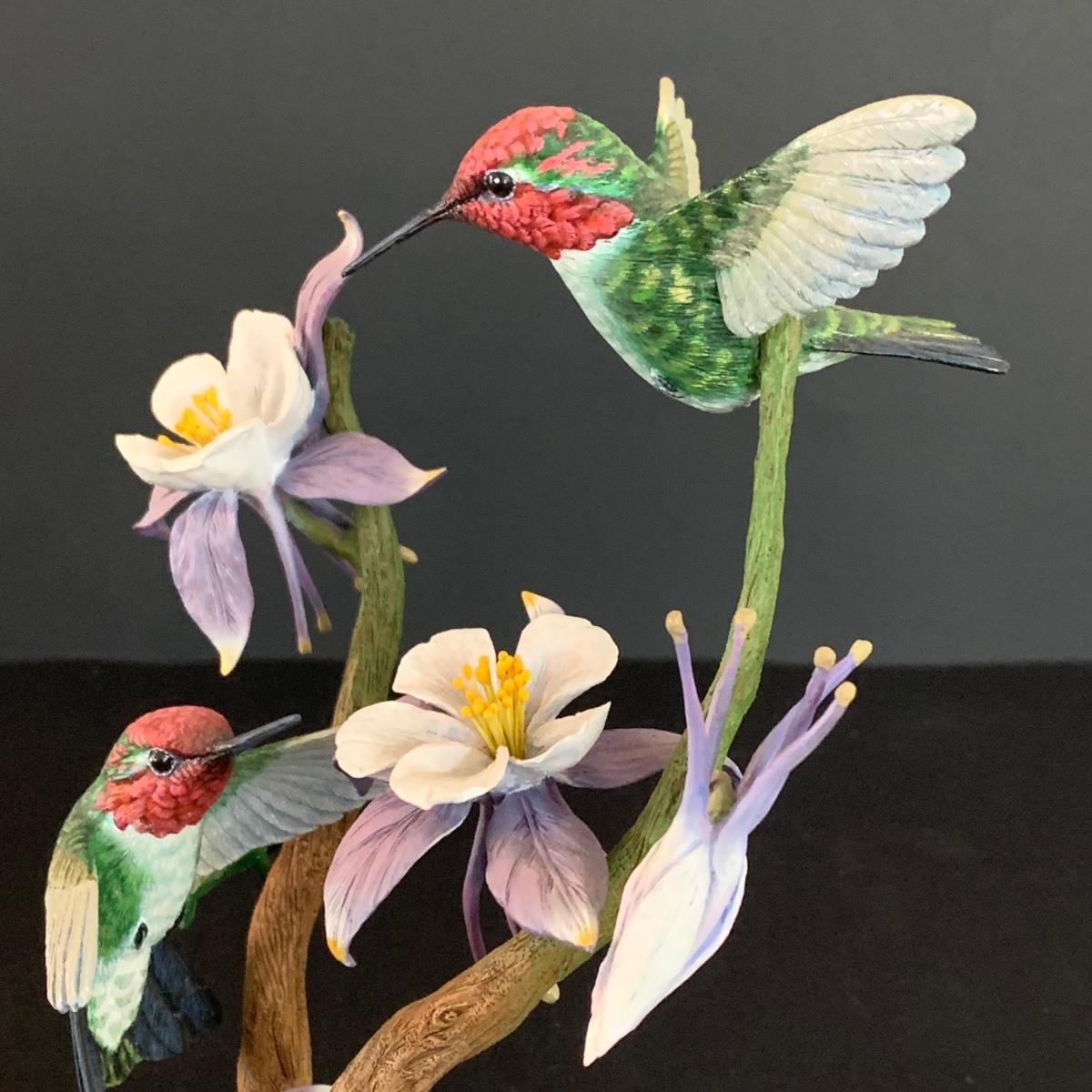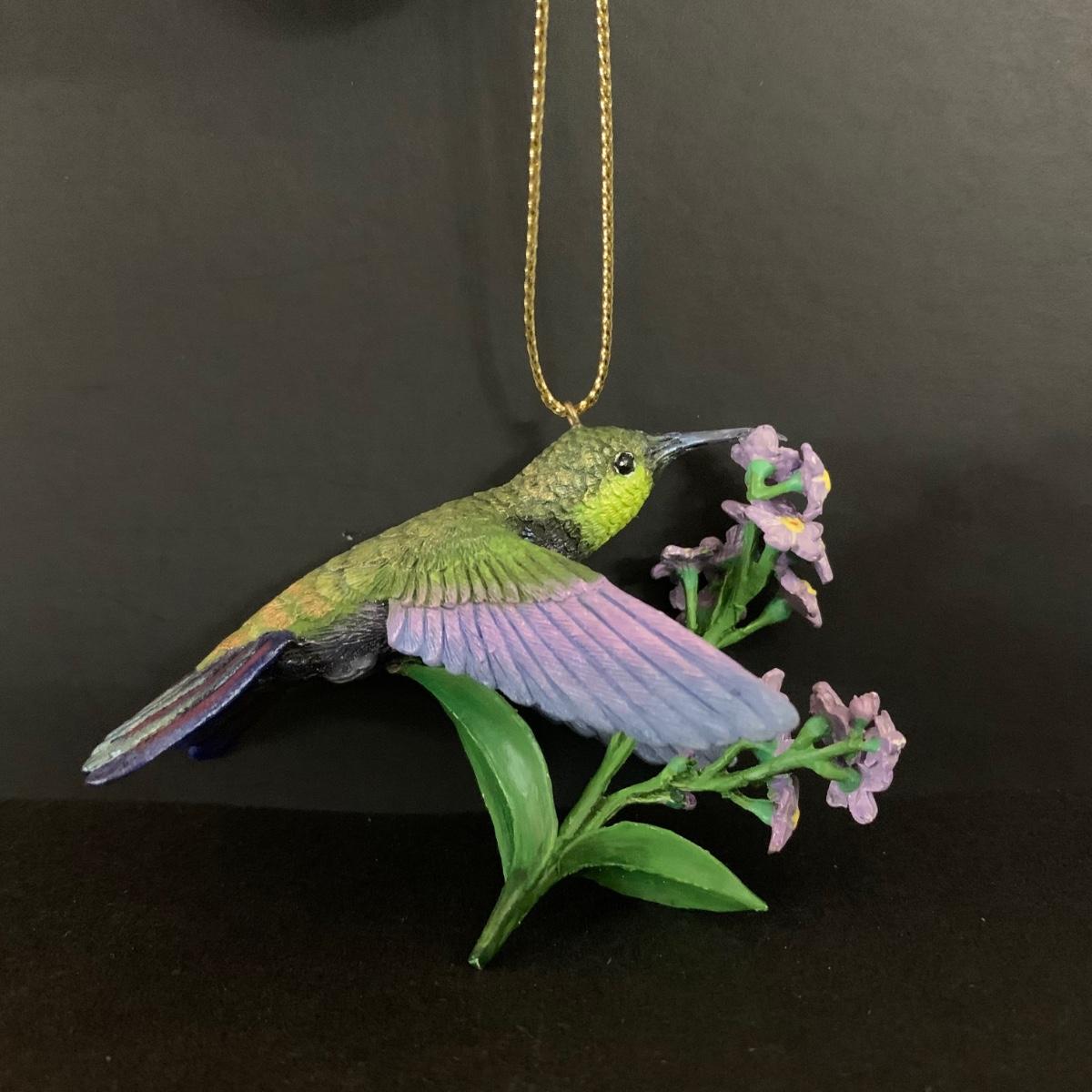 LOT 144: Beautiful Hummingbirds and Columbine Flower Statue and Danbury Mint Hummingbird Ornaments