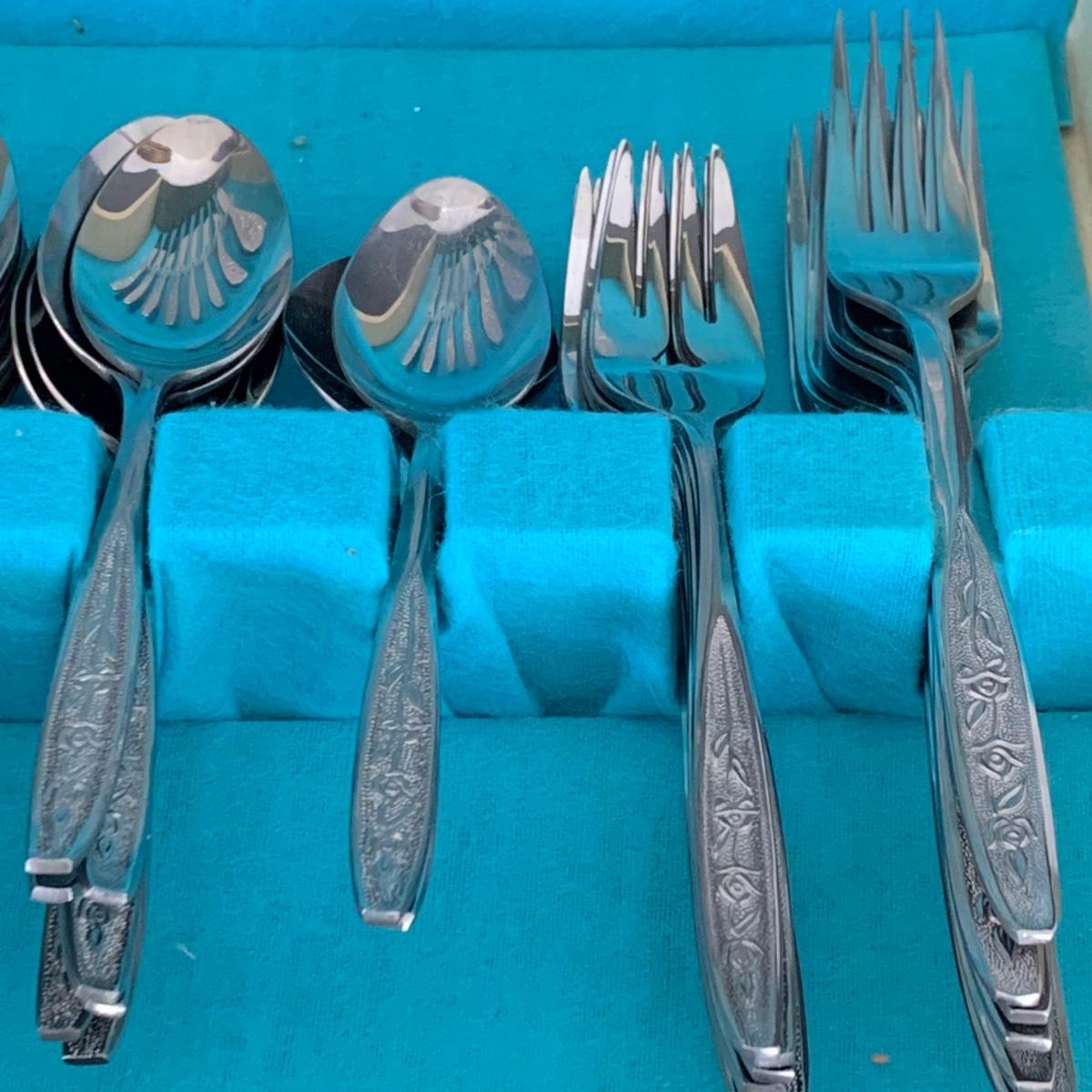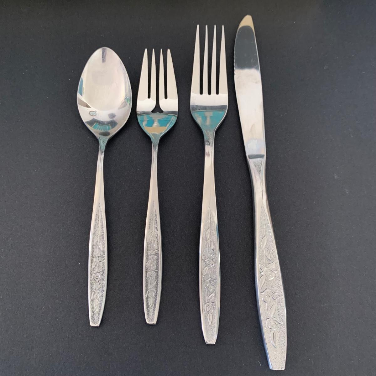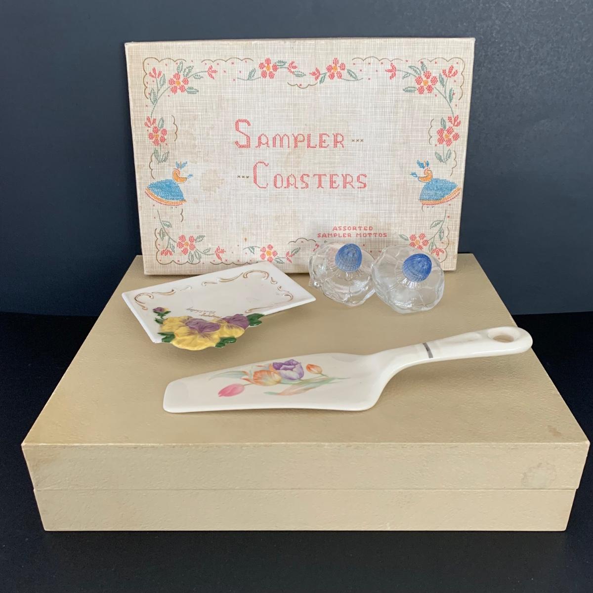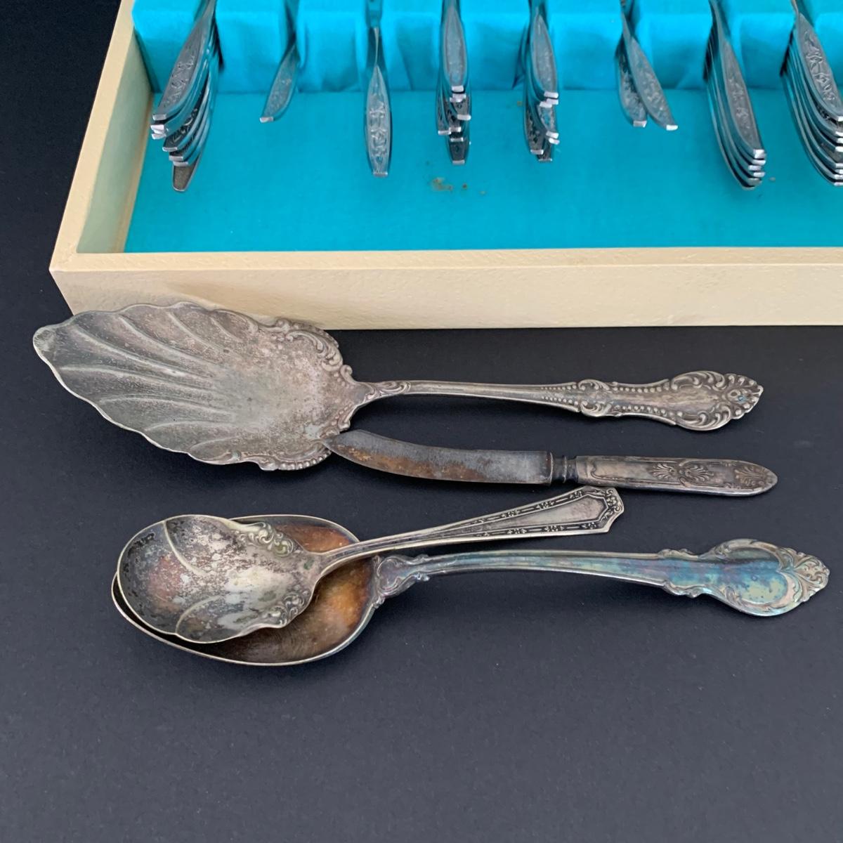 LOT 159: Regent Sheffield 17pc Cutlery Set w/24k Gold Plated Trim, Boxed Flatware Set, Floral Salt/Pepper & More