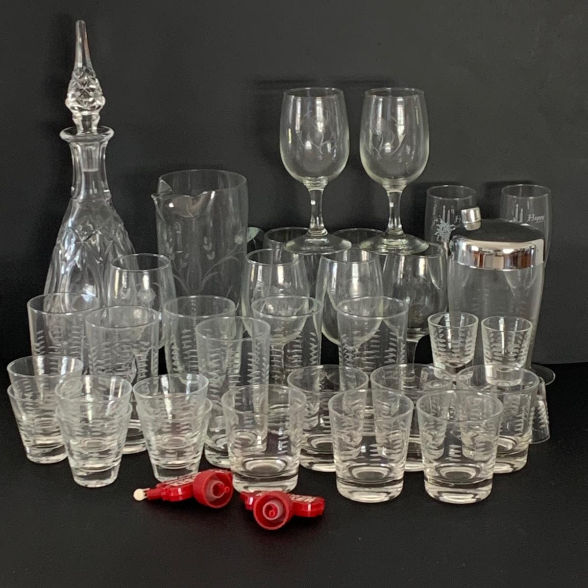 LOT 160: Vintage Etched MCM Barware Collection & More