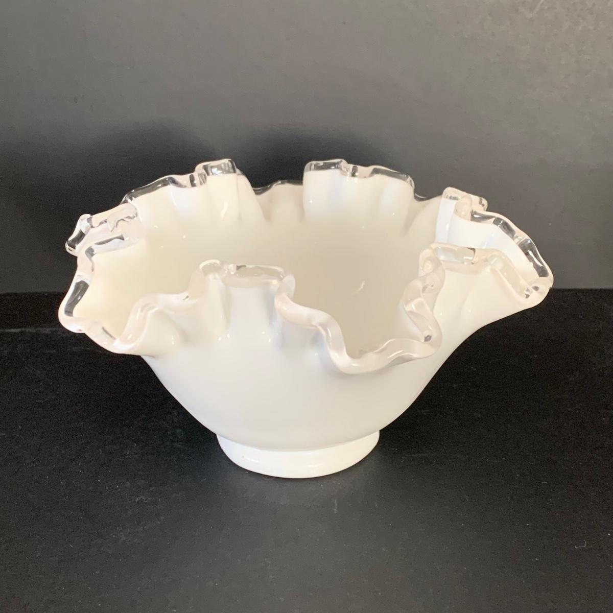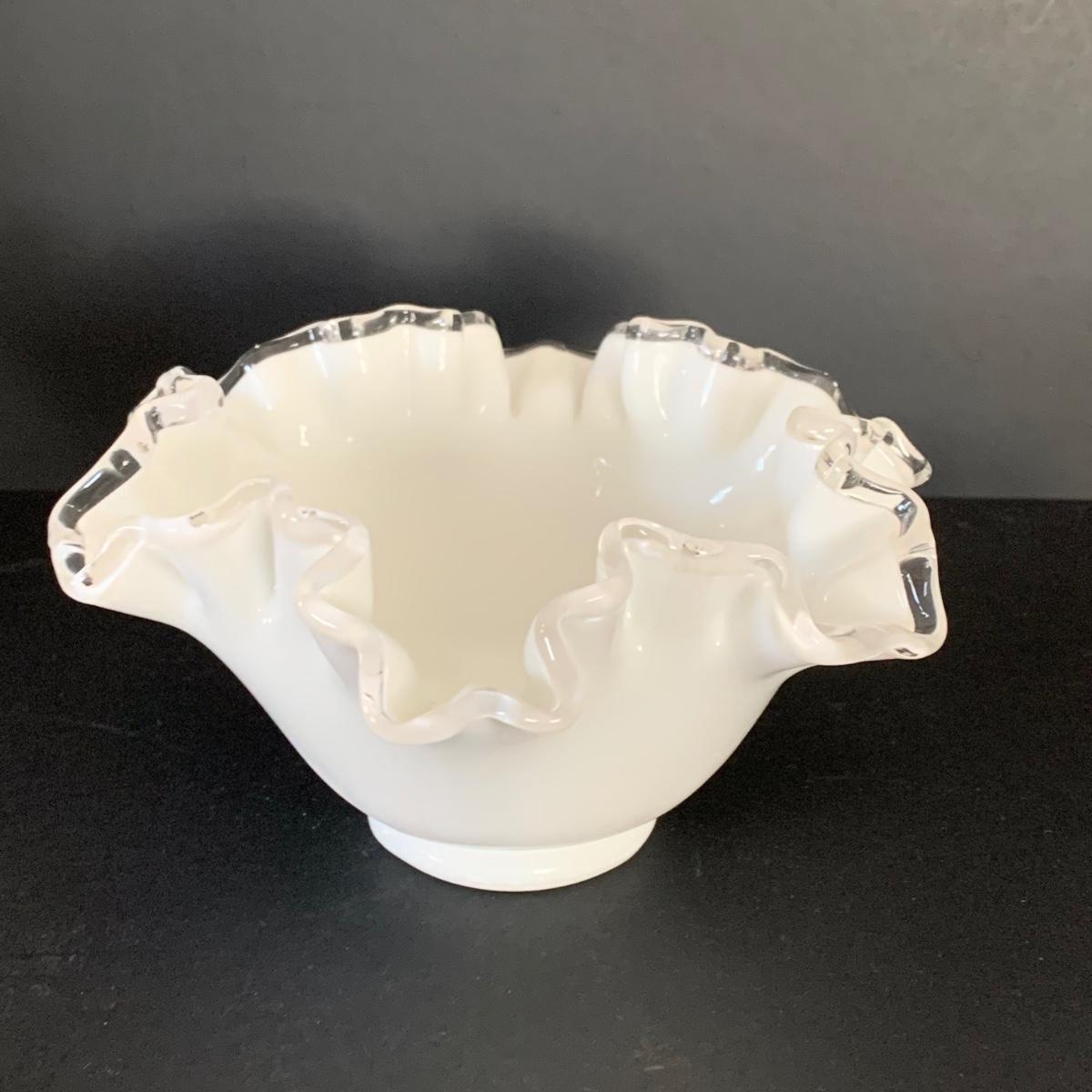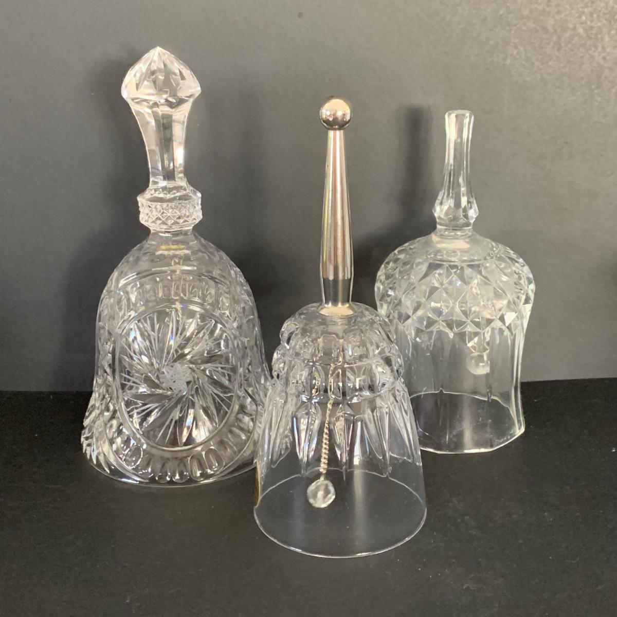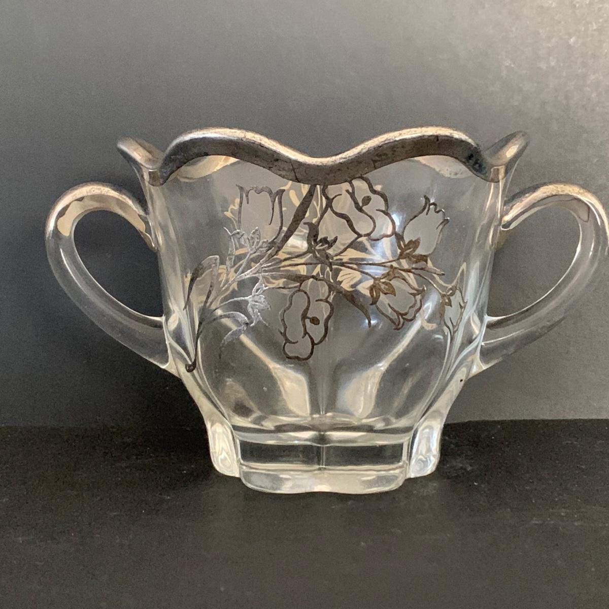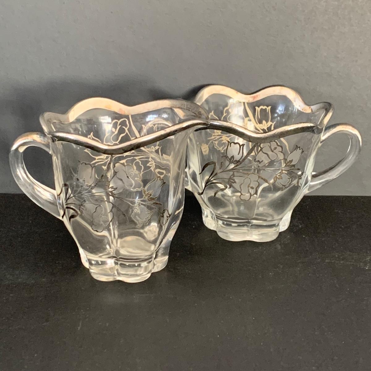 LOT 168: Vintage Milk Glass, Sugar Bowl & Creamer w/Silver Accents, Crystal Bells & Rabbit