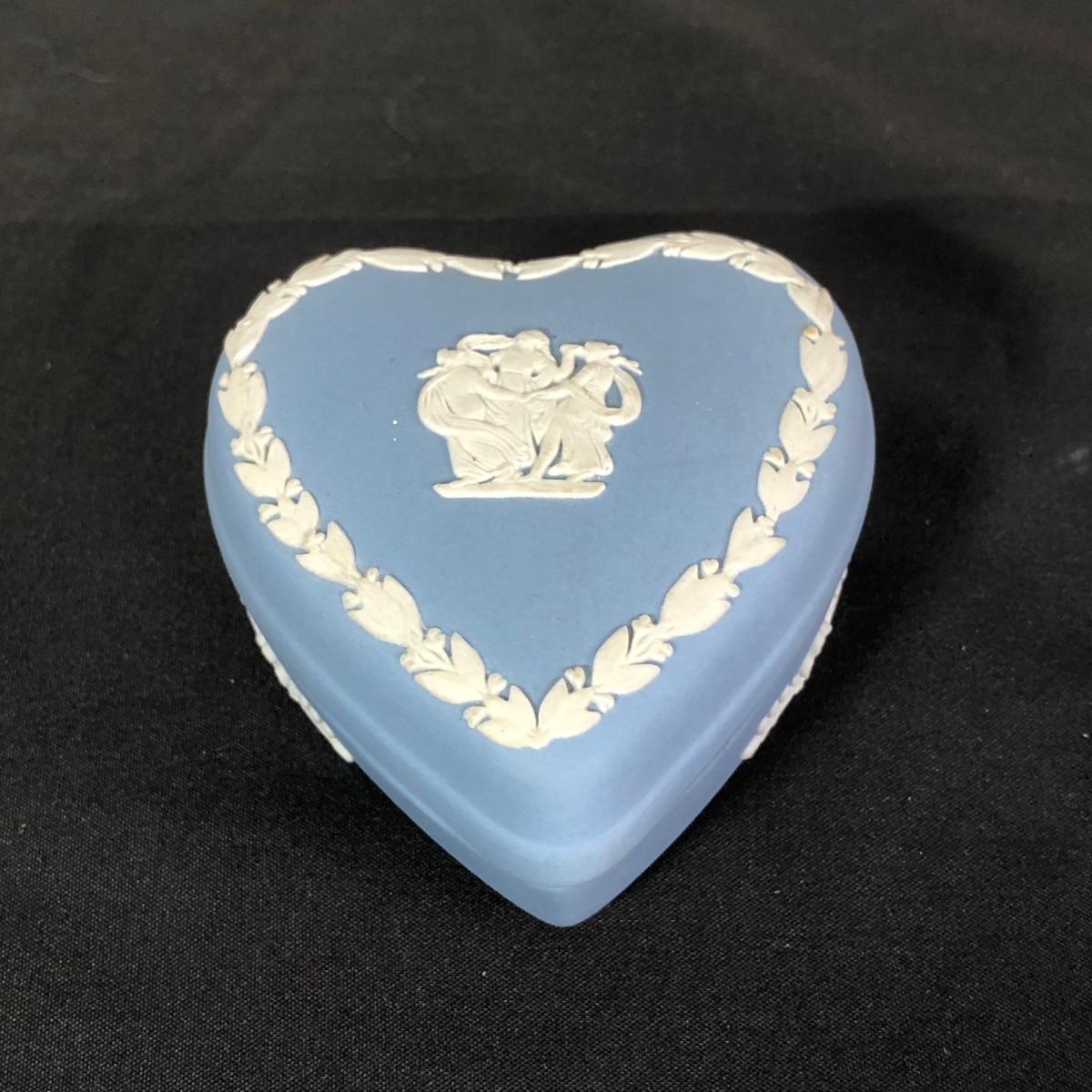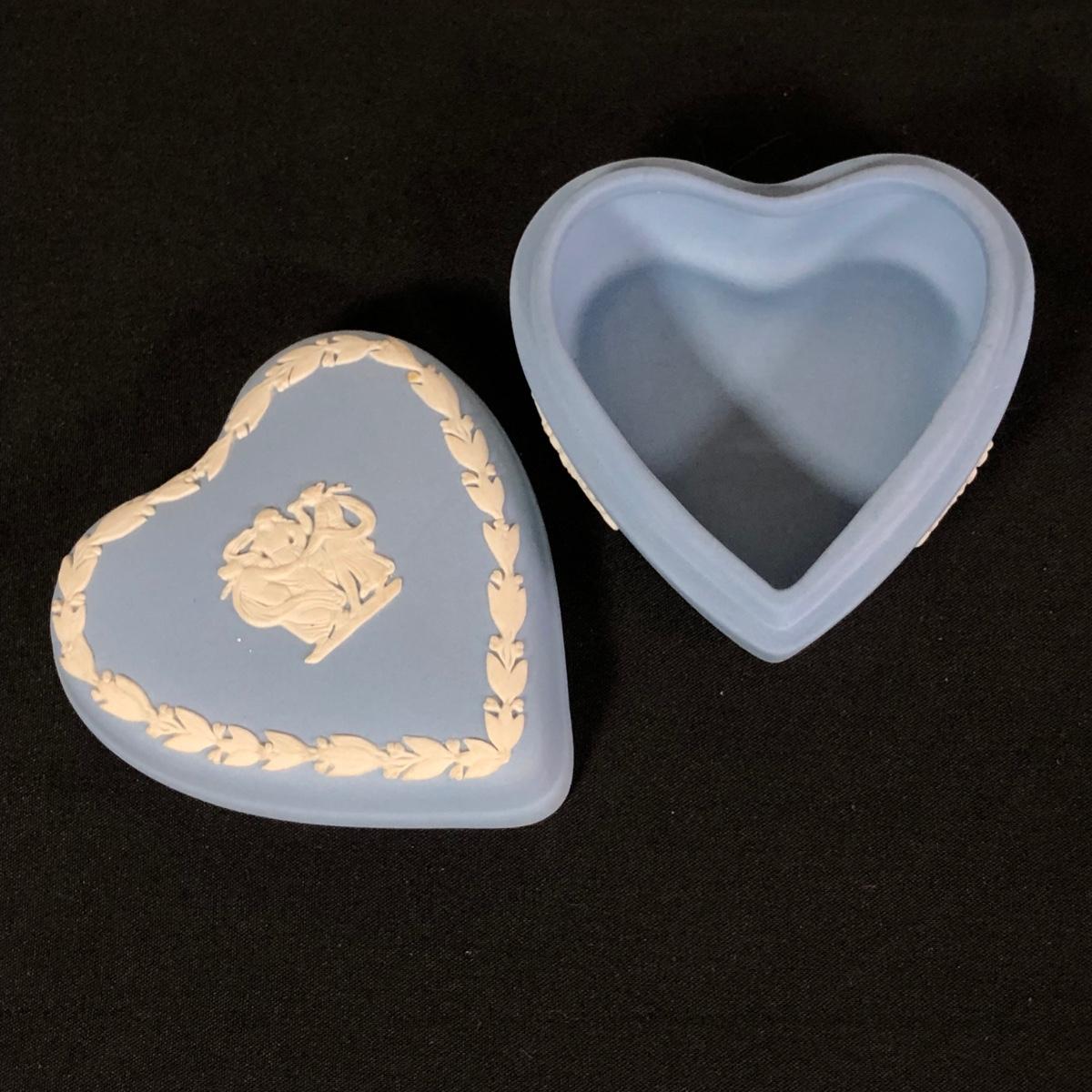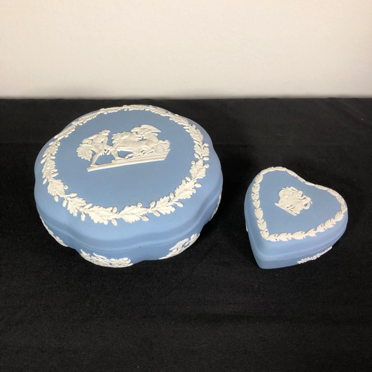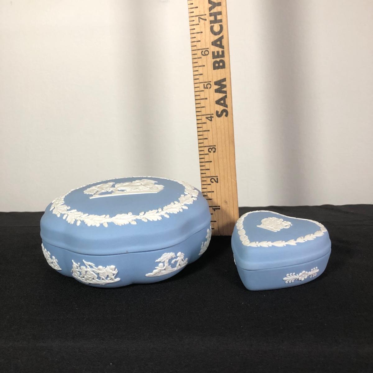 LOT 7M: Vintage Blue Wedgewood England Jasperware - Covered Trinket Box & Heart Shaped Trinket Box