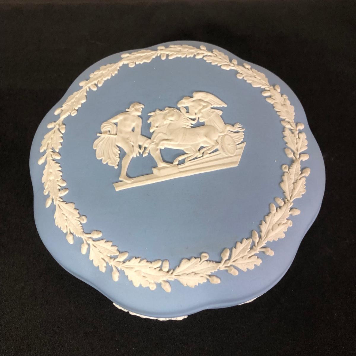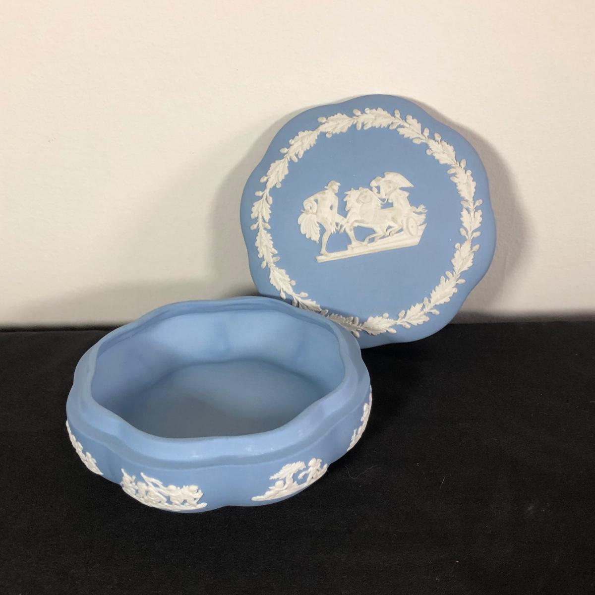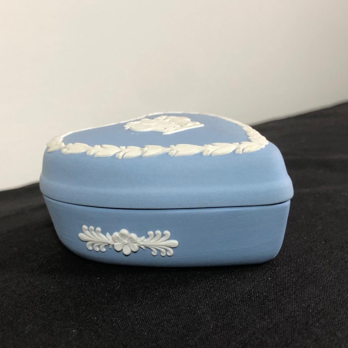 LOT 7M: Vintage Blue Wedgewood England Jasperware - Covered Trinket Box & Heart Shaped Trinket Box