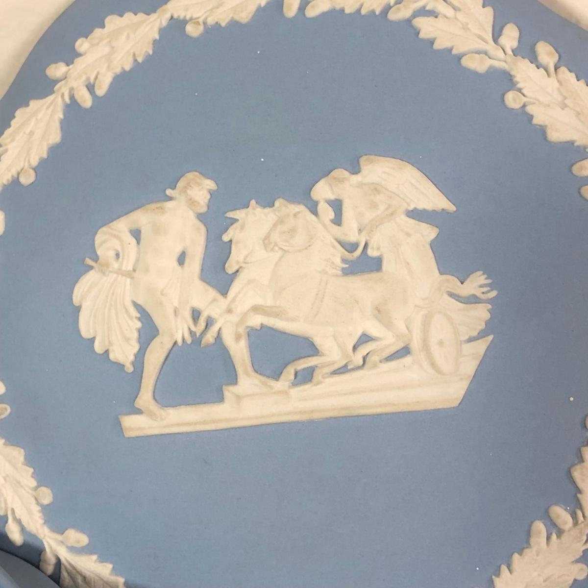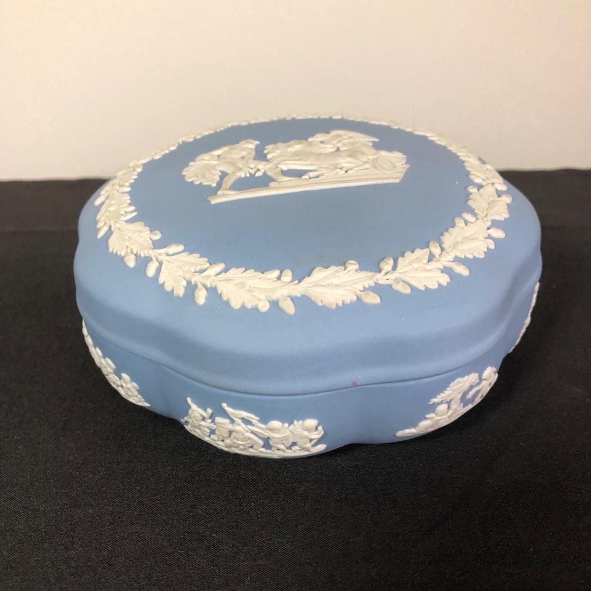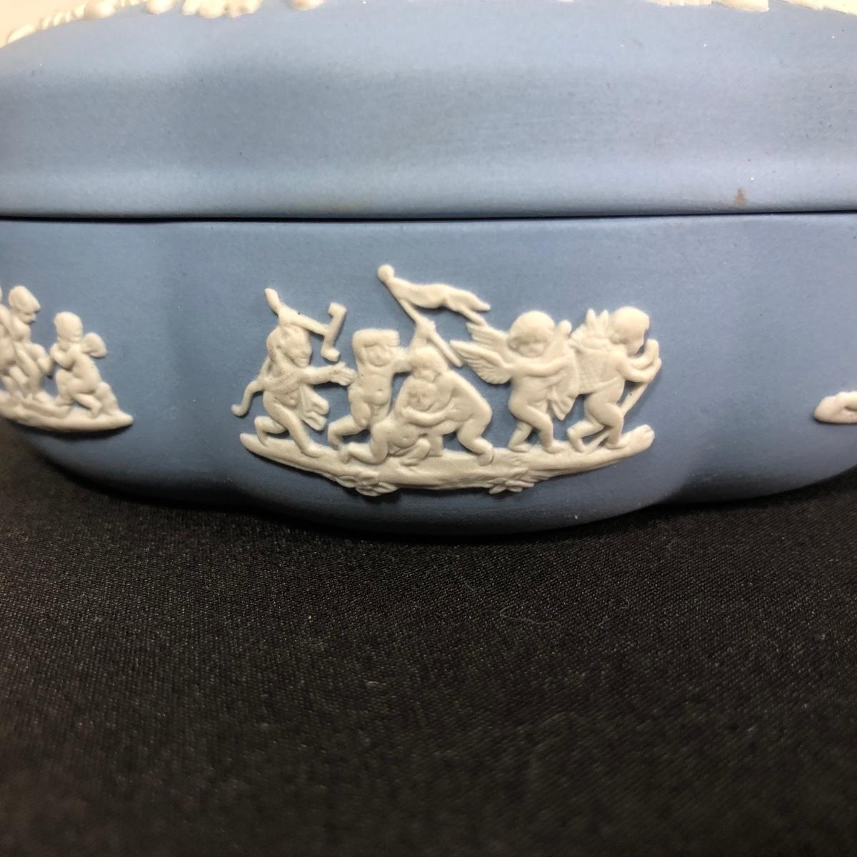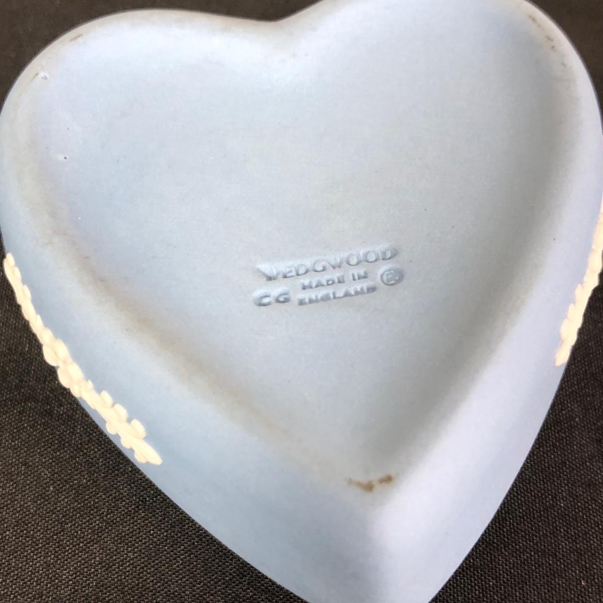 LOT 7M: Vintage Blue Wedgewood England Jasperware - Covered Trinket Box & Heart Shaped Trinket Box