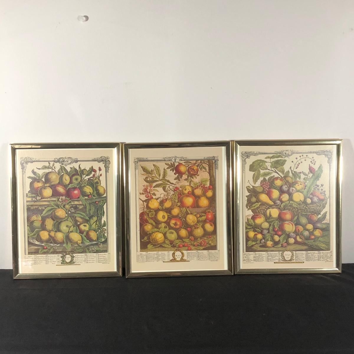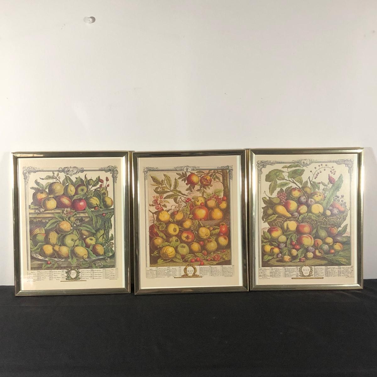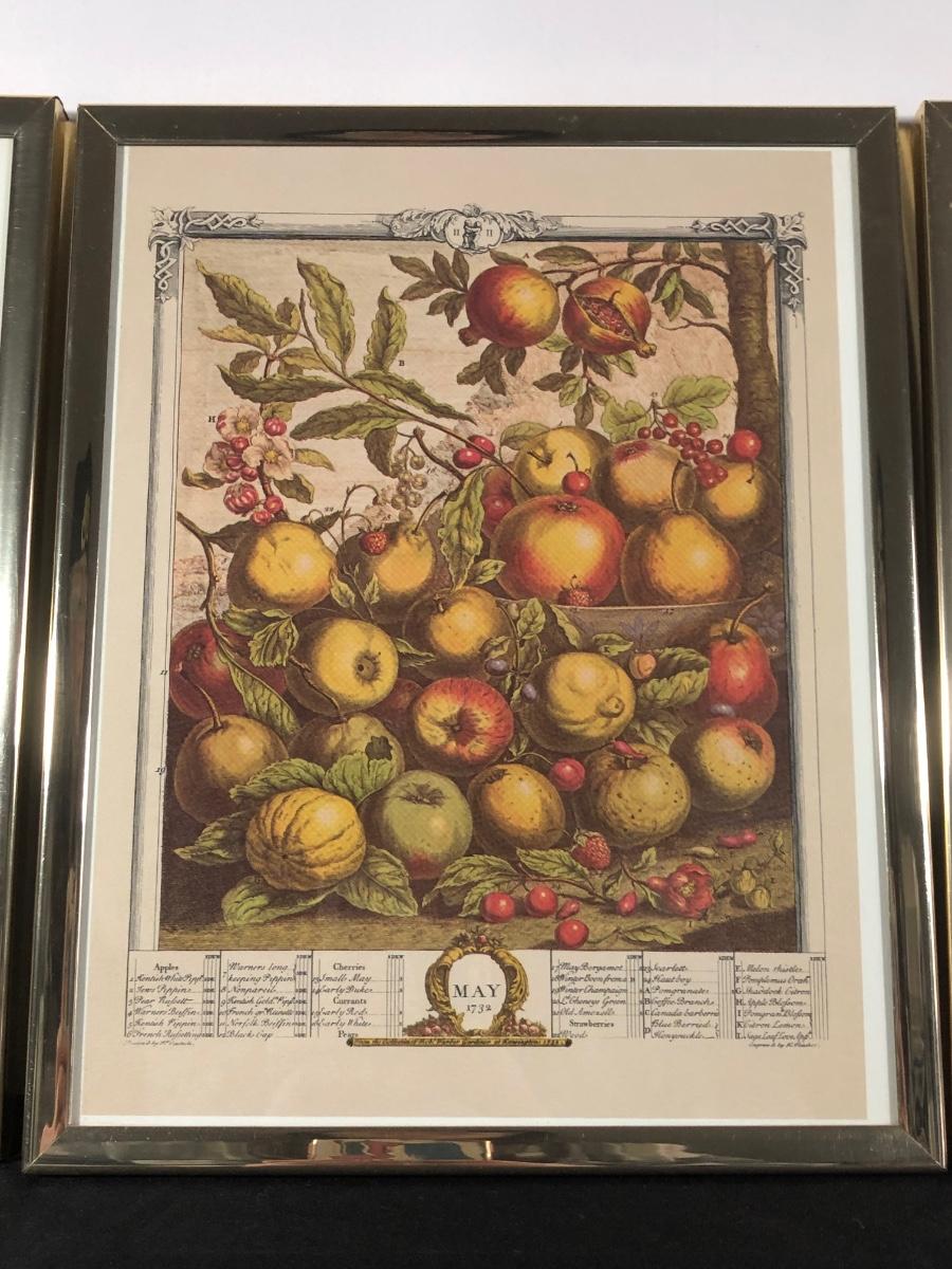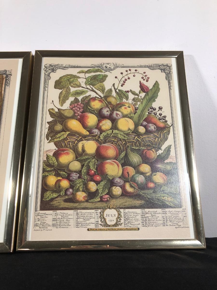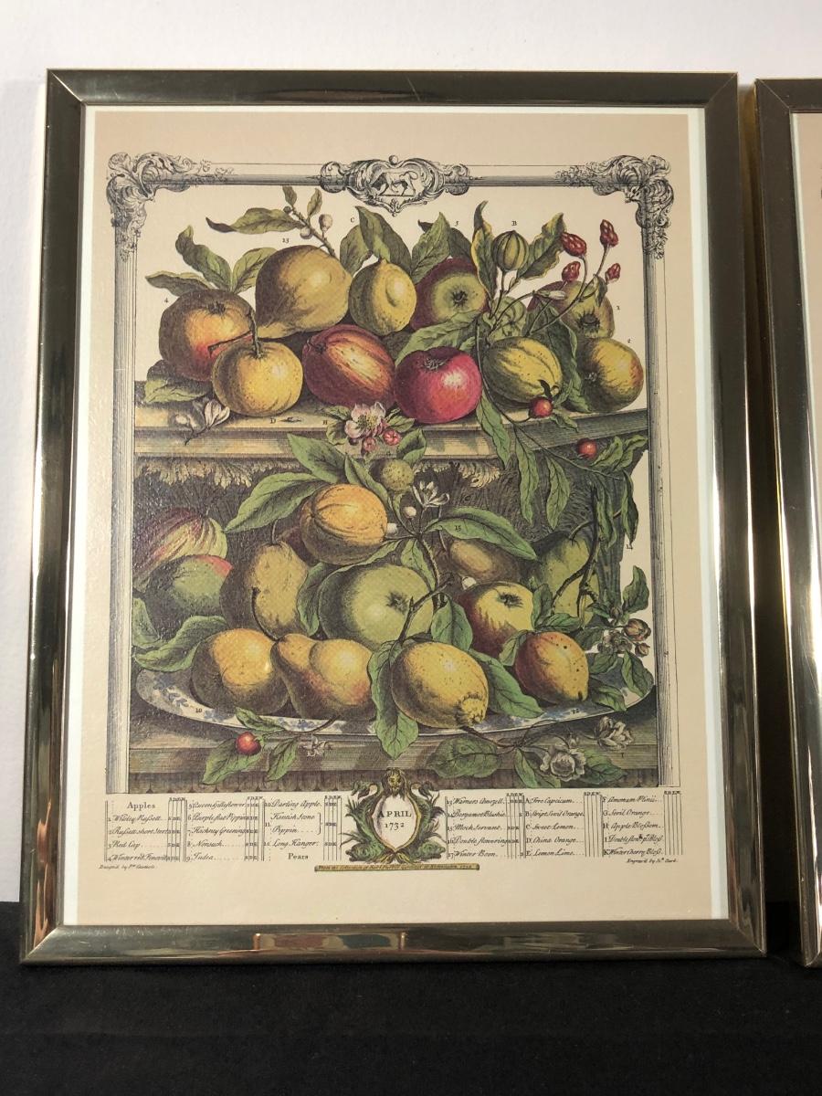 LOT 8M: Vintage Prints of 1732 Fruits of the Month Engravings by Jo. Clark - April, May & July