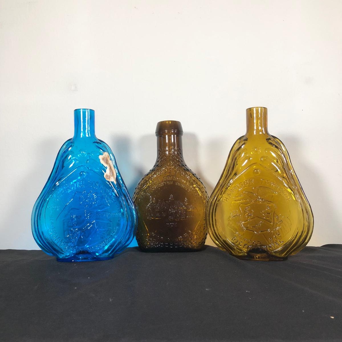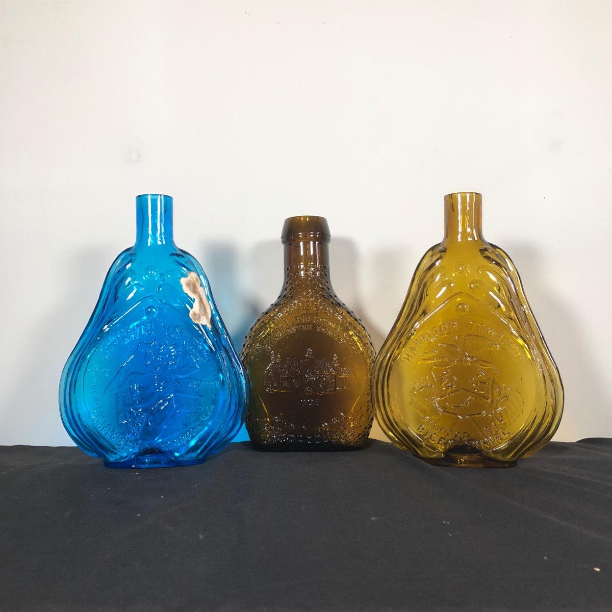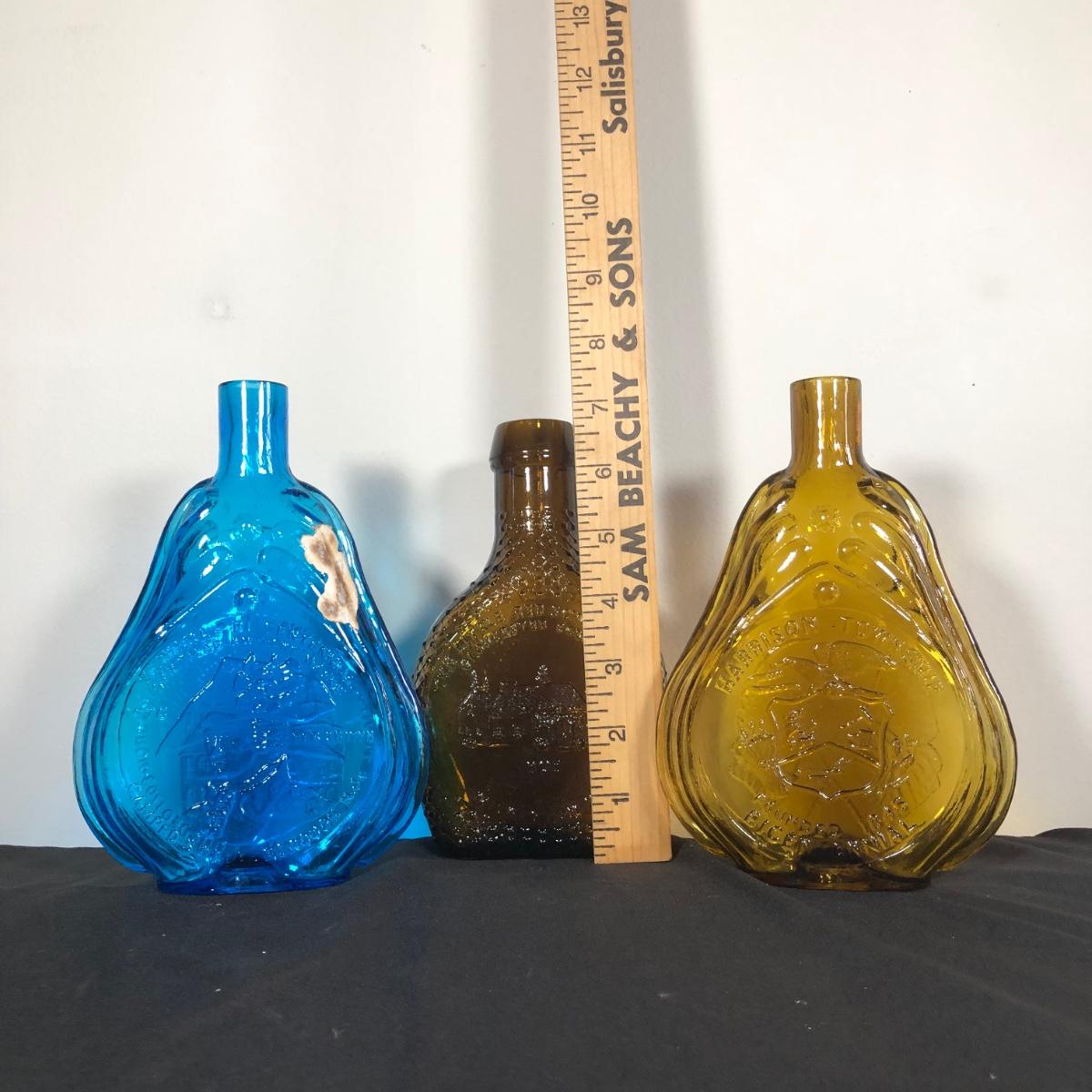 LOT 12M: Vintage Clevenger Bros Glass Bottles - Blue Swedesboro, Amber Gloucester County Schools & Amber Harrison Township