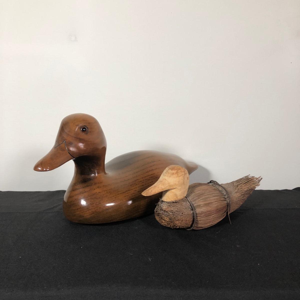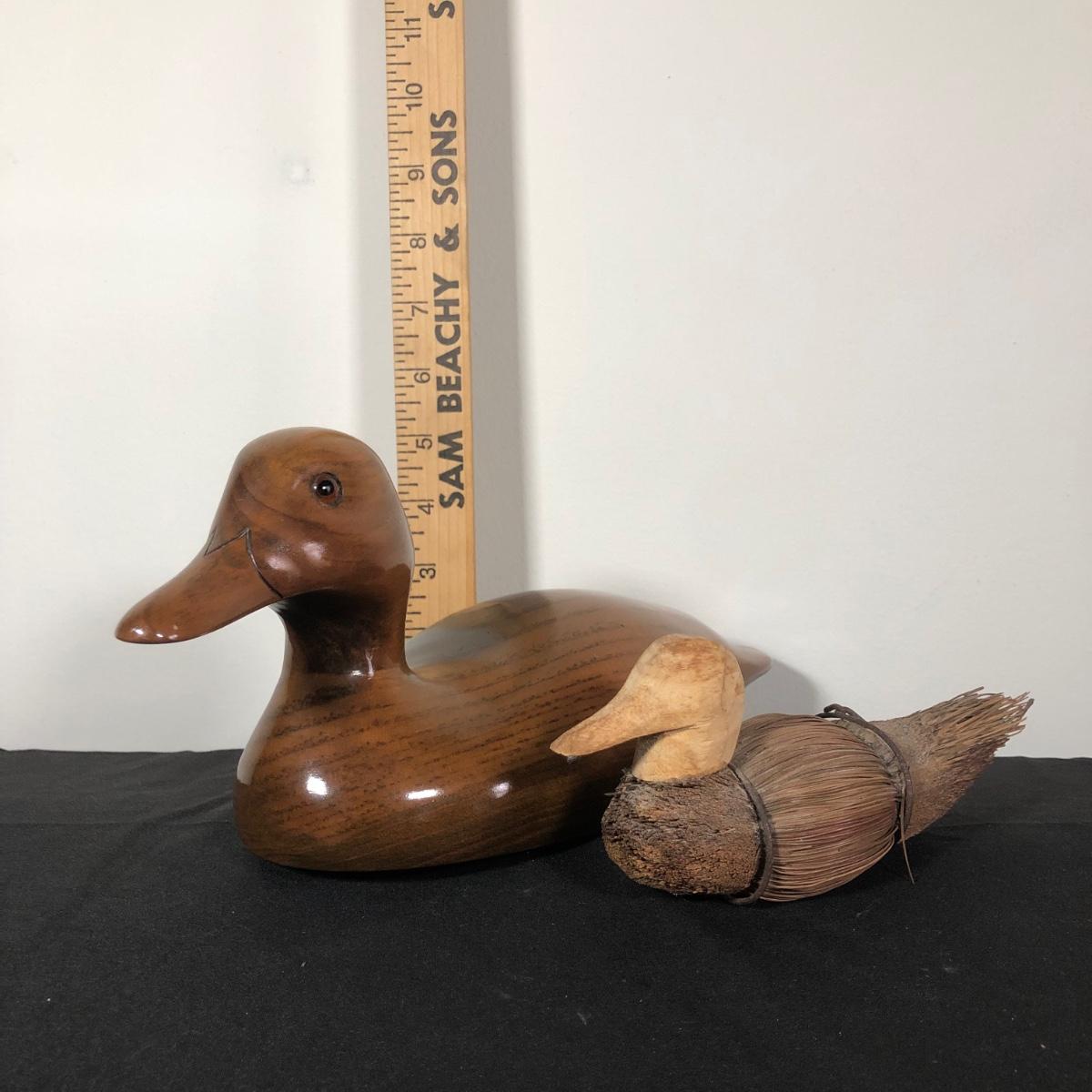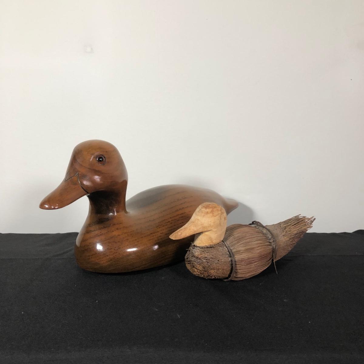 LOT 24M: Wooden Miniature Decory Duck & Broom Bristle Duck