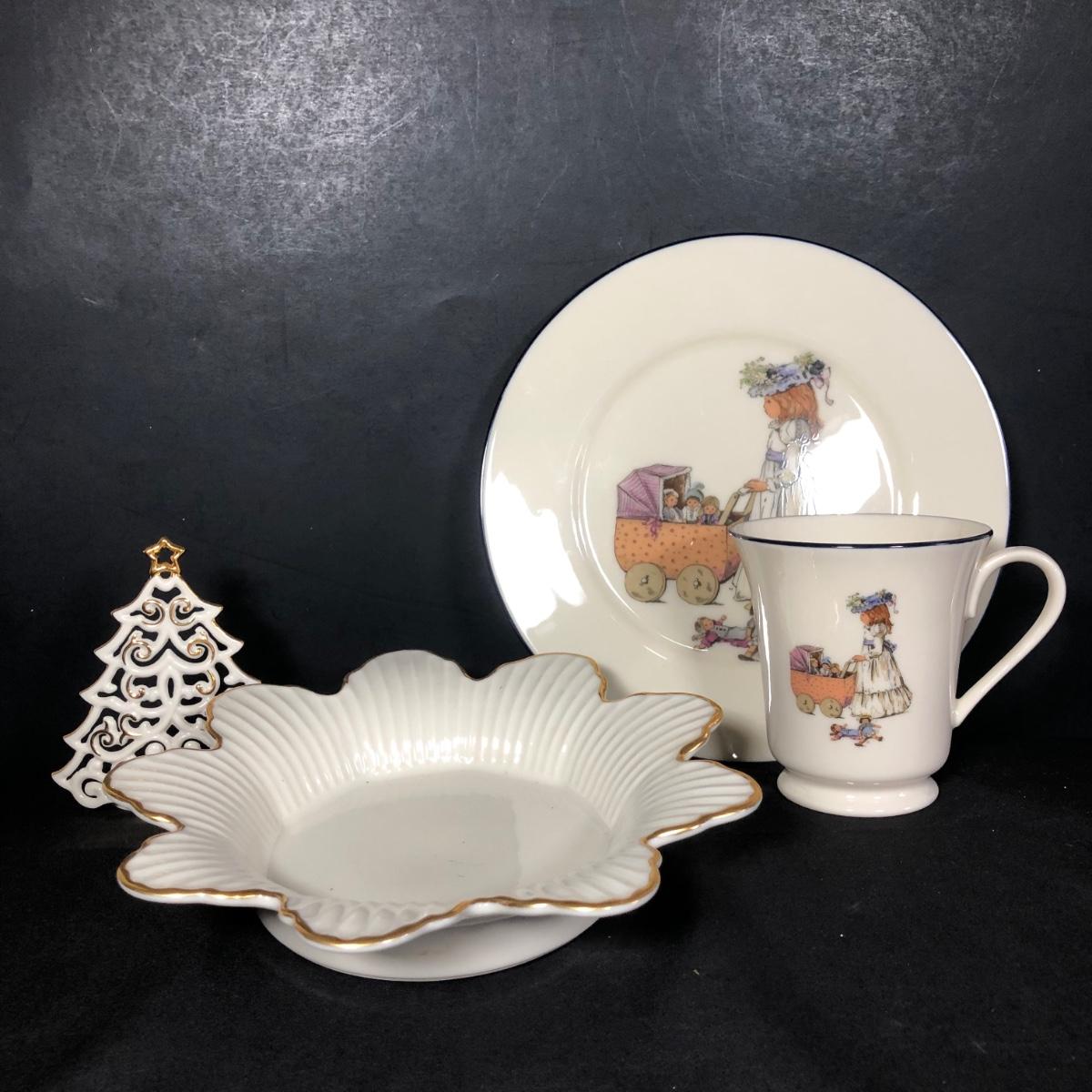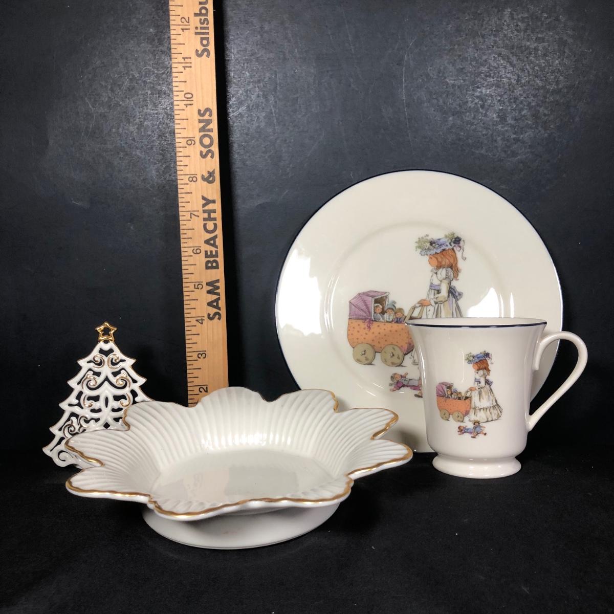 LOT 25M: Lenox Collection - Special Collector Child's Plate / Mug, Christmas Tree Votive & Meridian Collection Dish