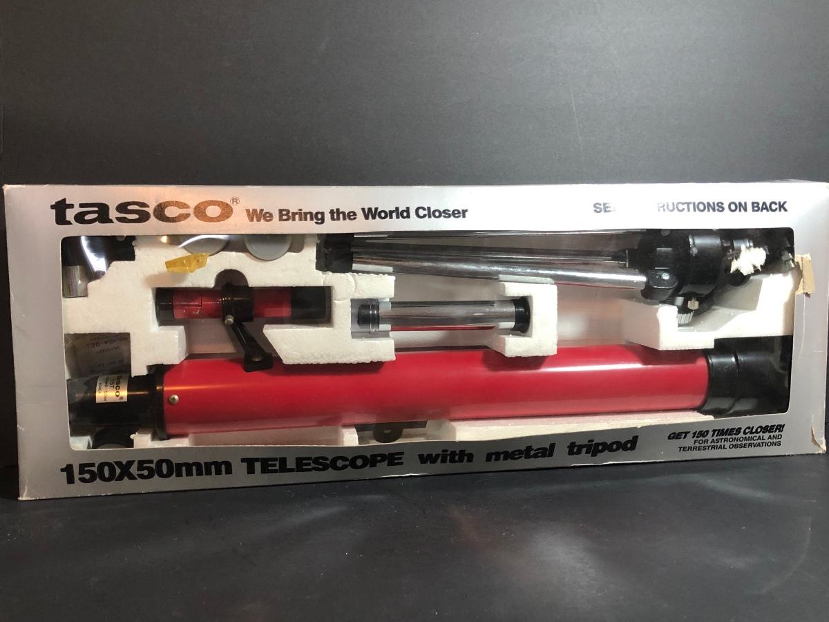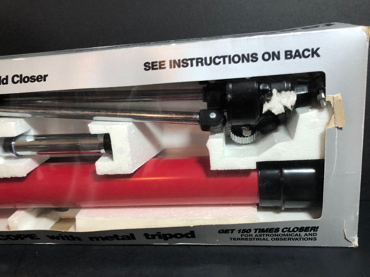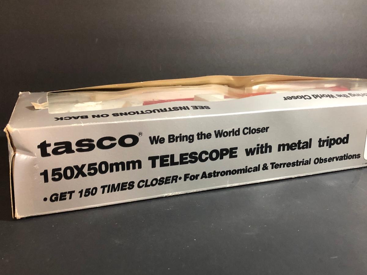 LOT 59C: Tasco 150x50mm Telescope w/ Metal Tripod in Box