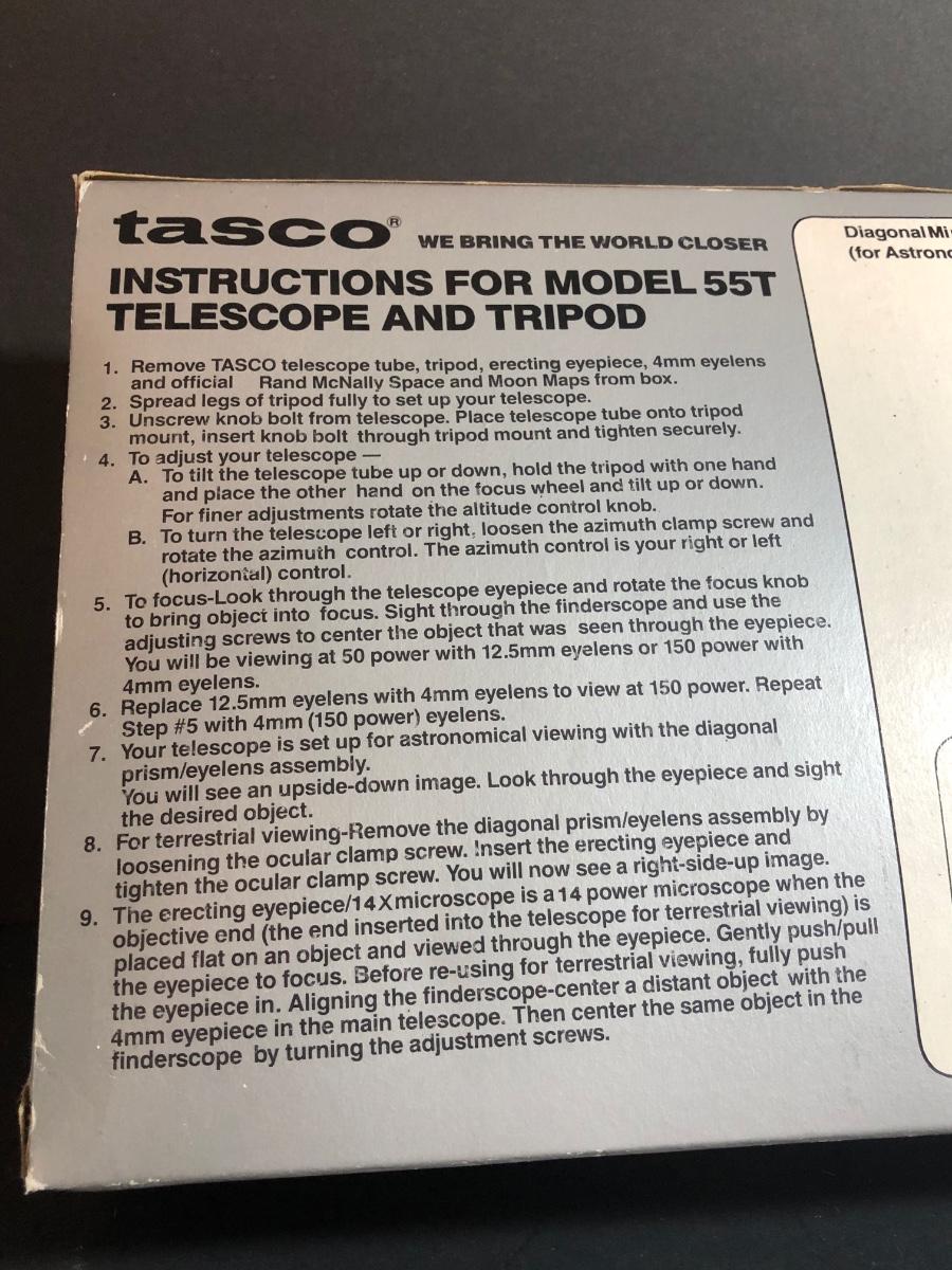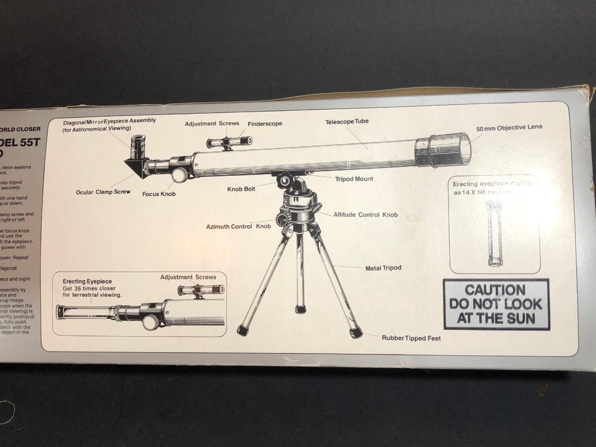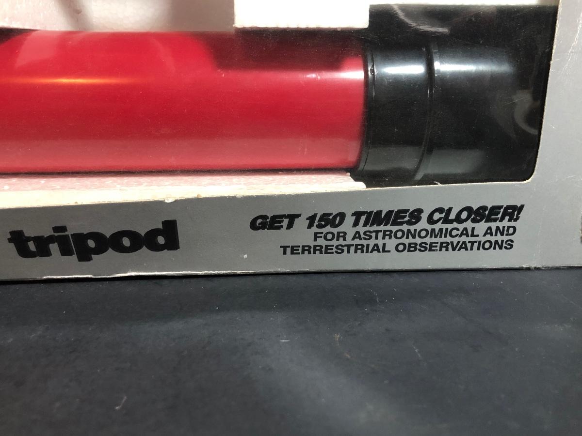 LOT 59C: Tasco 150x50mm Telescope w/ Metal Tripod in Box