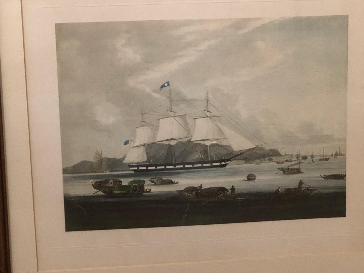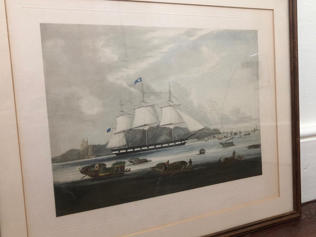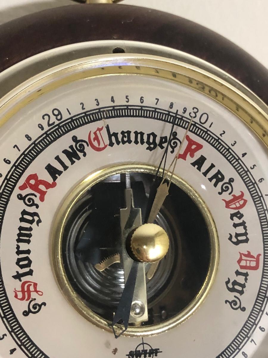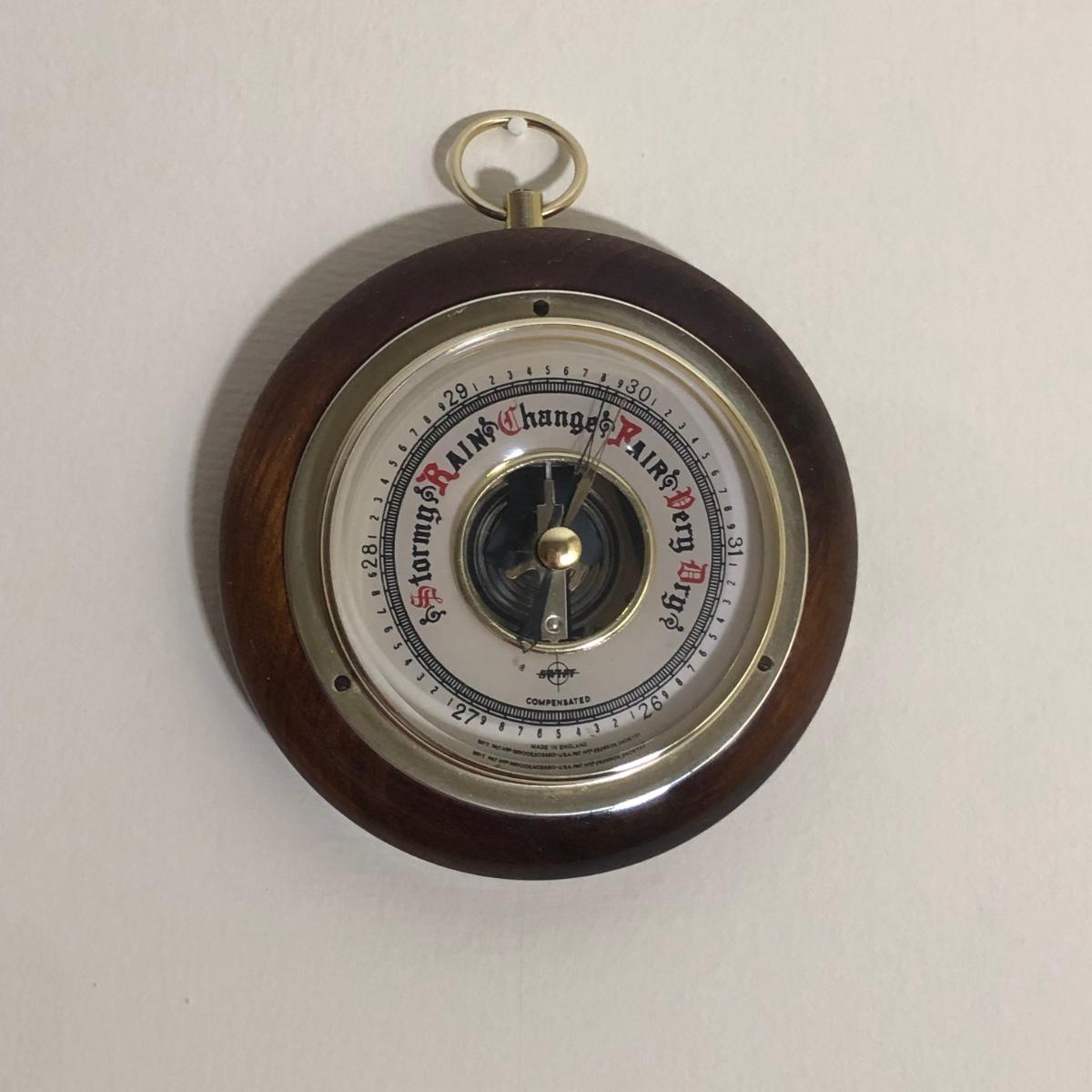 LOT 62Z: Vintage Clipper Ship Print, Mid-Century Swift Compensated Barometer made in England & Canvas Ship Wall Decor