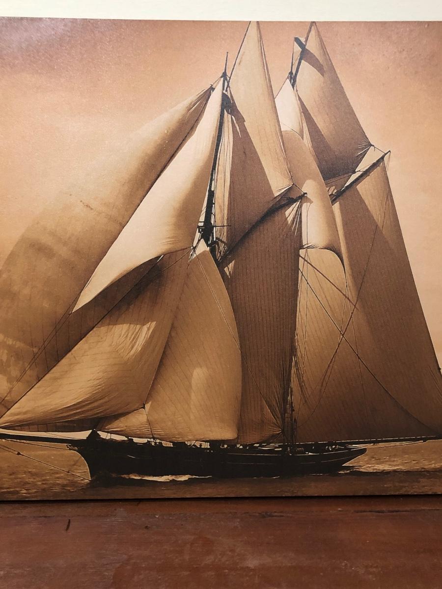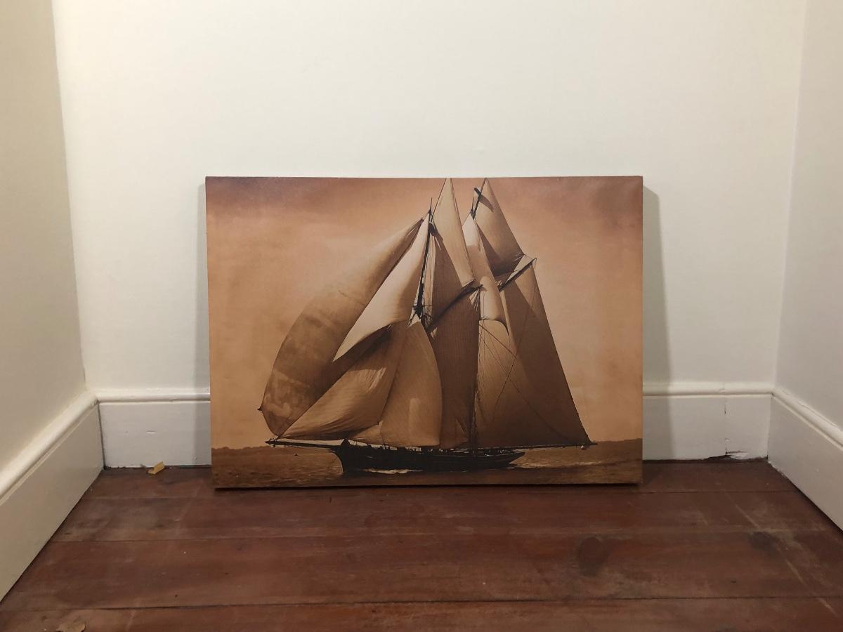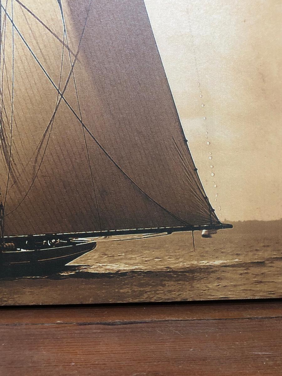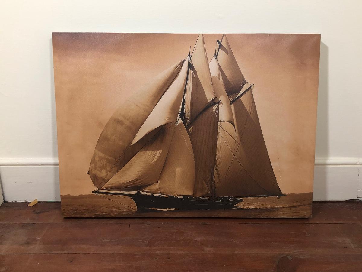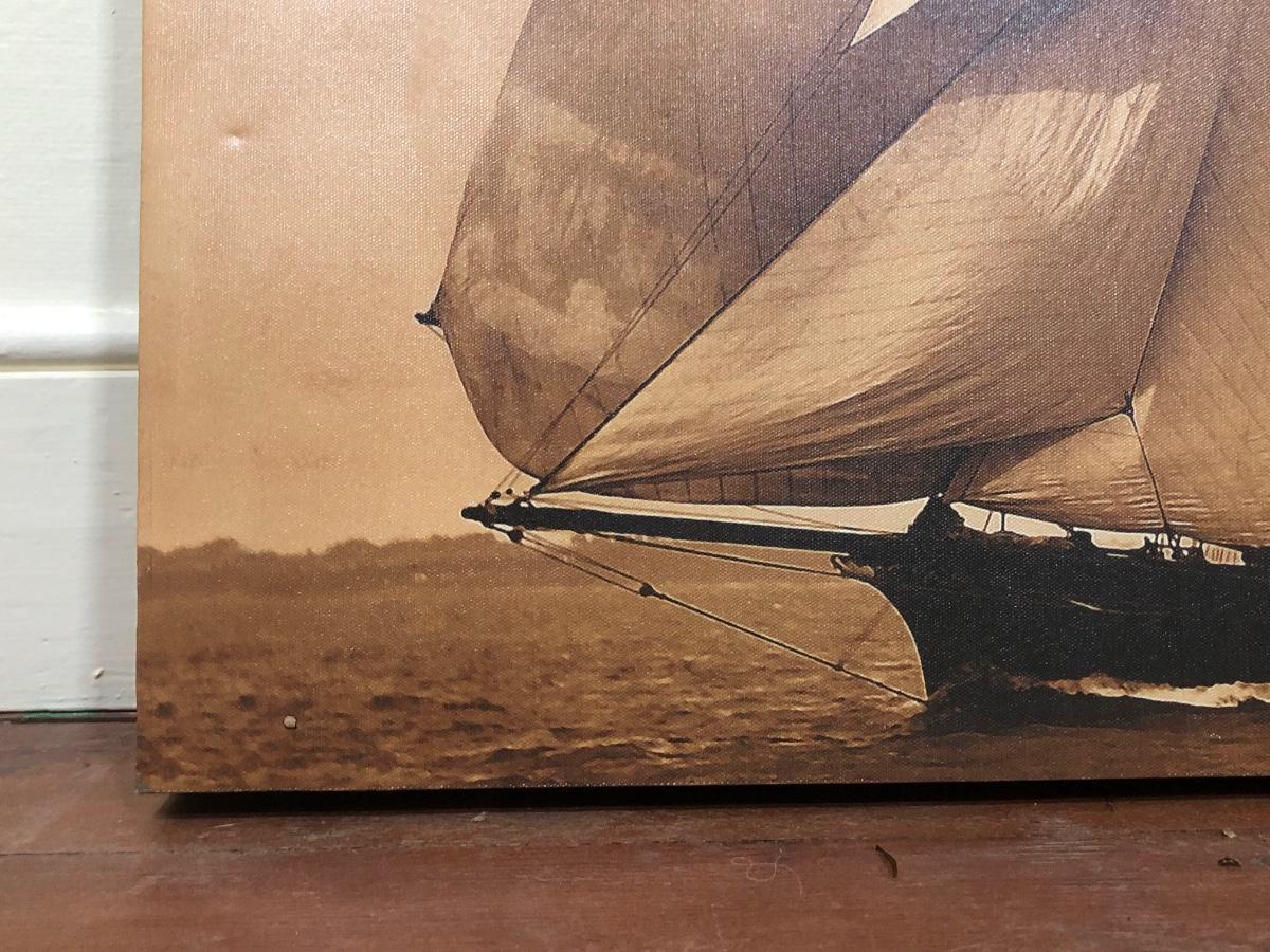 Clipper ship print measures 18 x 14.5 inches and canvas measures 28 x 20 inches.