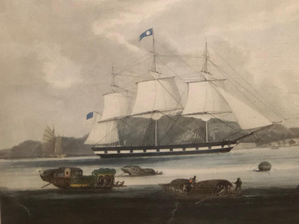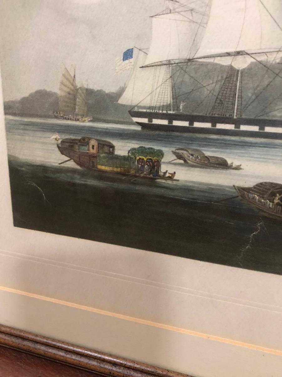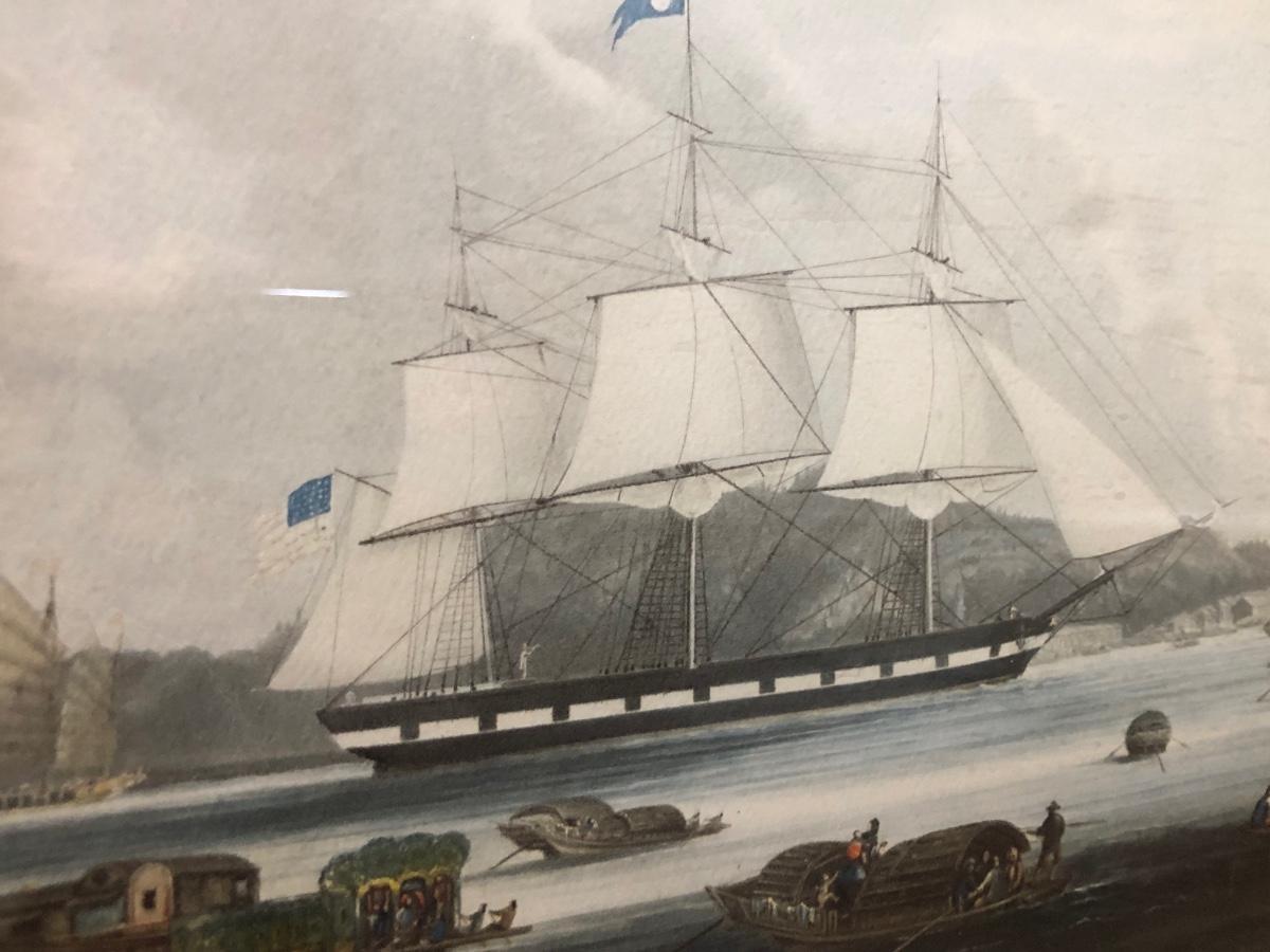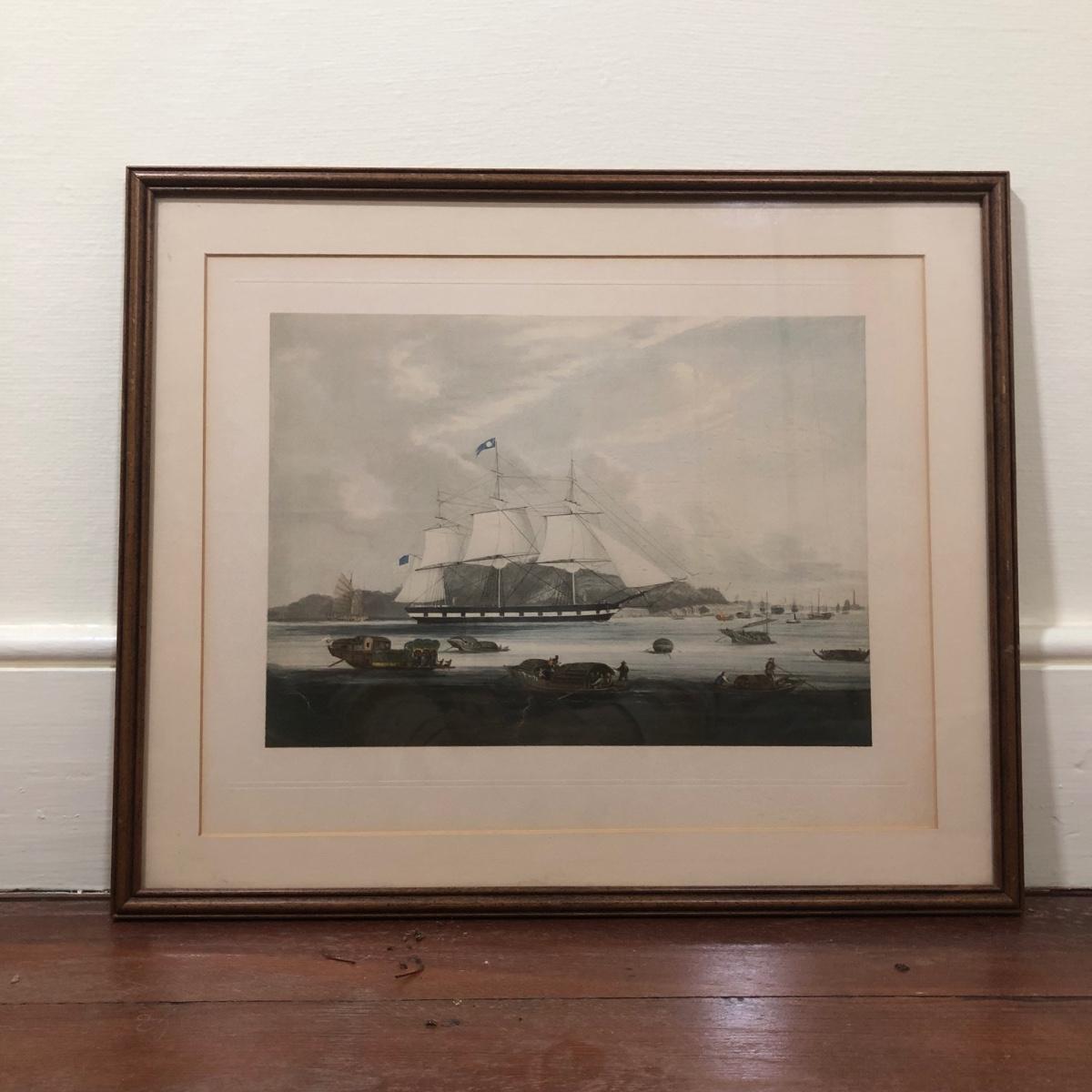 Clipper ship print measures 18 x 14.5 inches and canvas measures 28 x 20 inches.