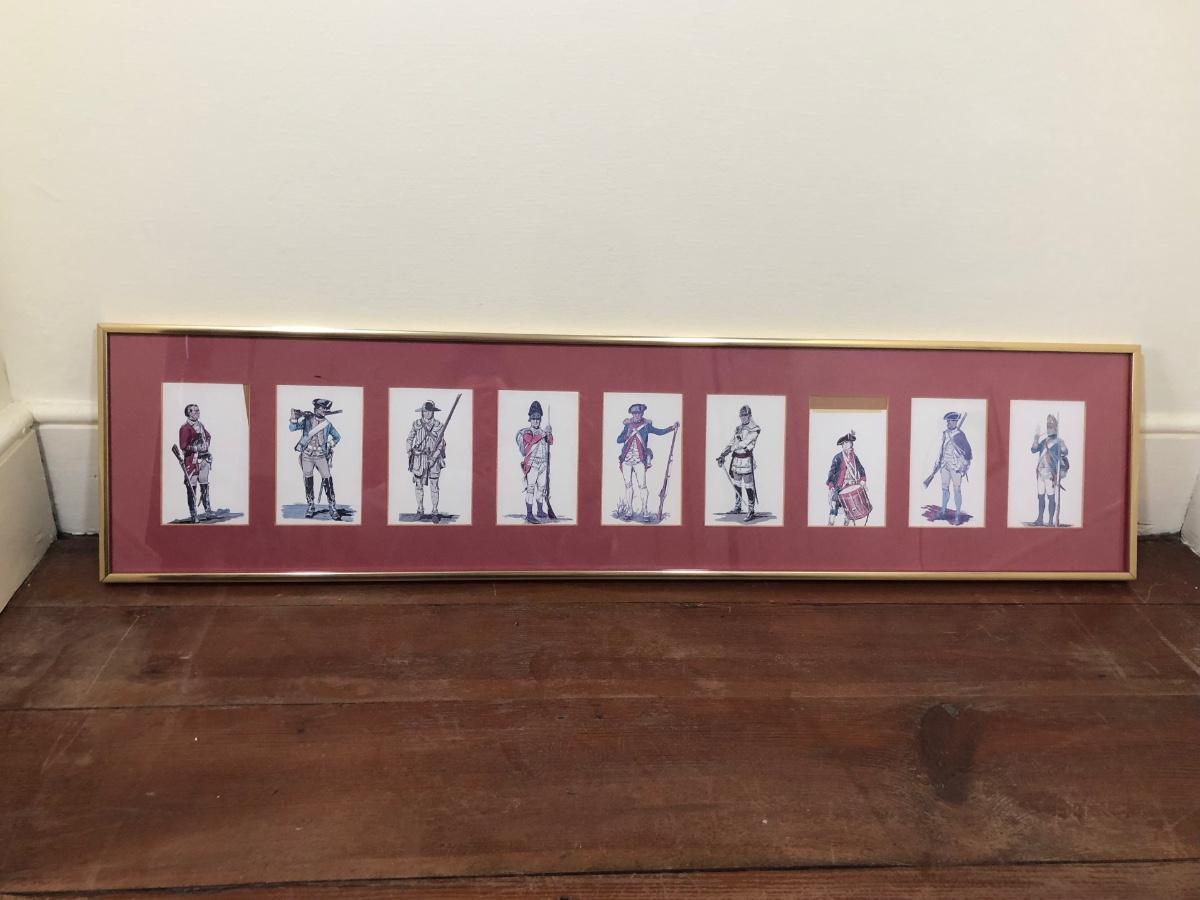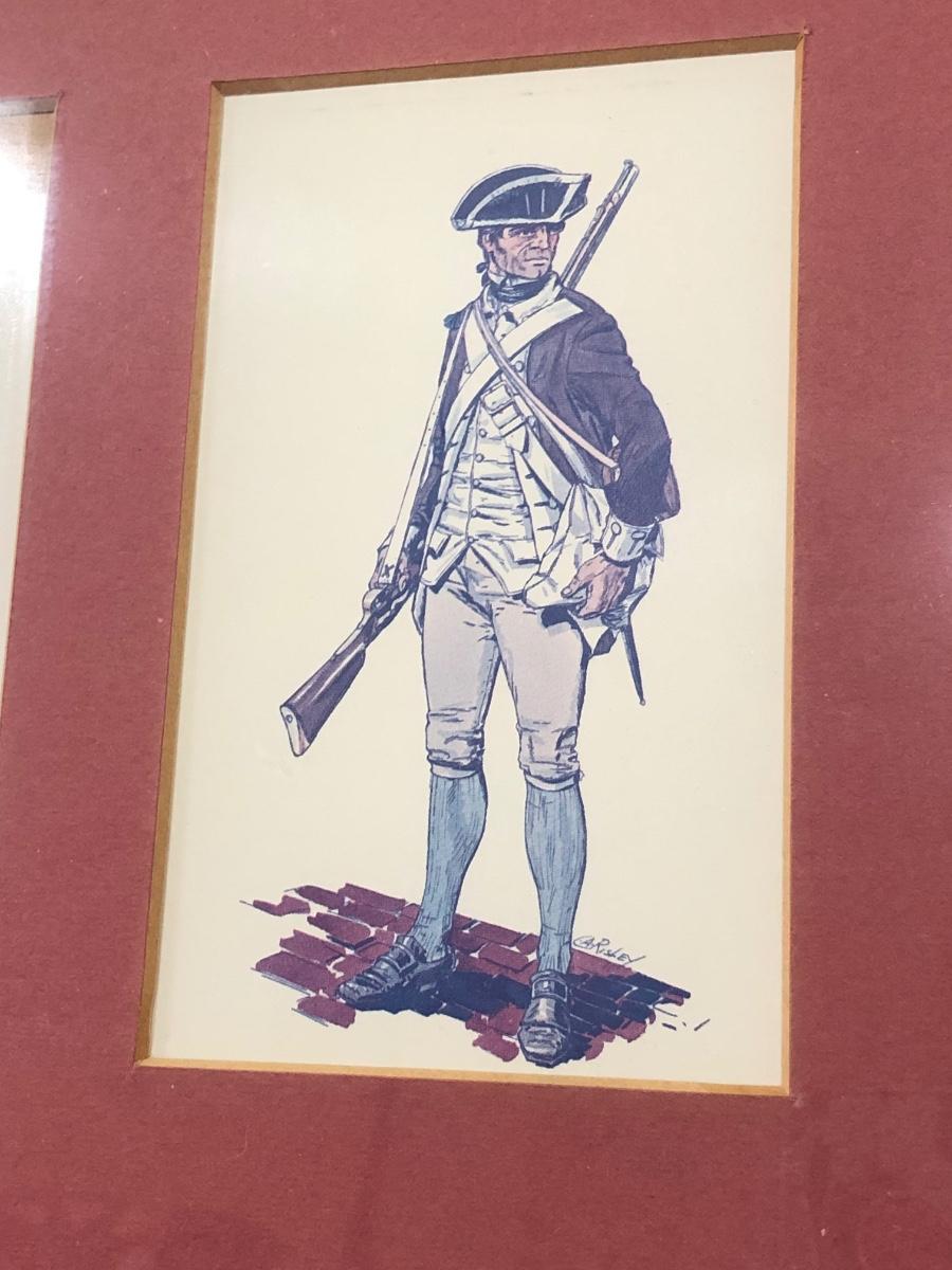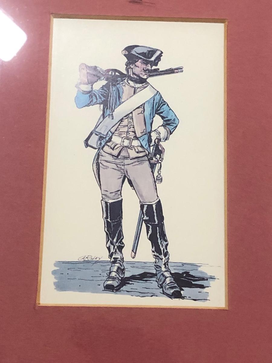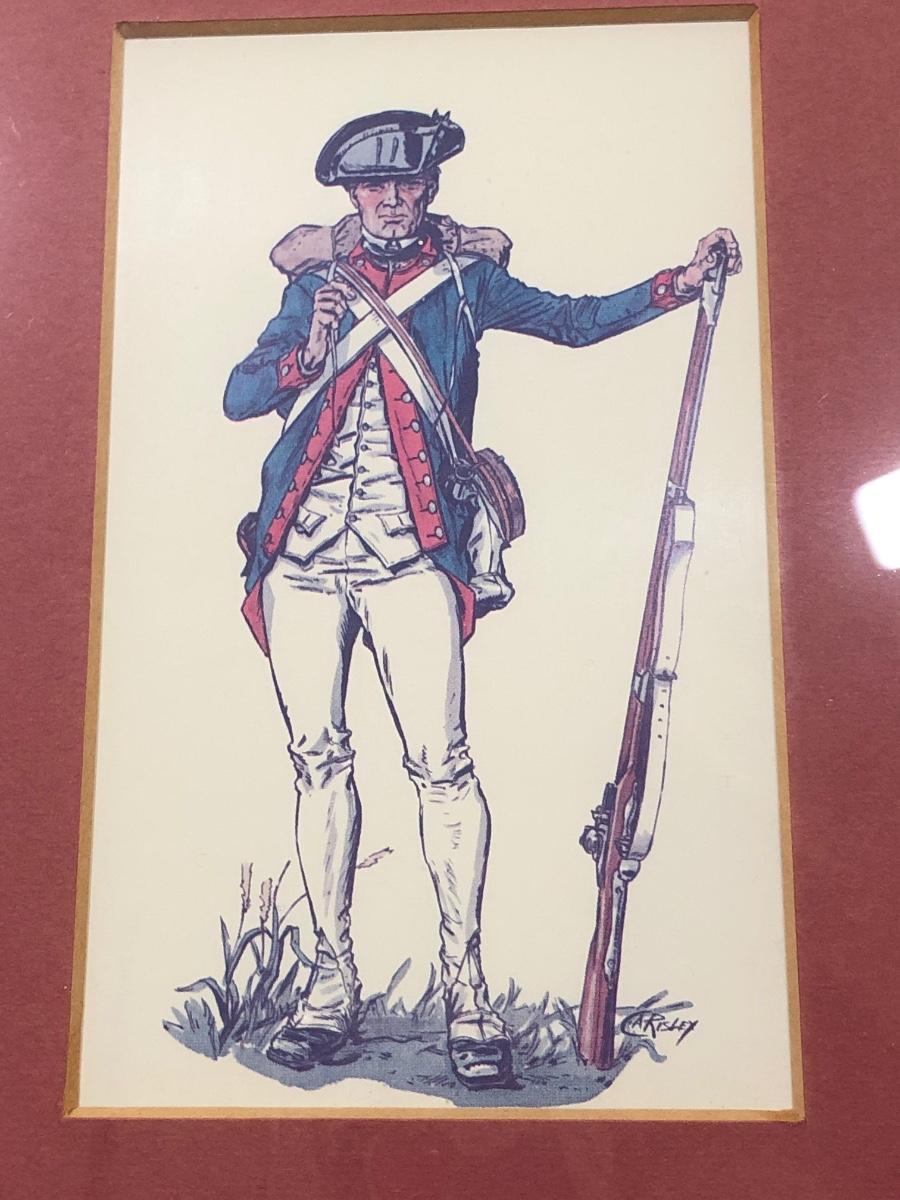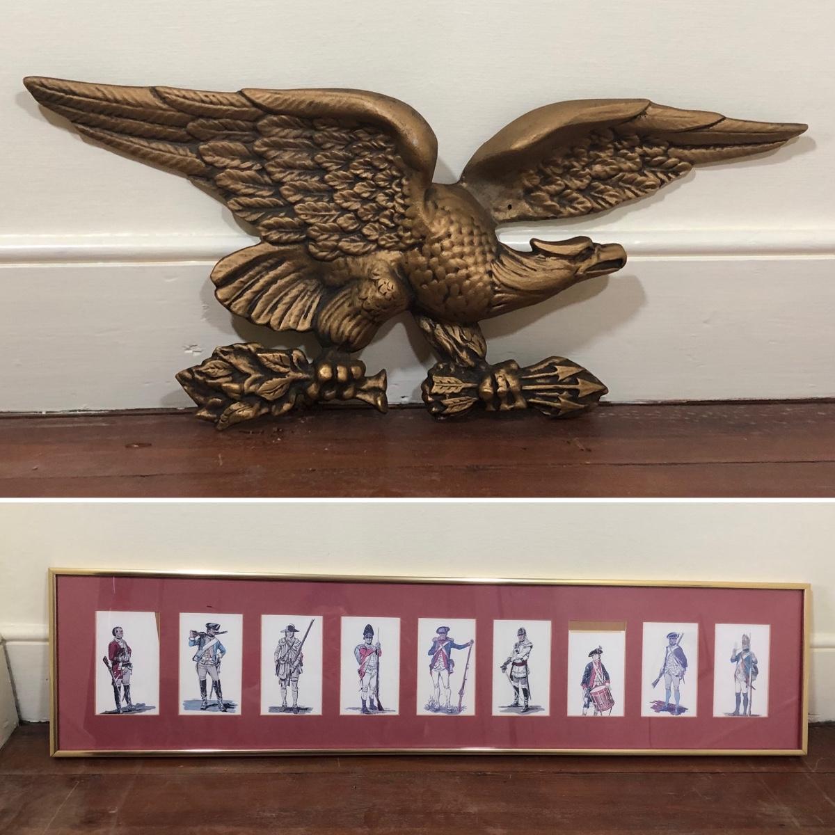 LOT 63Z: Metal Bald Eagle & Framed CA Risley Revolutionary War Postcard Illustrations