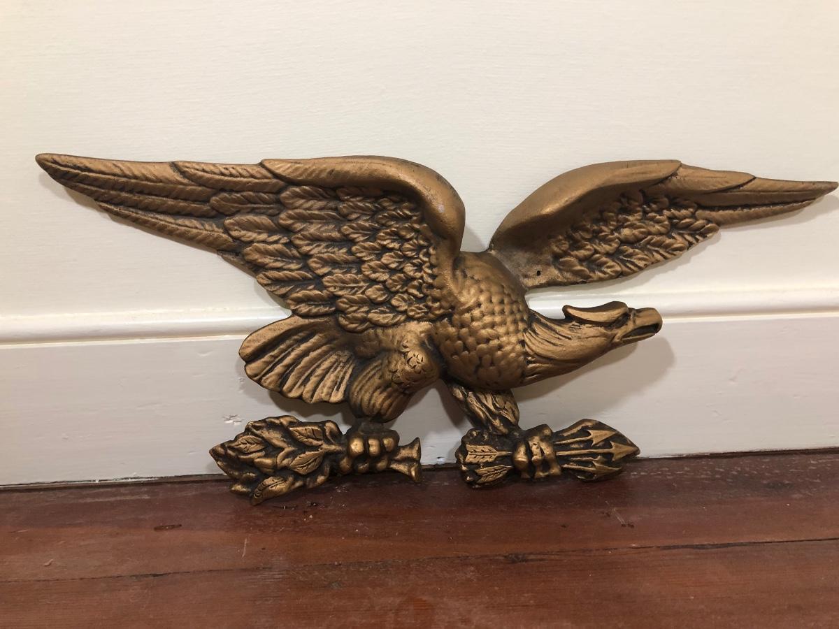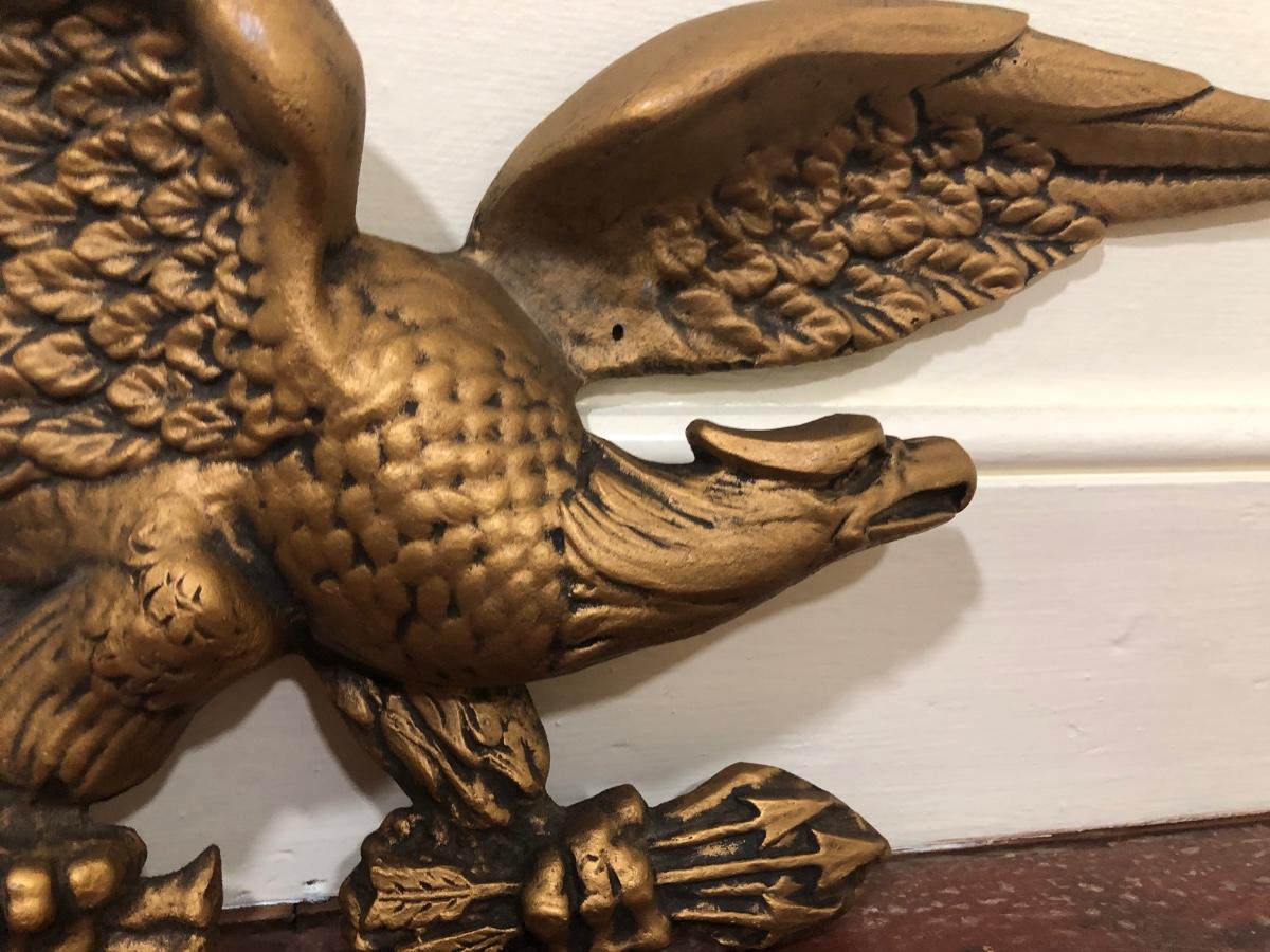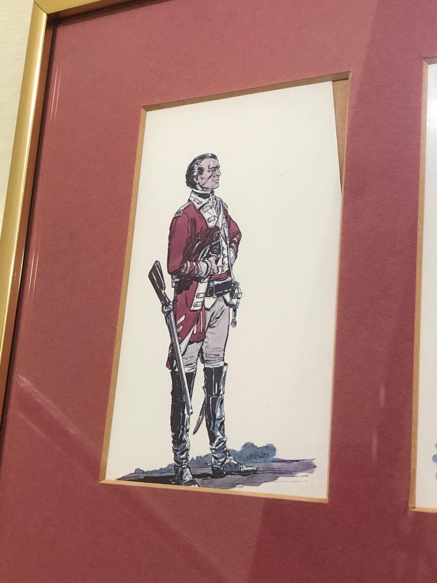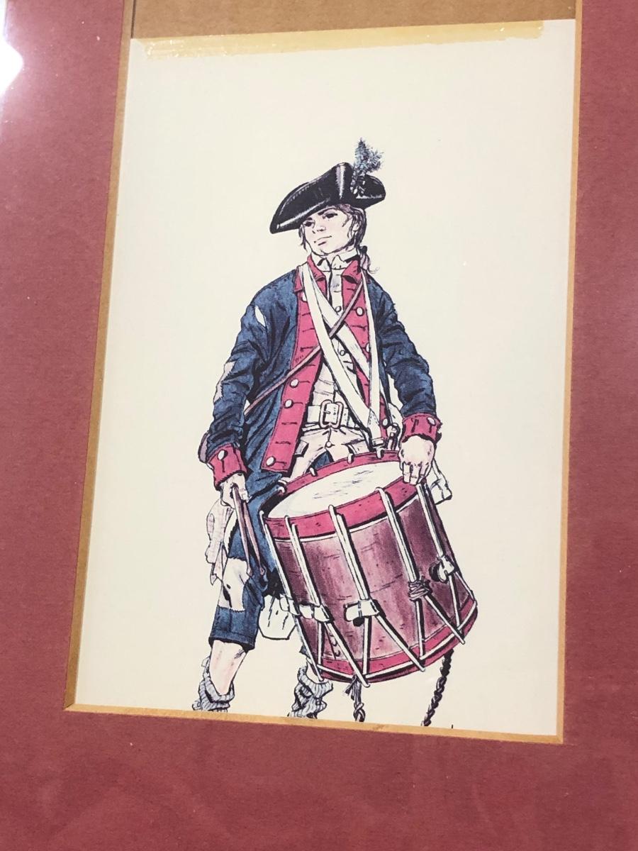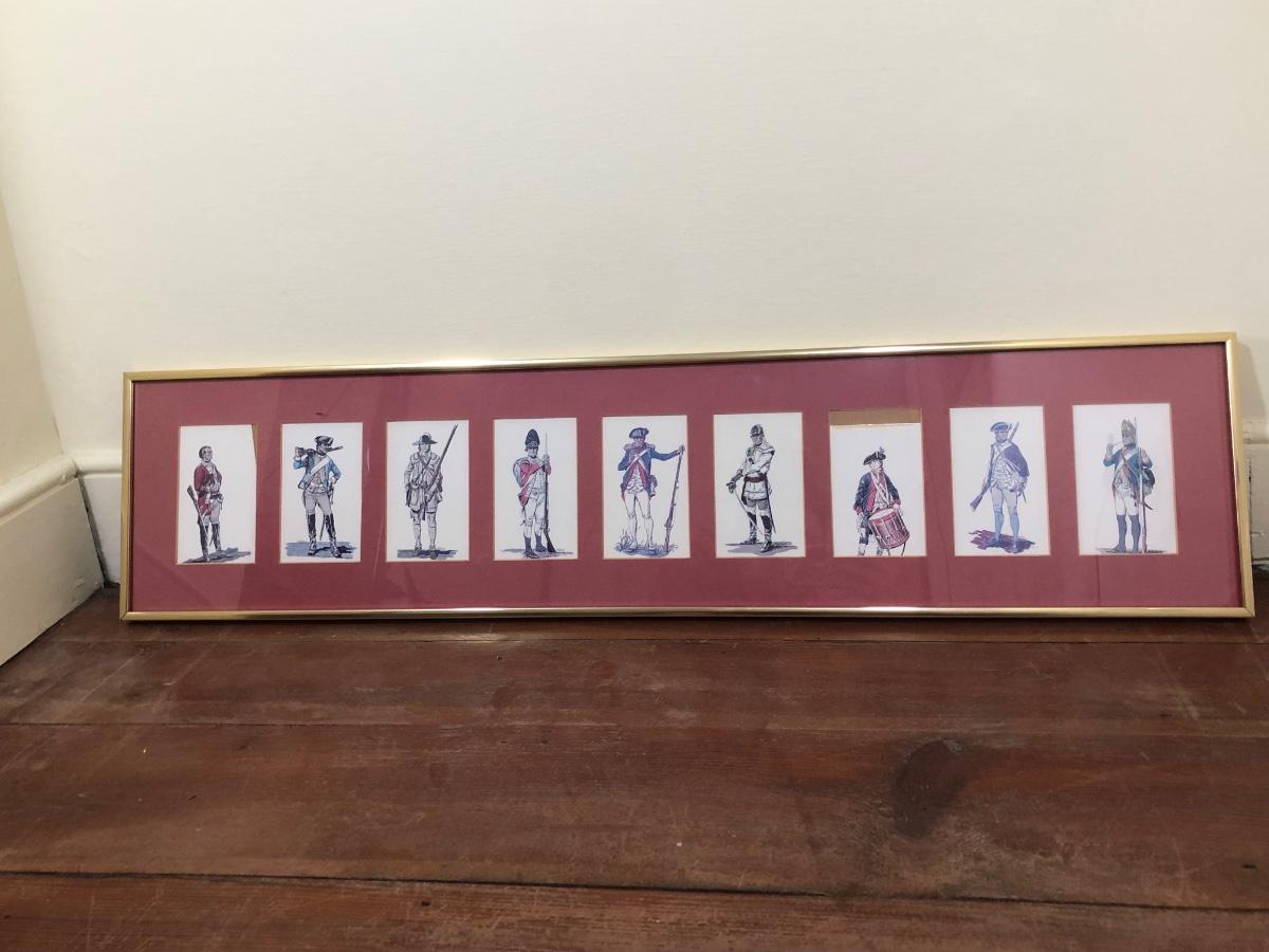 LOT 63Z: Metal Bald Eagle & Framed CA Risley Revolutionary War Postcard Illustrations