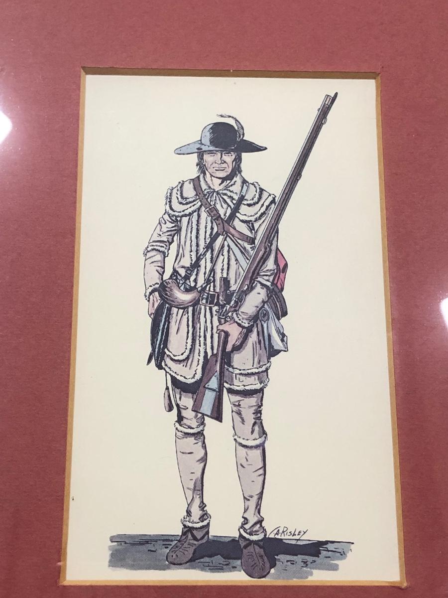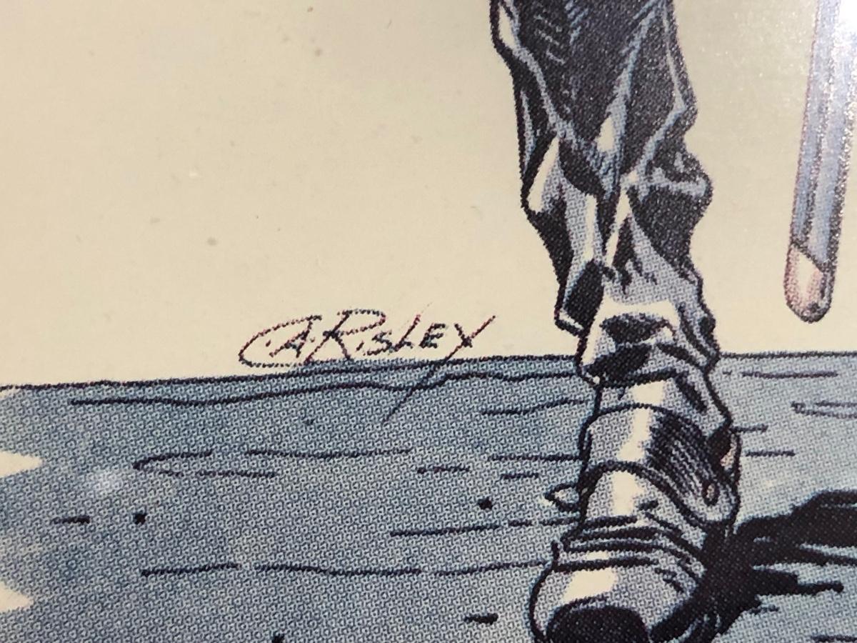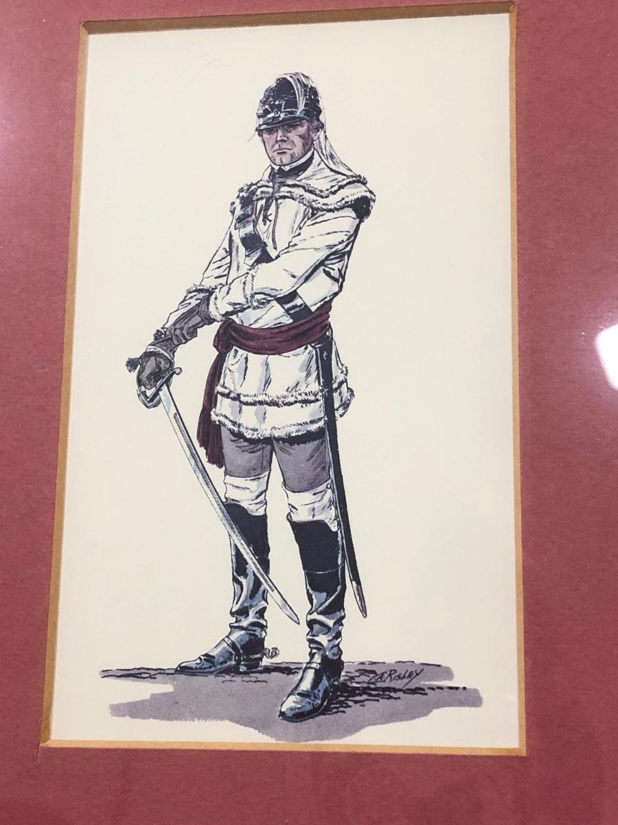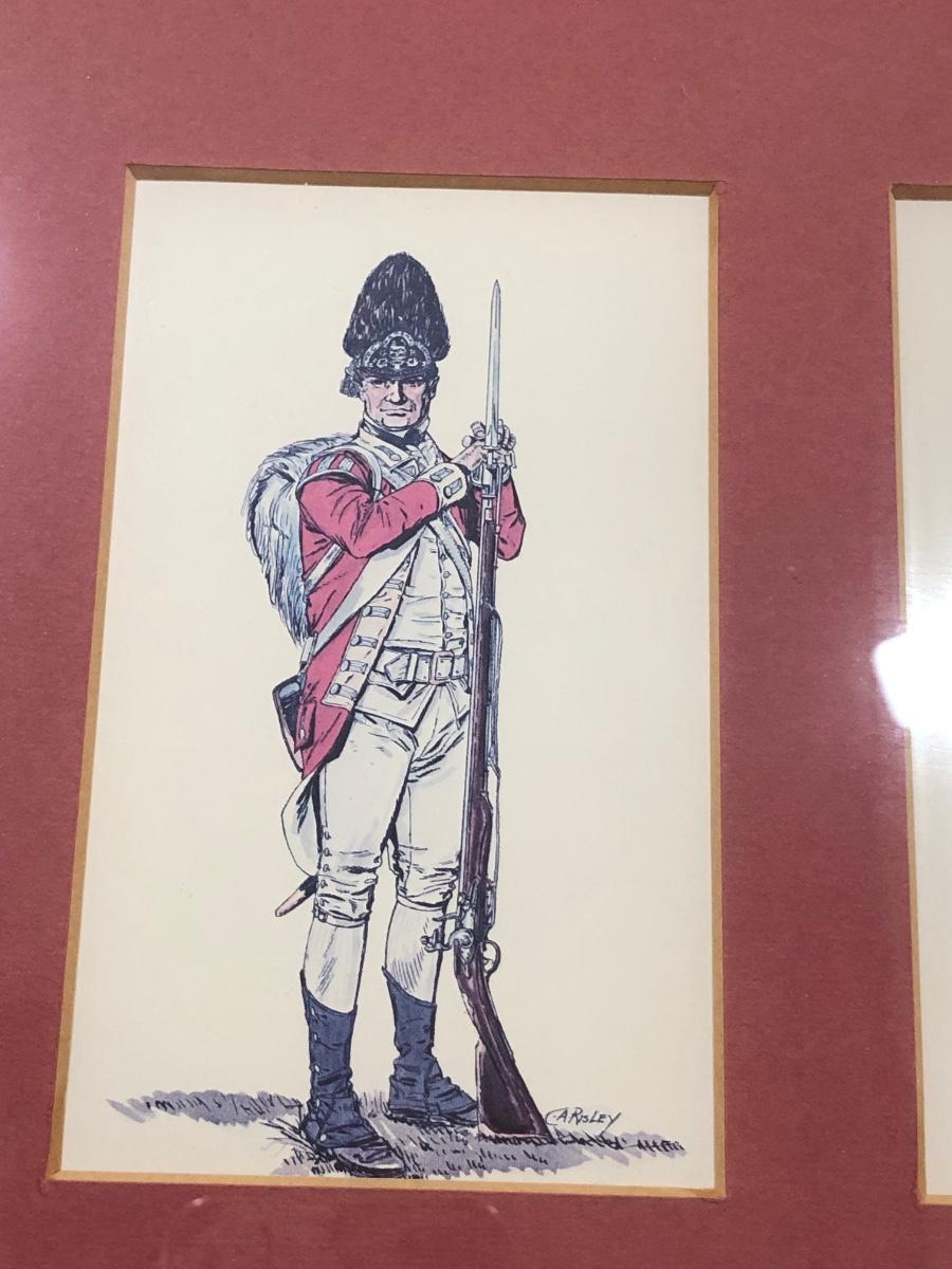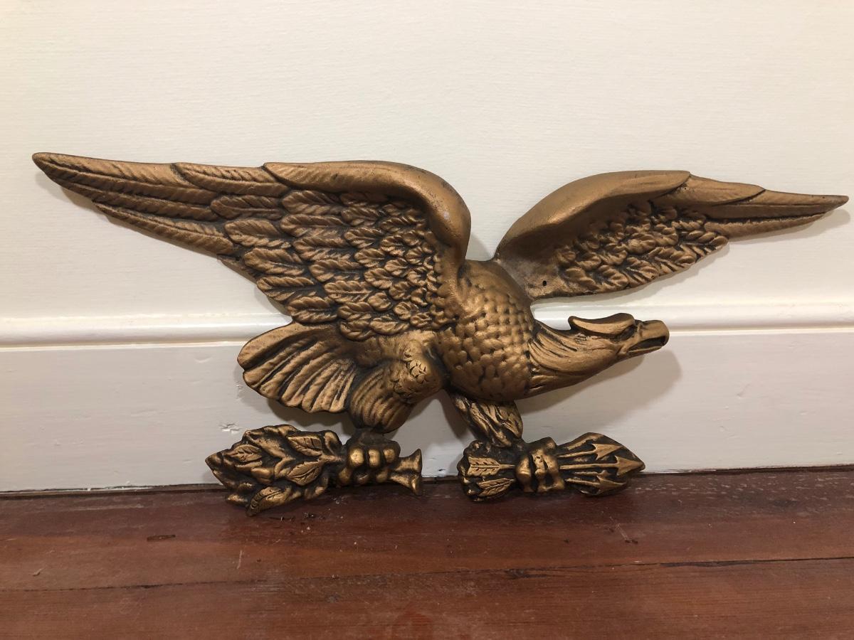 LOT 63Z: Metal Bald Eagle & Framed CA Risley Revolutionary War Postcard Illustrations