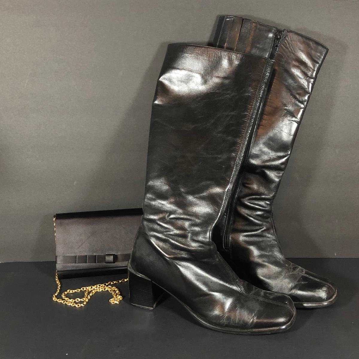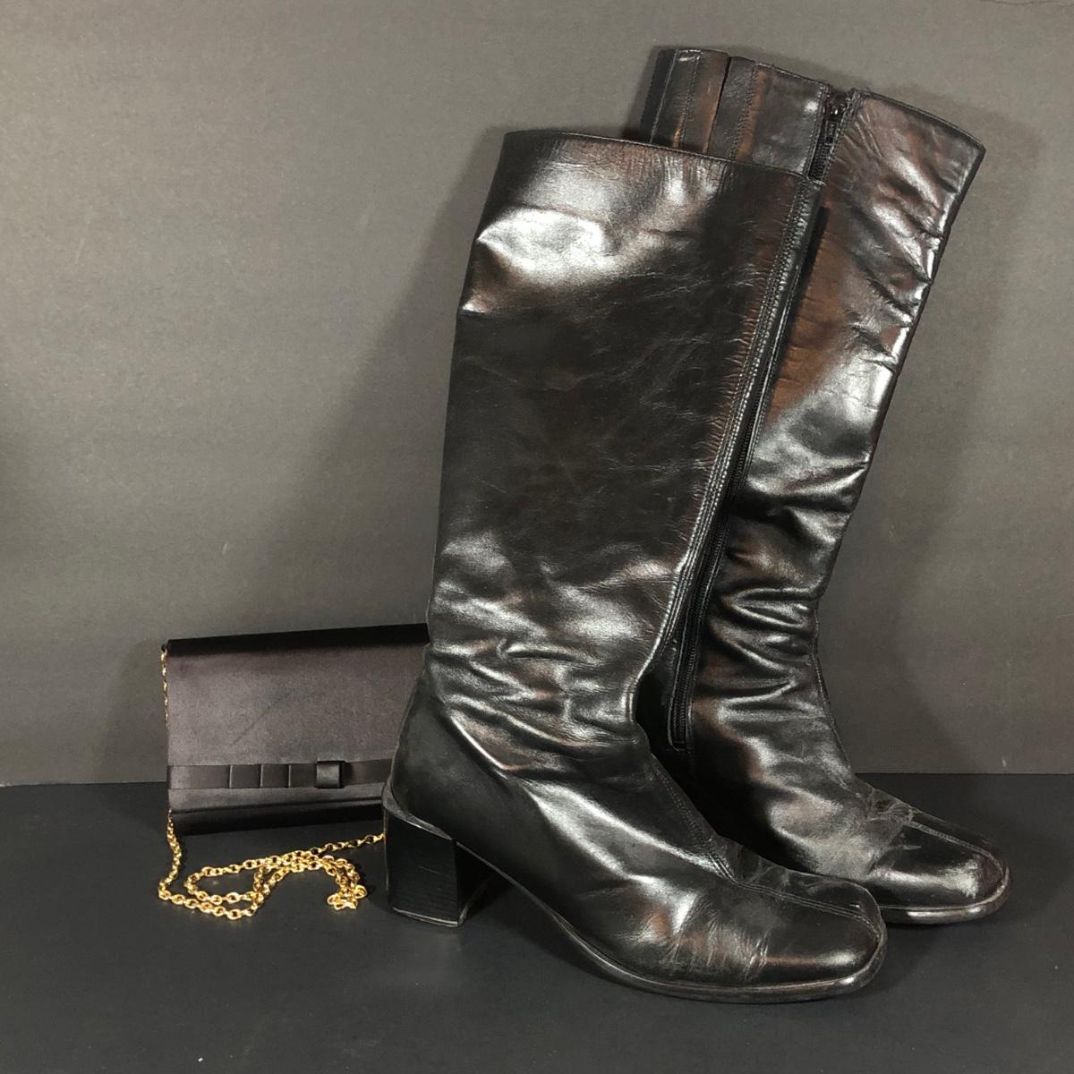 LOT 70C: Size 9 Black Bass Boots w/ Italian Andre Cellini Evening Bag