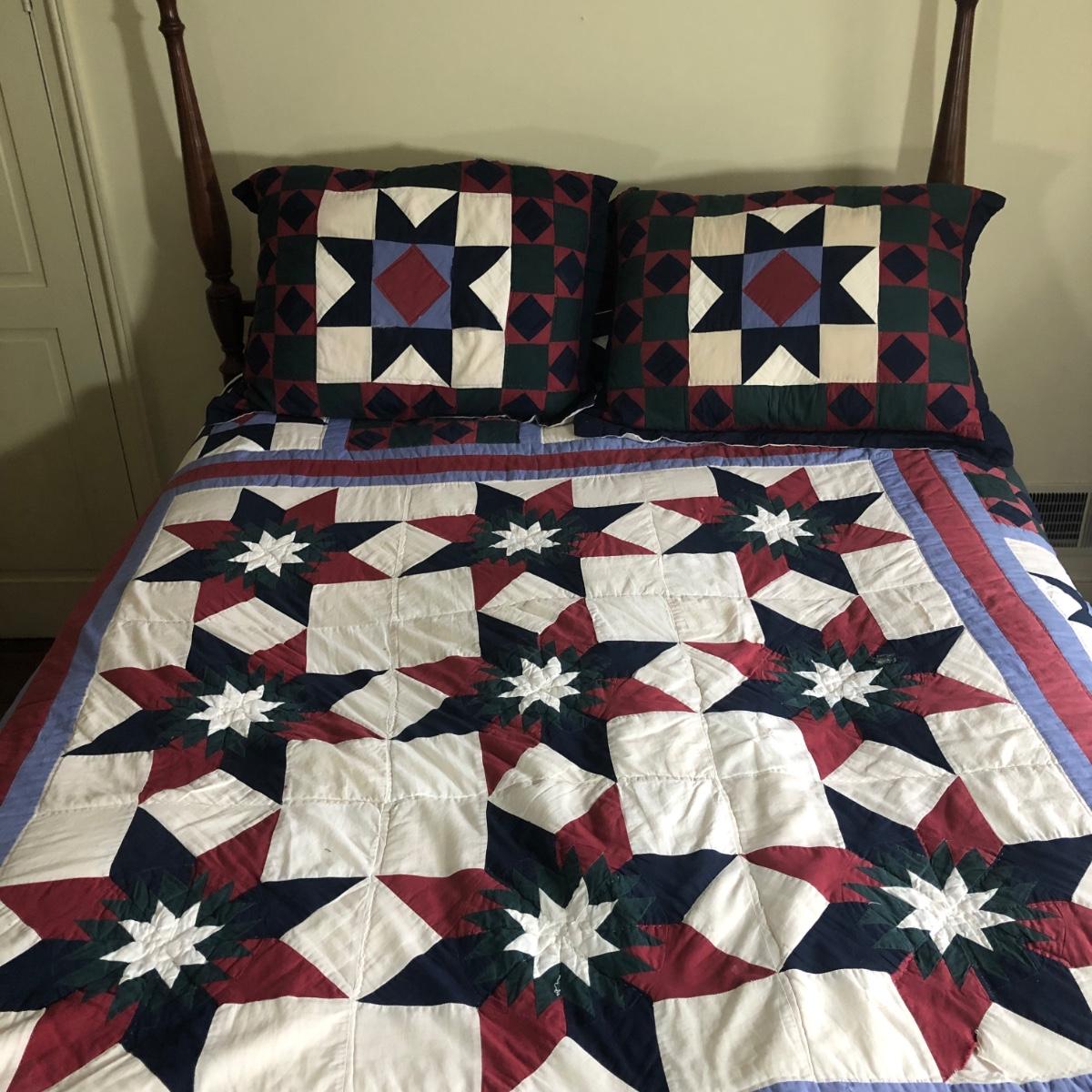 LOT 76Z: Vintage 8-Point Star Pattern Quilt w/ Pillow Covers