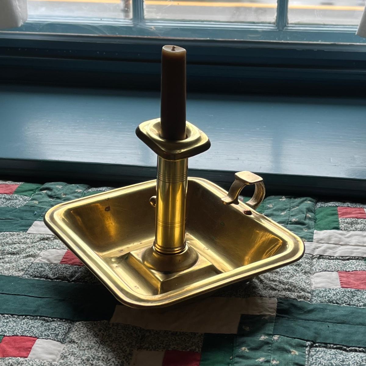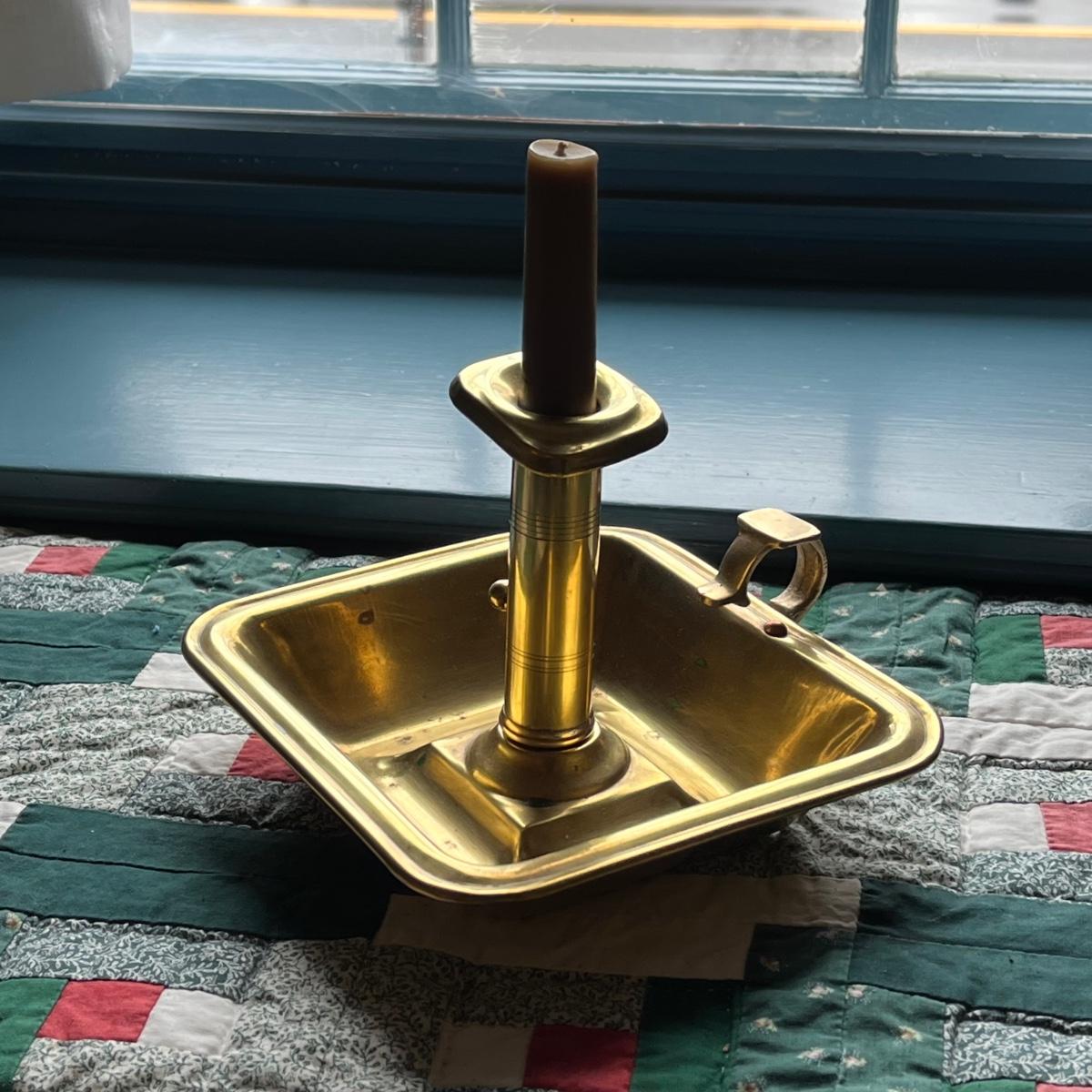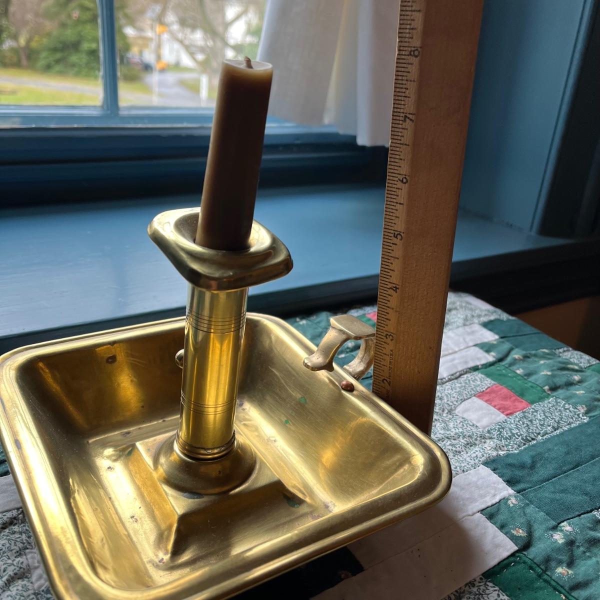 LOT 81H: Antique Colonial PushUp Pin Brass Chamber Finger Loop Candlestick Holder