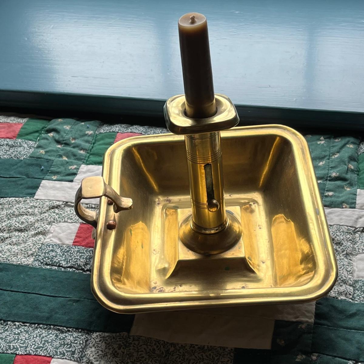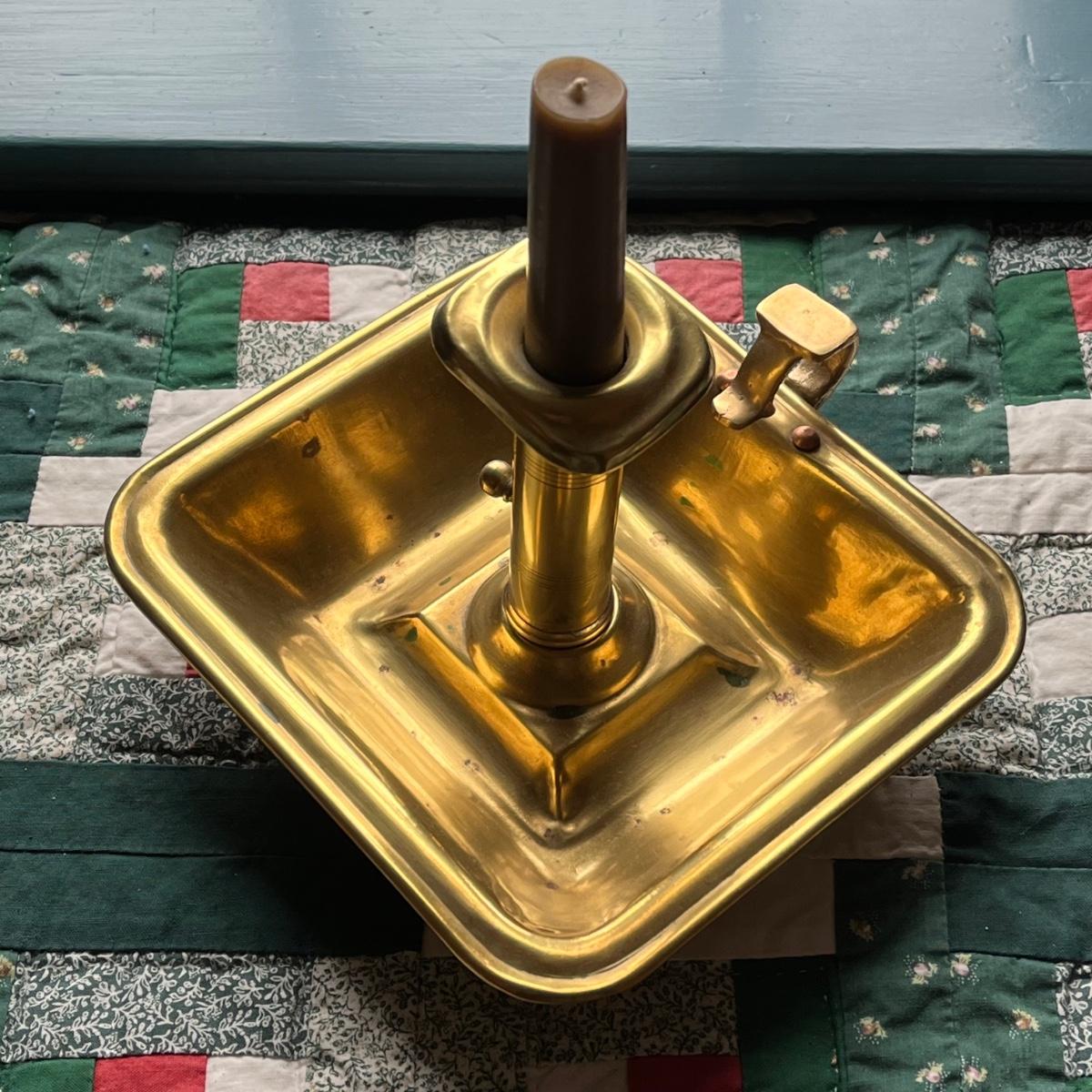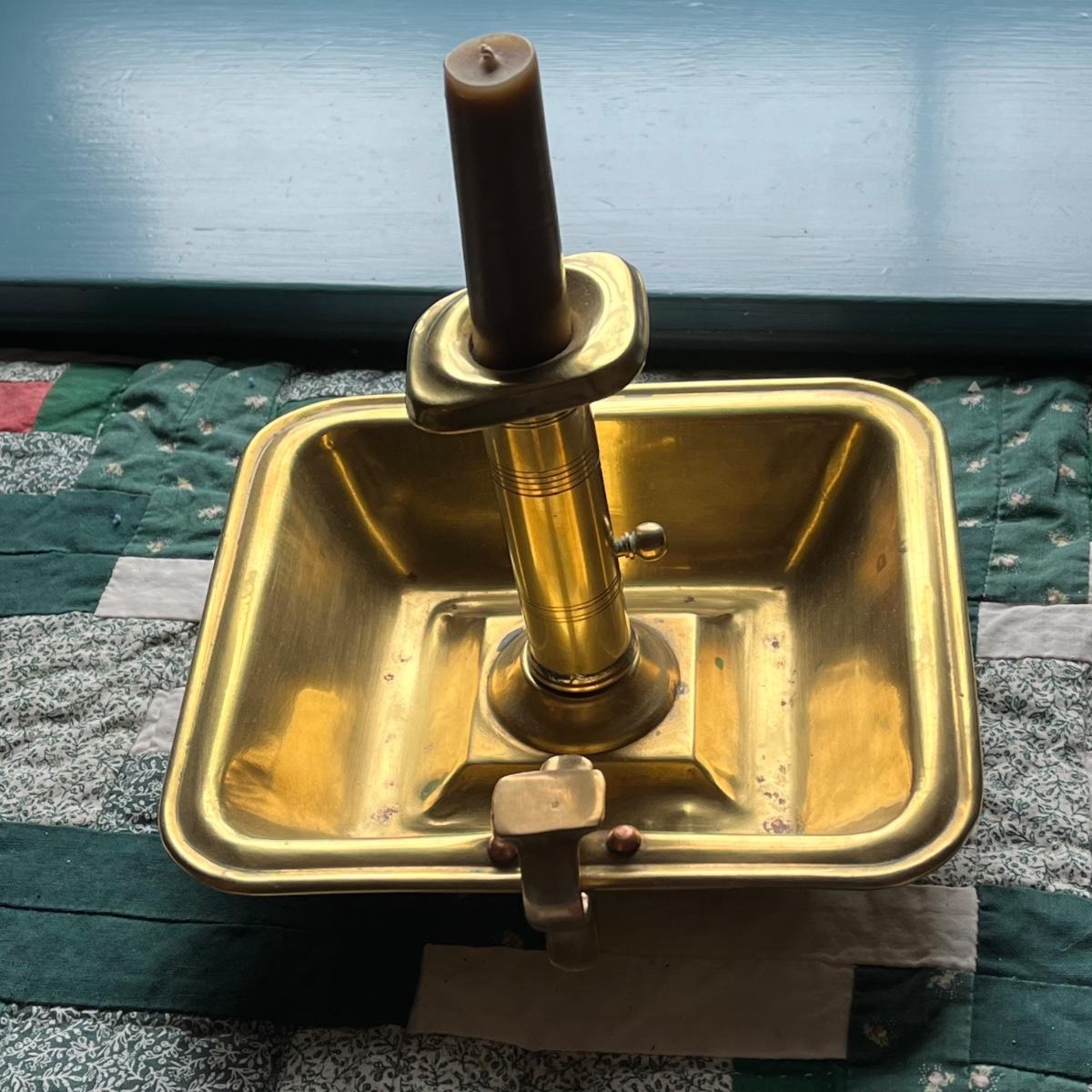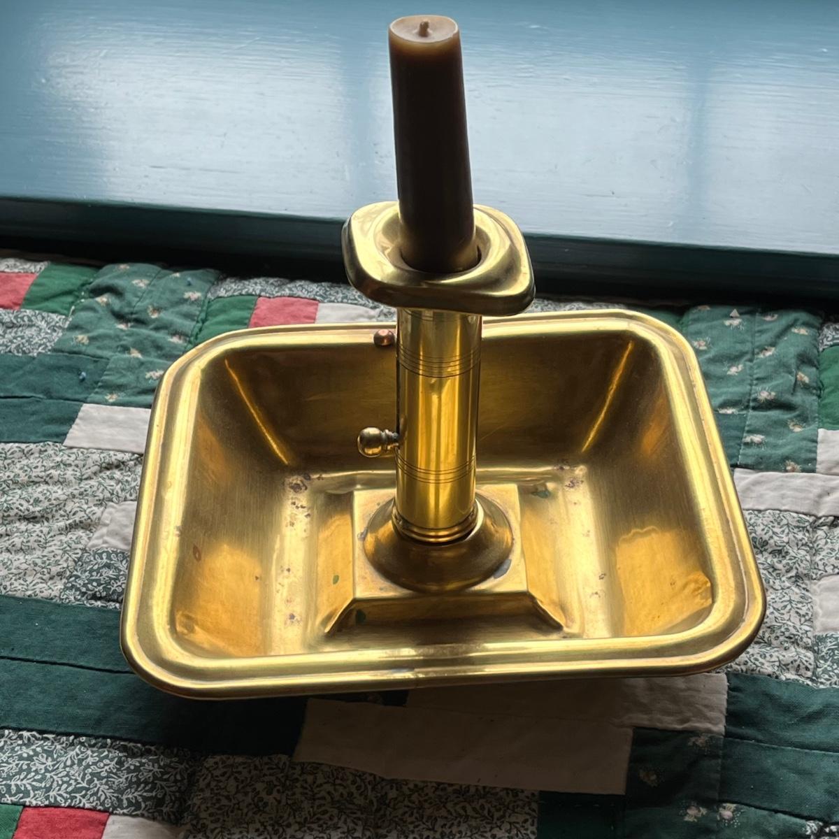 LOT 81H: Antique Colonial PushUp Pin Brass Chamber Finger Loop Candlestick Holder