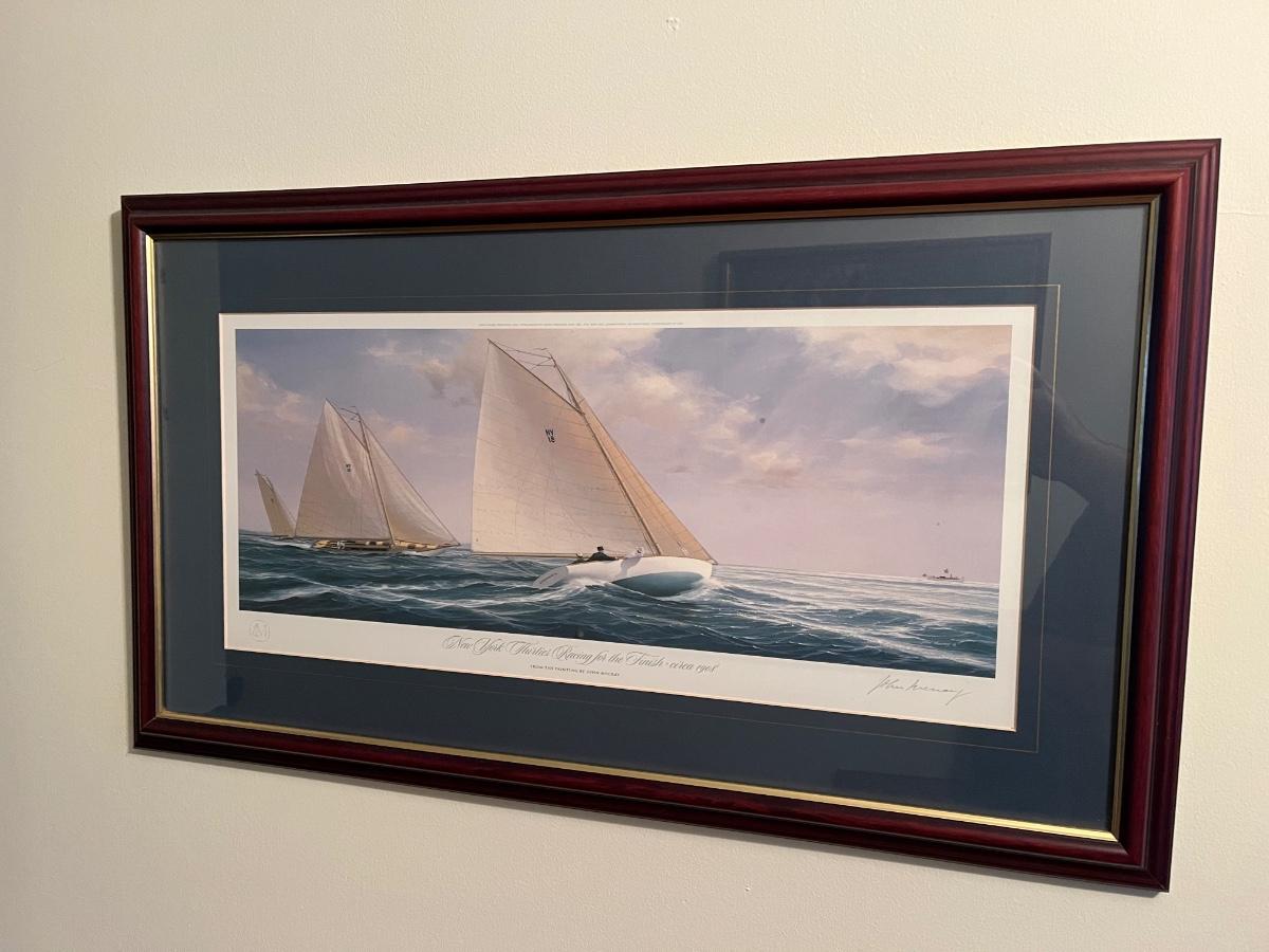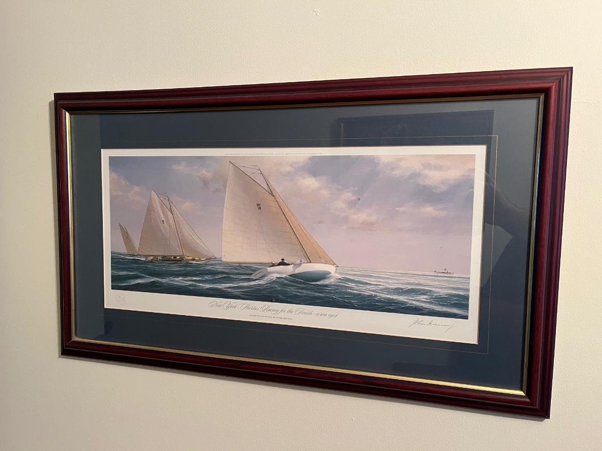 LOT 87H: Signed, Framed John Mecray Print - New York Thirties Racing for the Finish