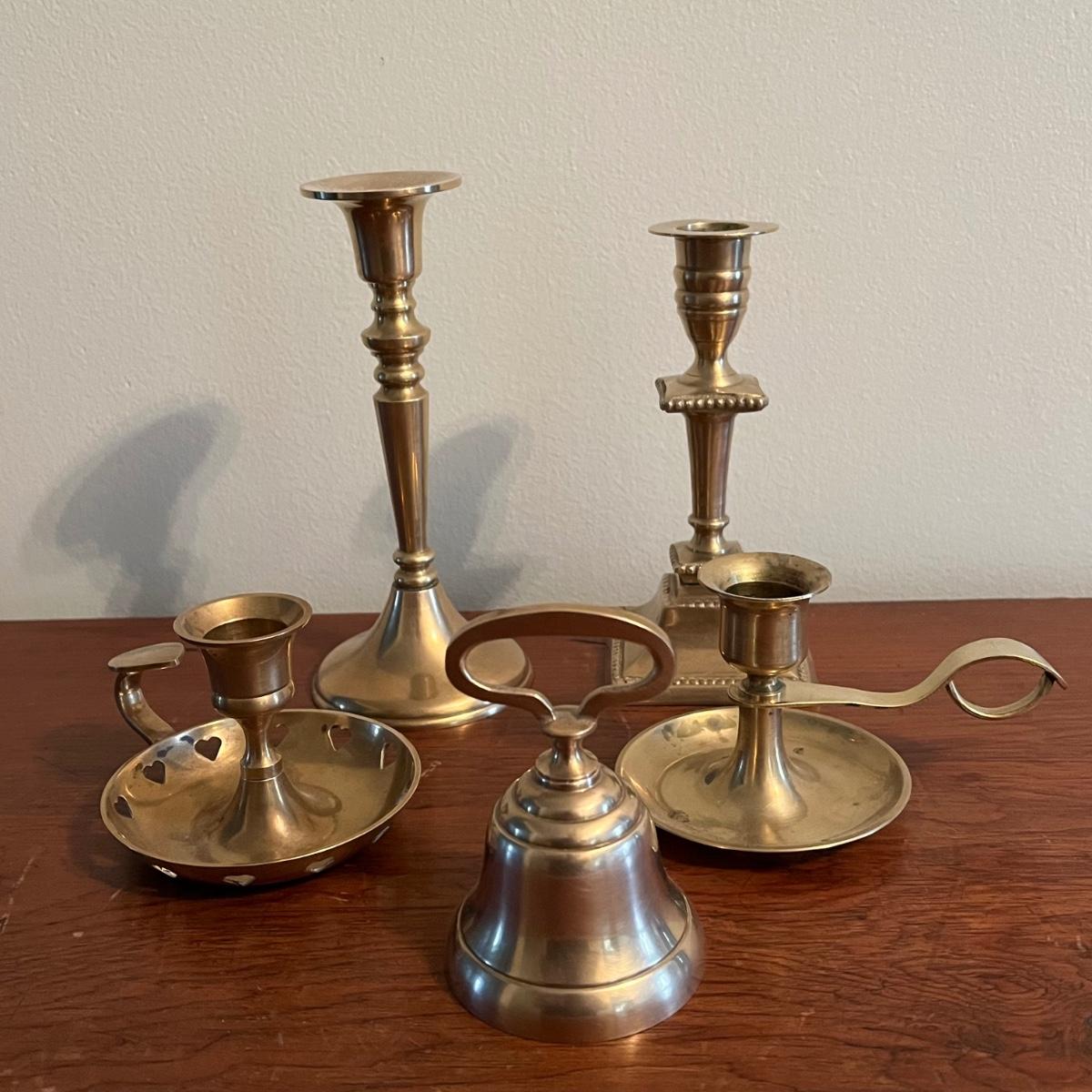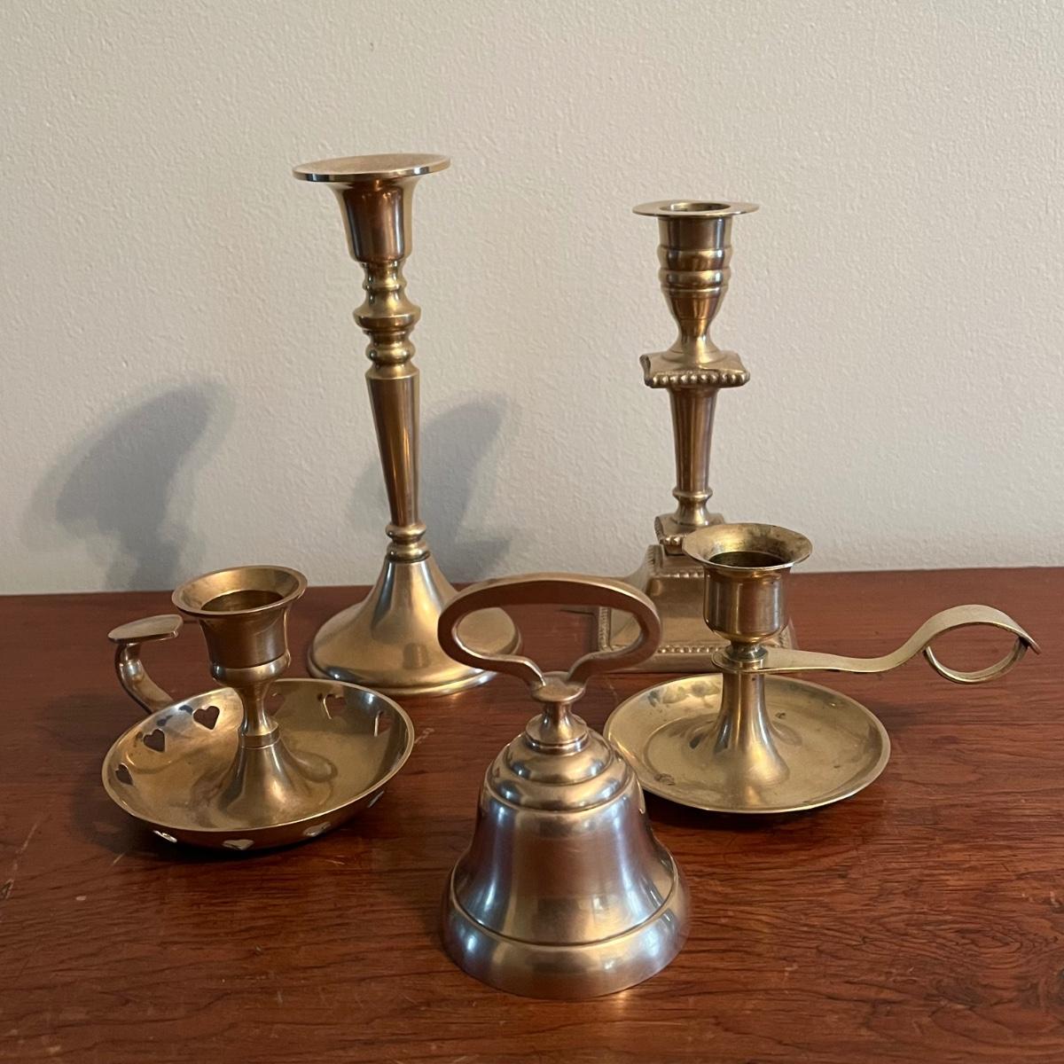 LOT 92H: Collection of Brass Candlesticks and Bell