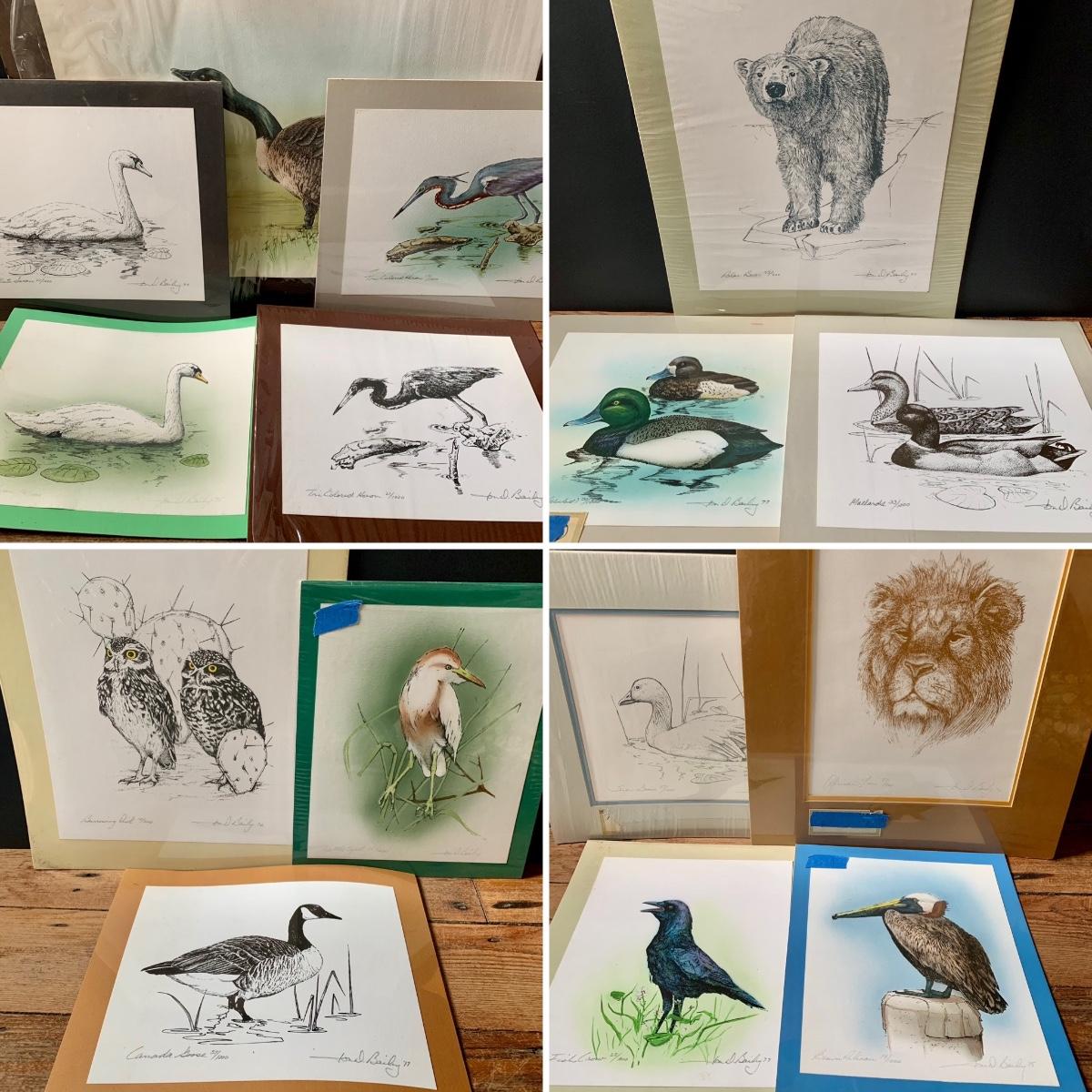 LOT 107 F: Artist Jon D. Bailey 15 Vintage Limited Edition Silk Screened Wildlife Prints
