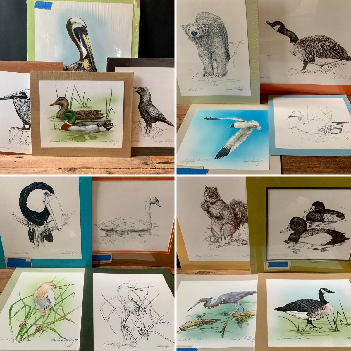 LOT 108 F: Artist Jon D. Bailey 16 Vintage Limited Edition Silk Screened Wildlife Prints