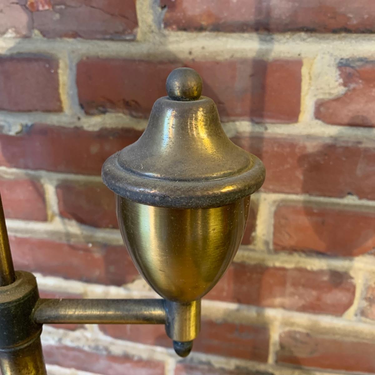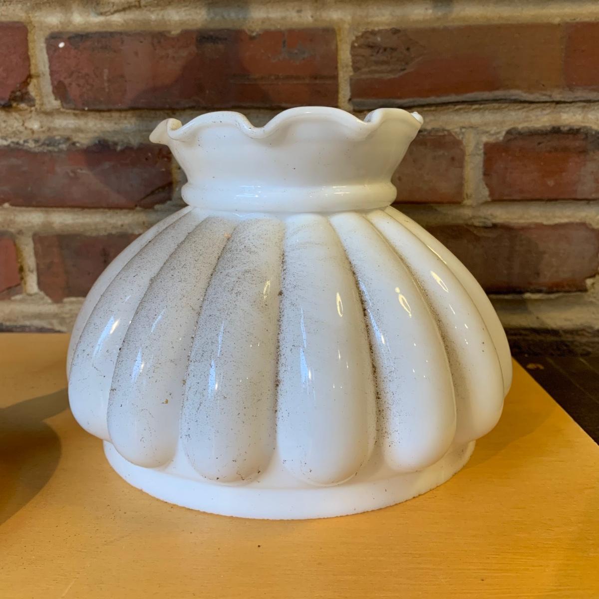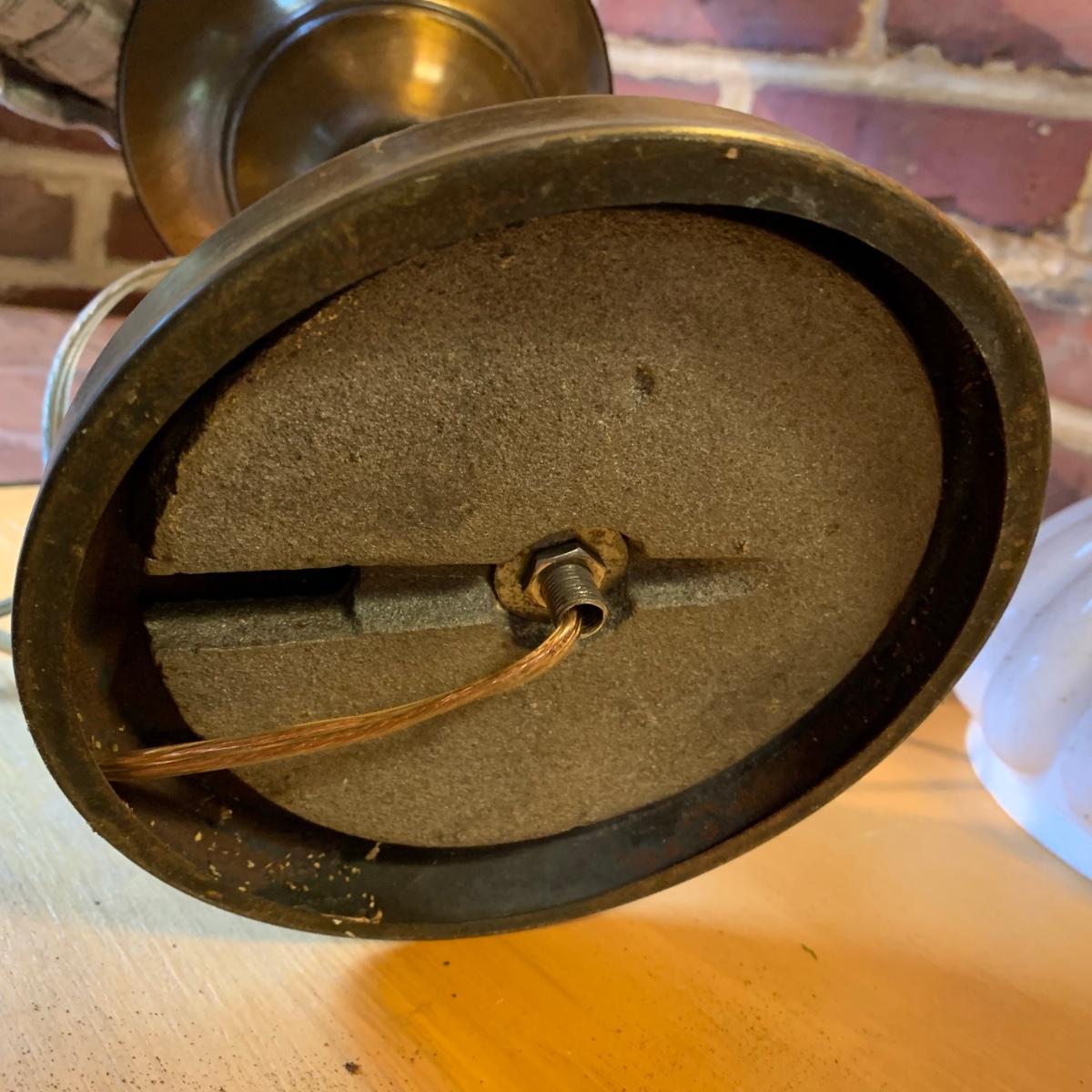LOT 114 Q: Vintage Brass "Student Lamp" W/ Milk Glass Shade & Painted Glass Chimney