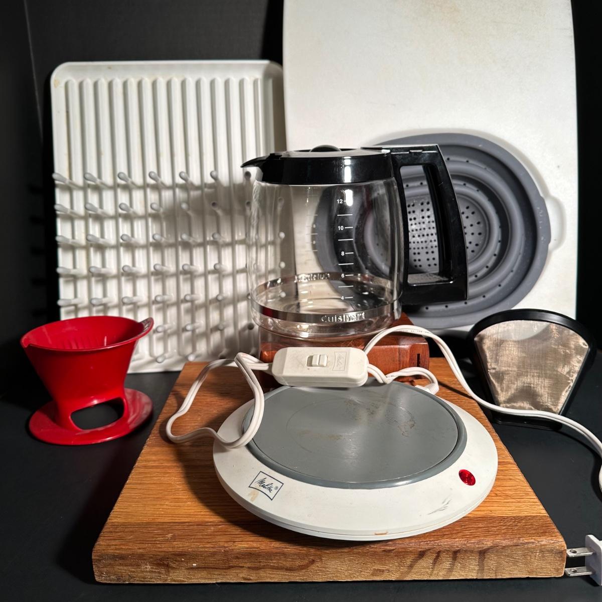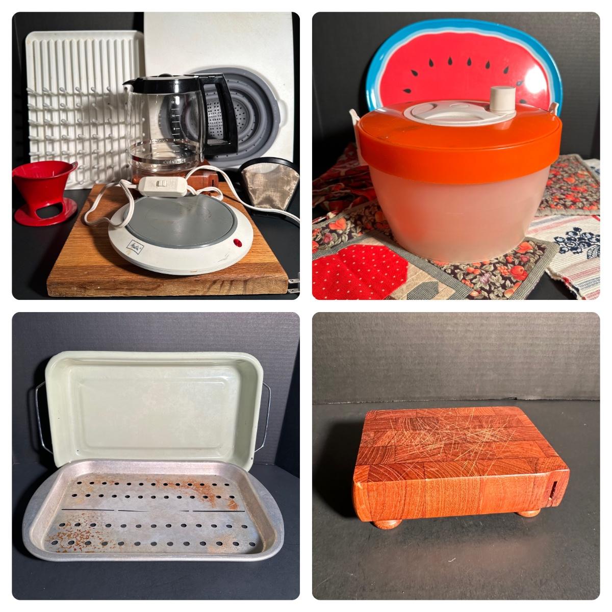LOT 153D: Kitchen Collection - Cutting Boards, Makitta Coffee Warmer, Salad Spinner, Enamel Dish & More
