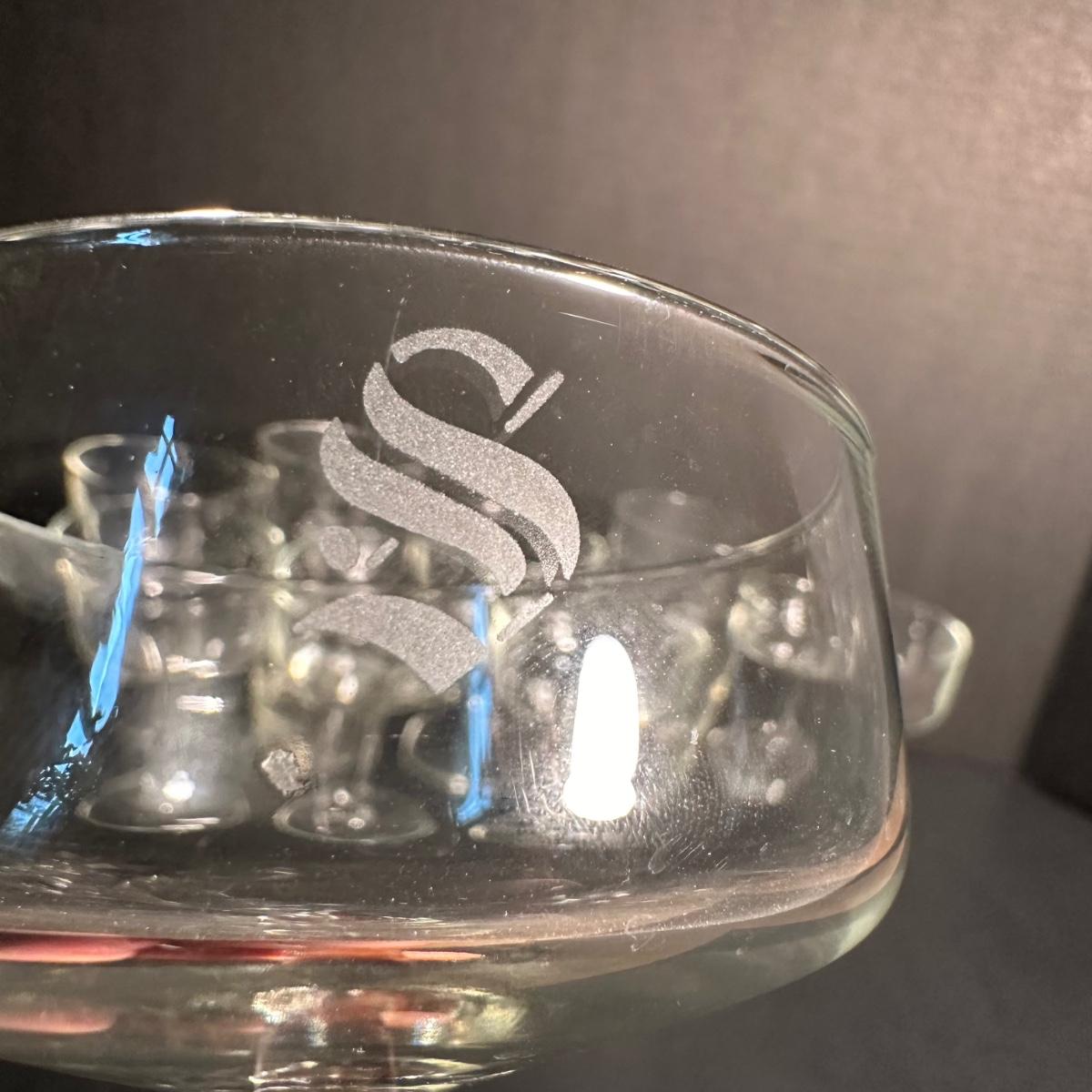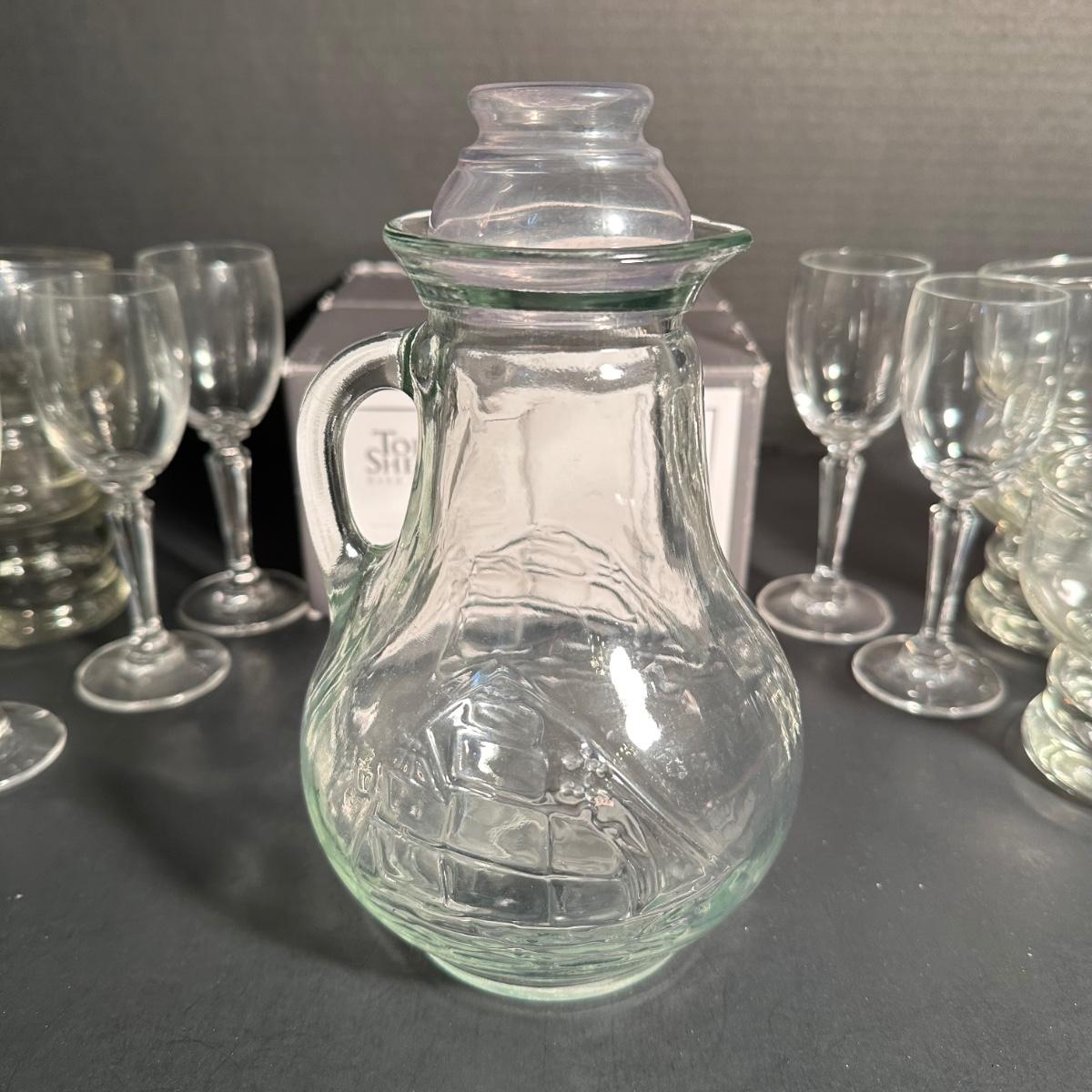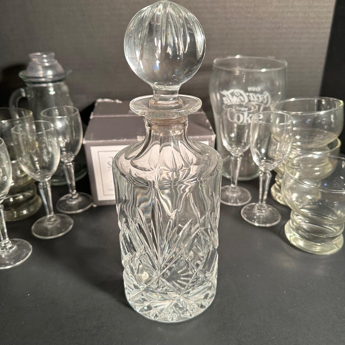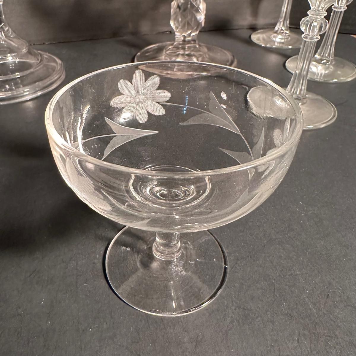 LOT 154D: Bar Collection - Top Shelf Old Fashion Glasses, Lancaster Glass 3 Footed Rose Petal Pink Scalloped Bow, & More