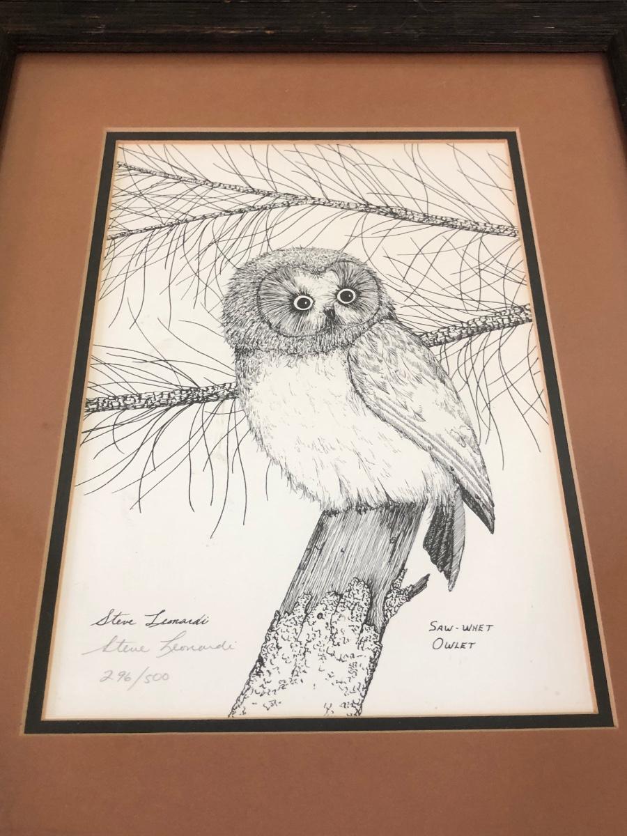 LOT 178Z: Signed & Numbered Steve Leonardi Saw-Whet Owl Print LE 296/500
