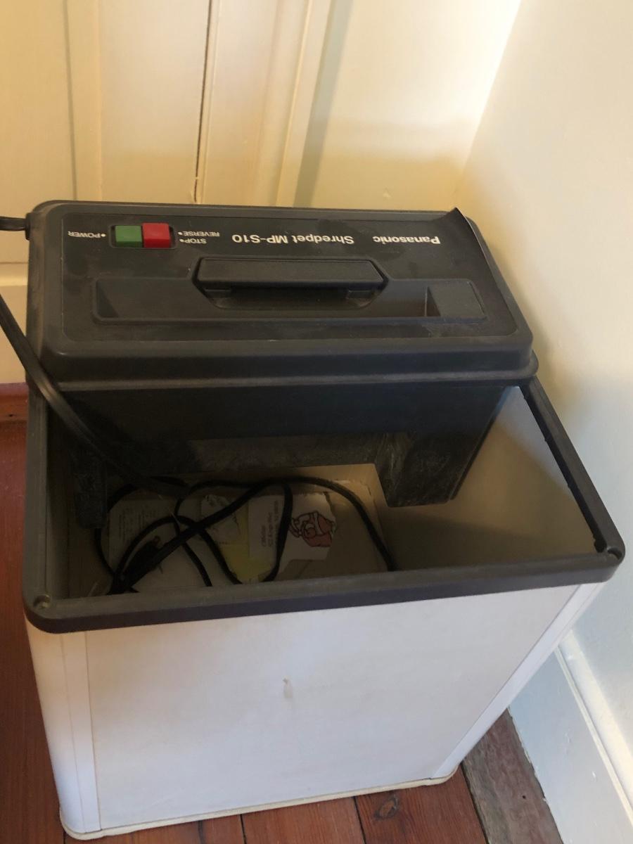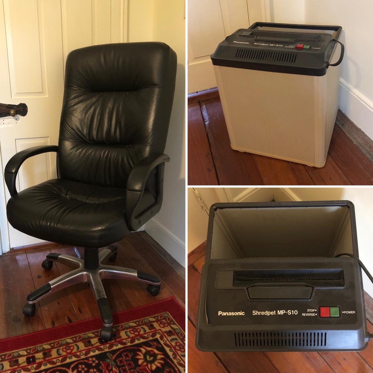 LOT 182Y: Black Rolling Office Chair & Panasonic Shredpet MP-S10 Paper Shredder