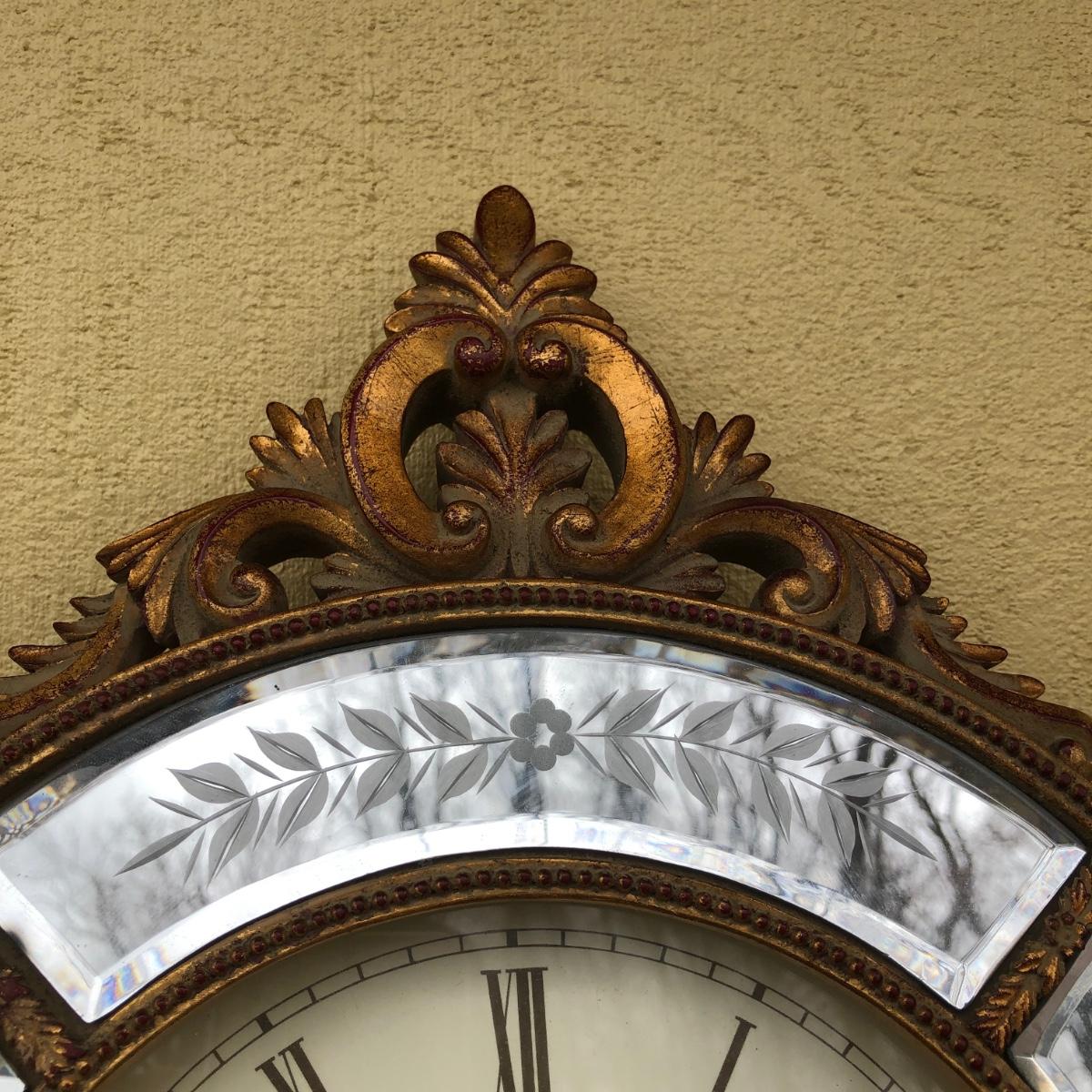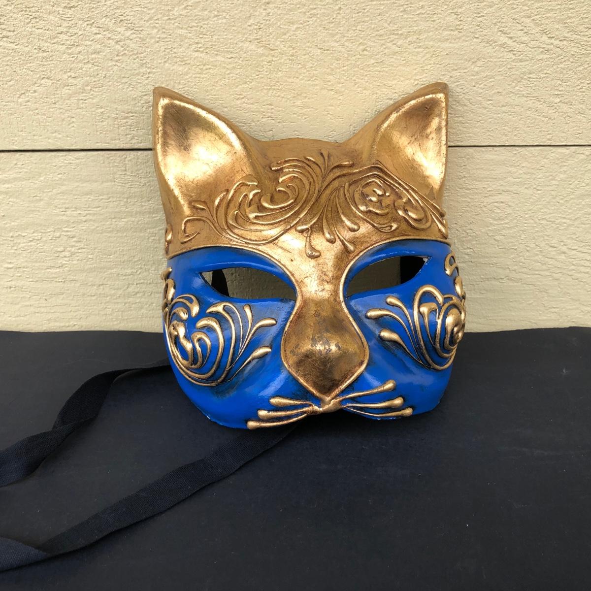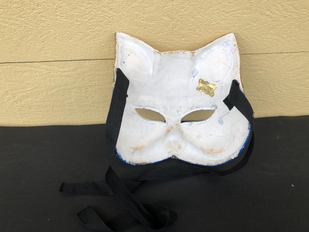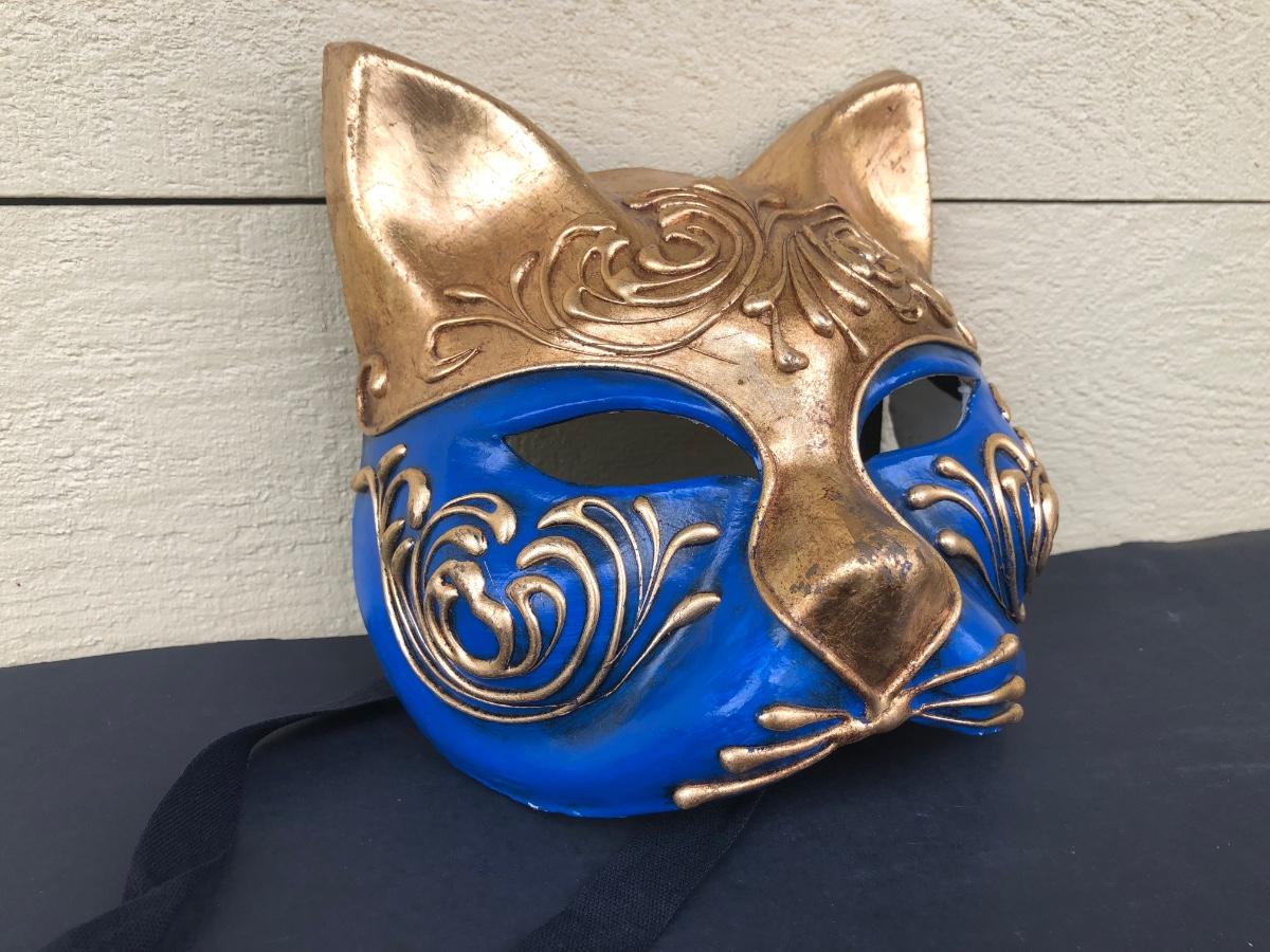 LOT 198G: Vintage Etched Mirror Wall Clock & Atelier Marega Gold & Blue Cat Mask