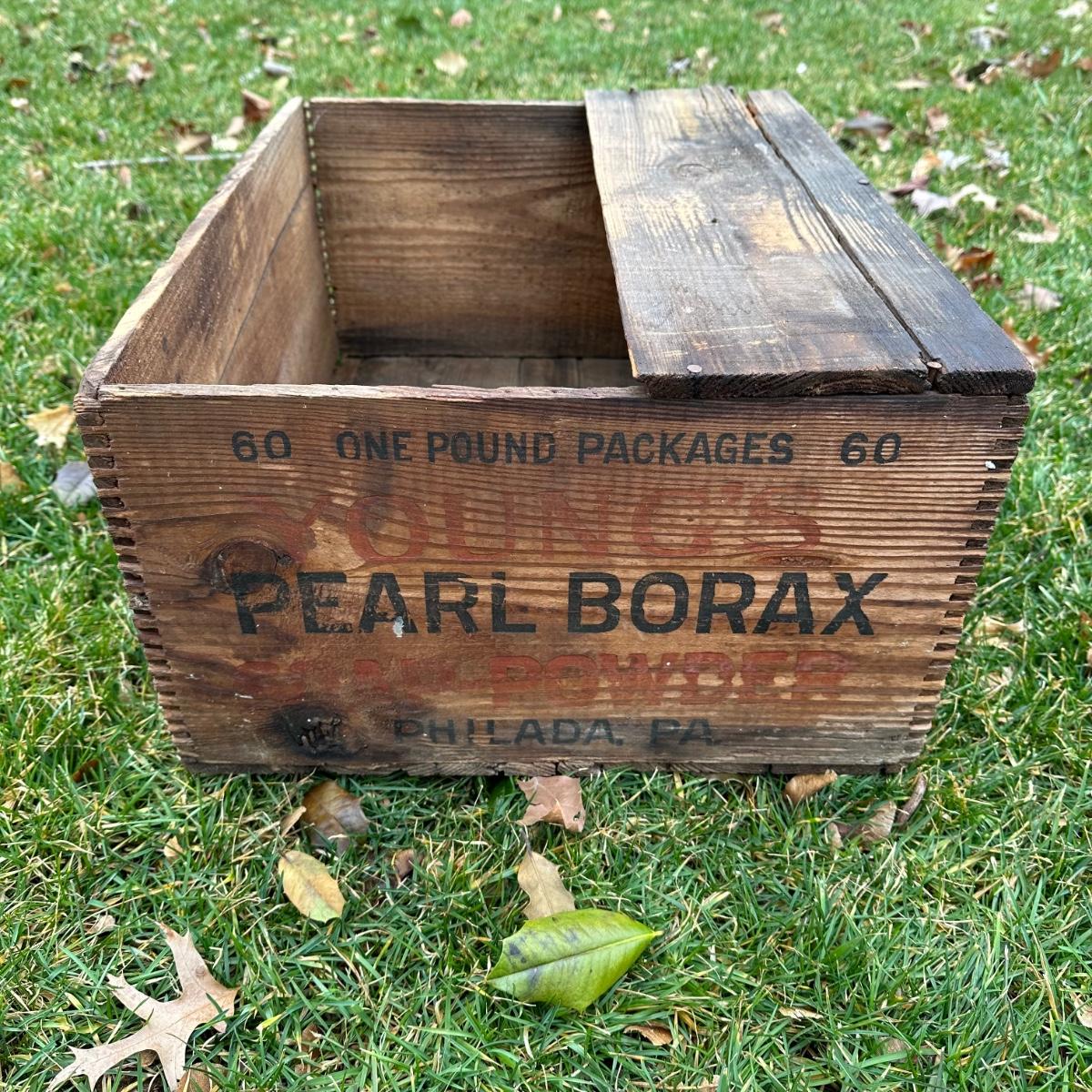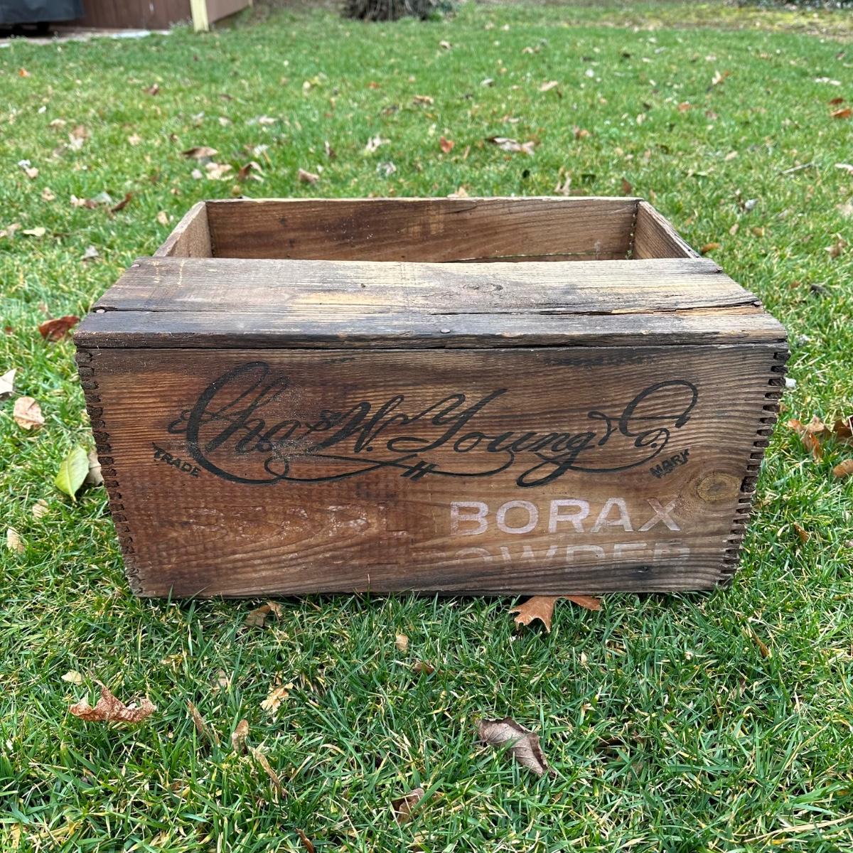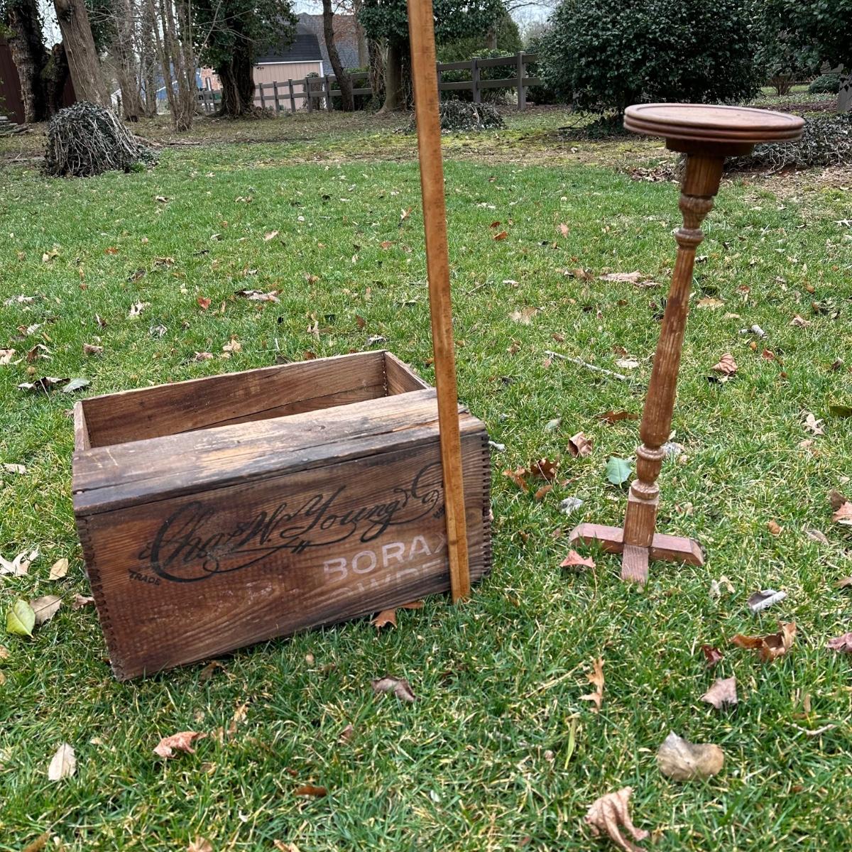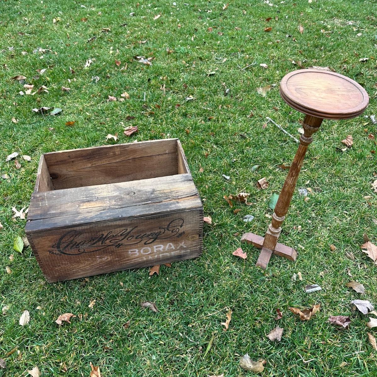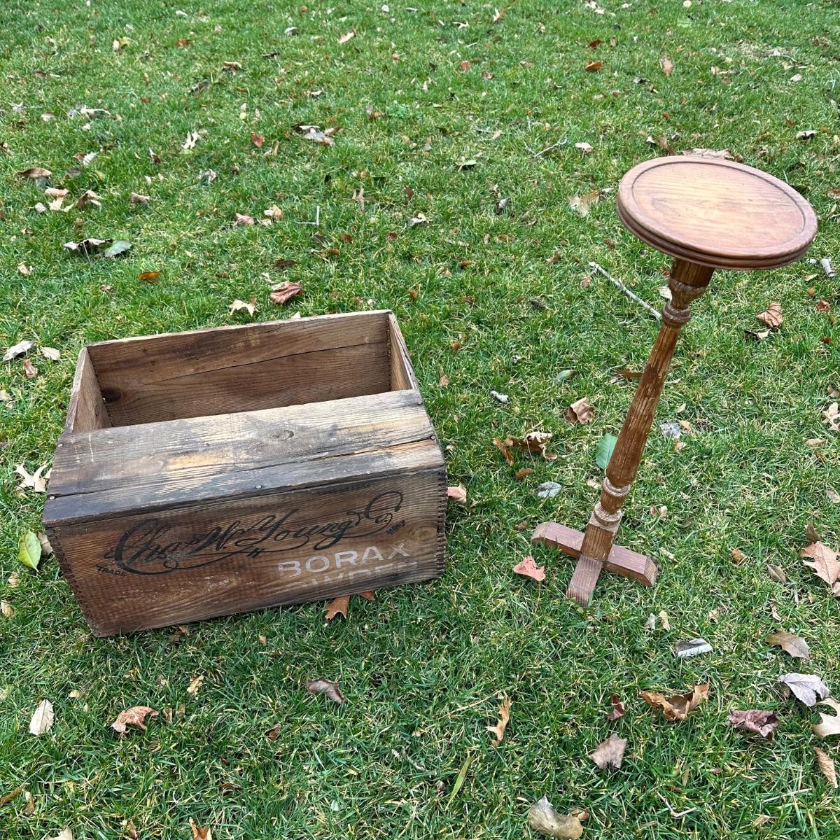 LOT 215S: Vintage Wooden Ashtray Stand w/ Borax Powder Crate