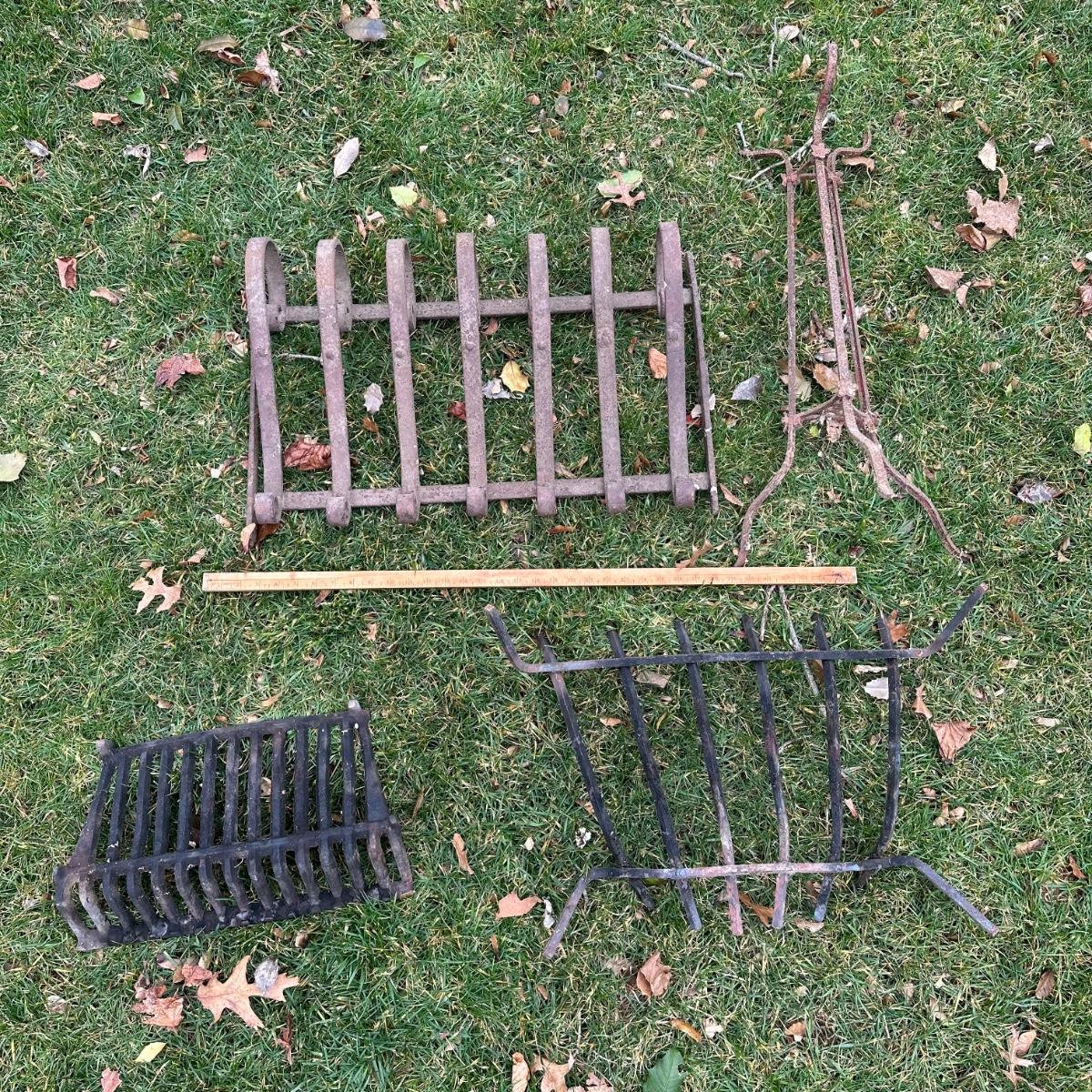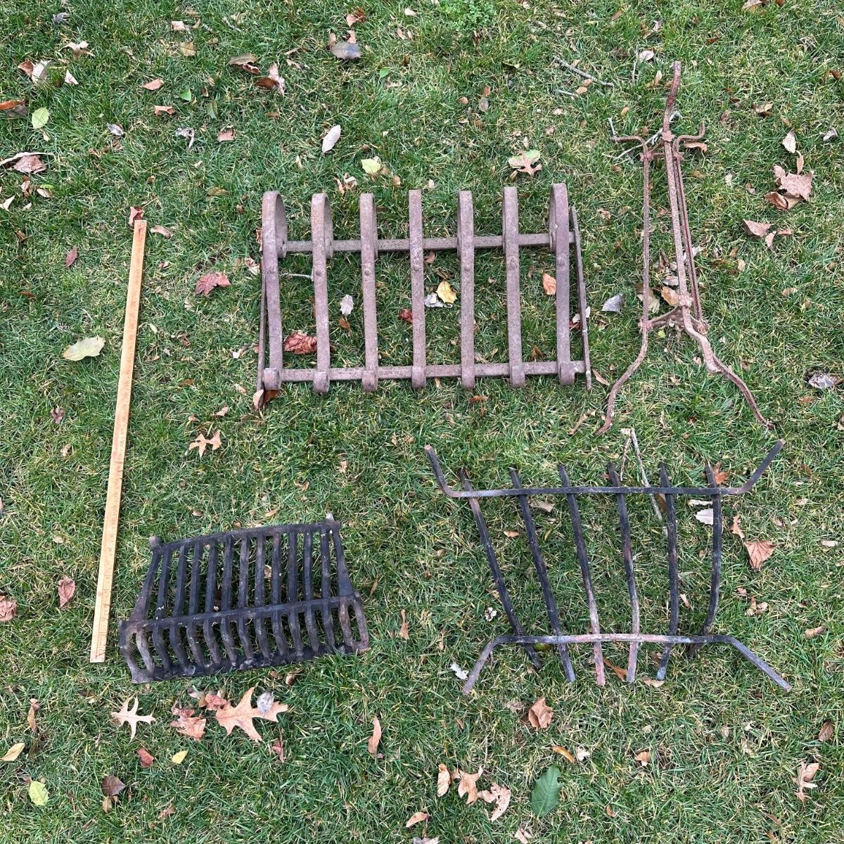 LOT 217S: Vintage Cast Iron Fireplace Grates w/ Tool Stand