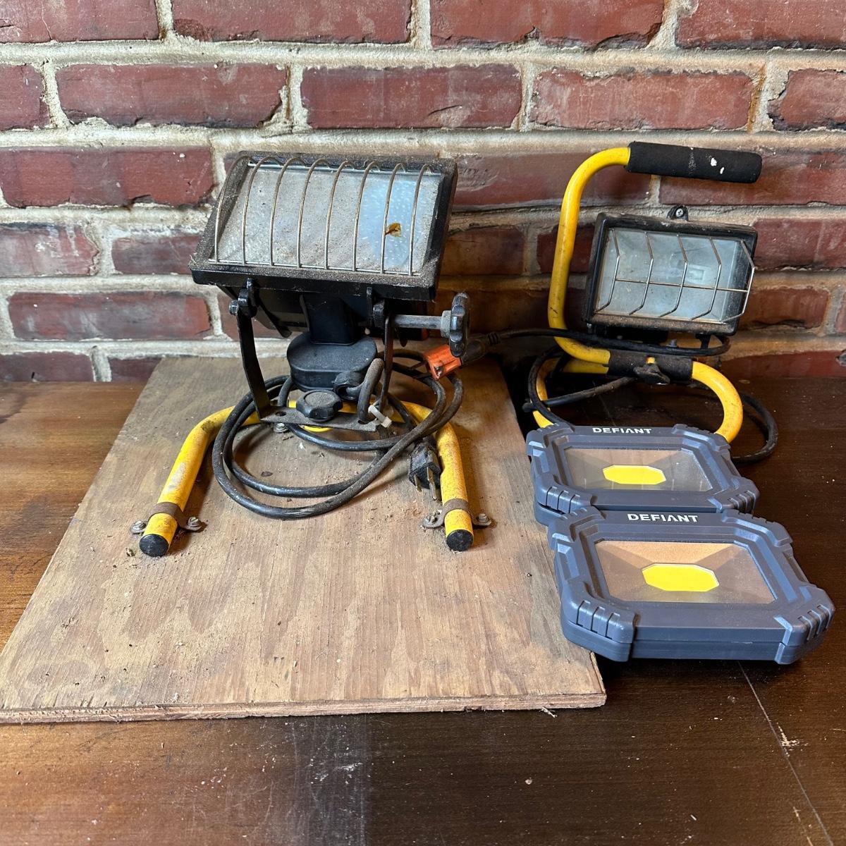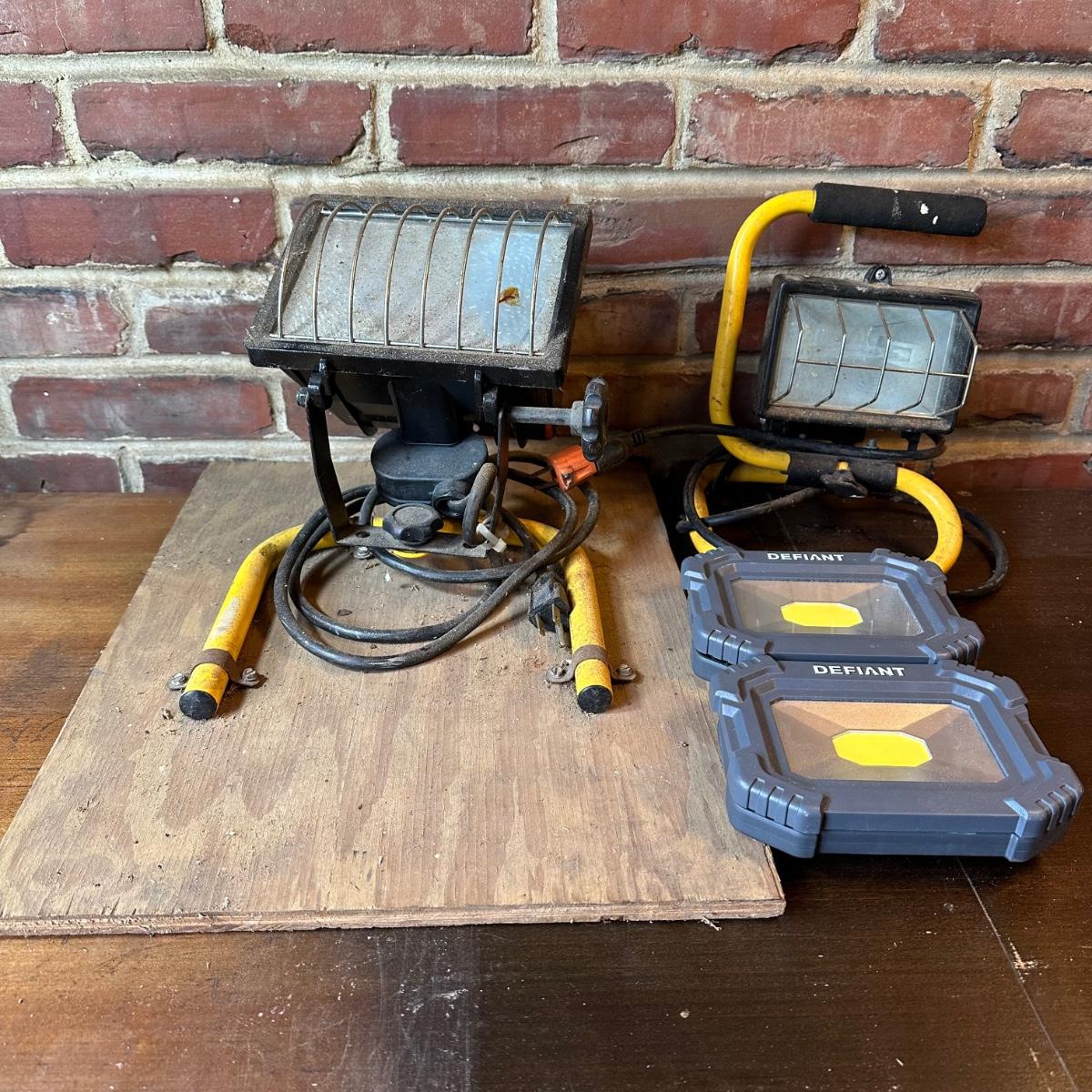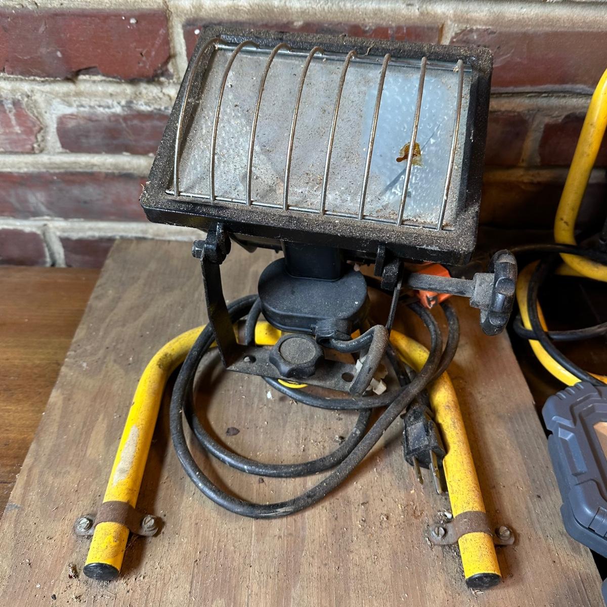 Untested, one flood light is mounted to wood - Please see all pictures as they are the best representation of the items. The pictures show condition, measurements if taken, and what is included in the lot. Due to the large amount that we photograph and the time frame, we are not always able to take measurements. All items unless noted, are pre-owned and have been used. If you purchased furniture, you must bring help. We do not allow one person to carry large furniture out on their own. Bring help, tools and a truck for the safety of our client’s homes, and your personal safety. Any damages that result to the property including walls, and floors due to moving of the furniture will be charged to the buyer. Company policy. Thank you.