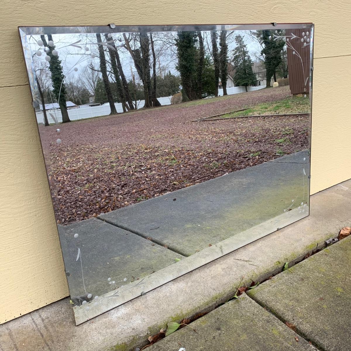 LOT 241 G: Vintage Engraved Mirror W/ Beveled Edge