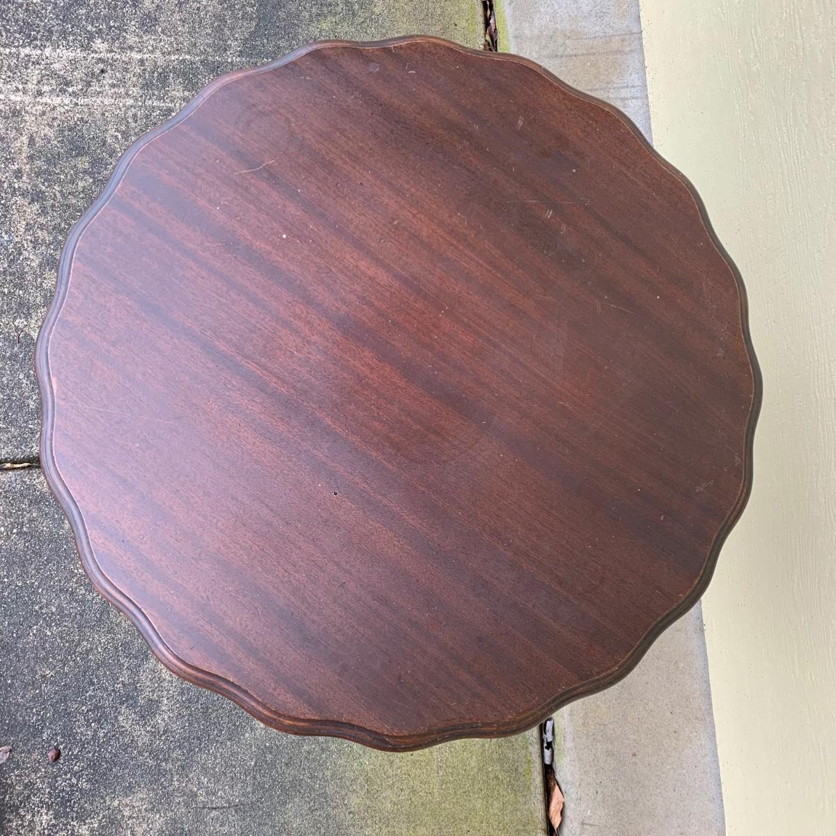 LOT 242 G: Vintage Mahogany Scalloped Edge Side Table W/ Claw Capped Legs