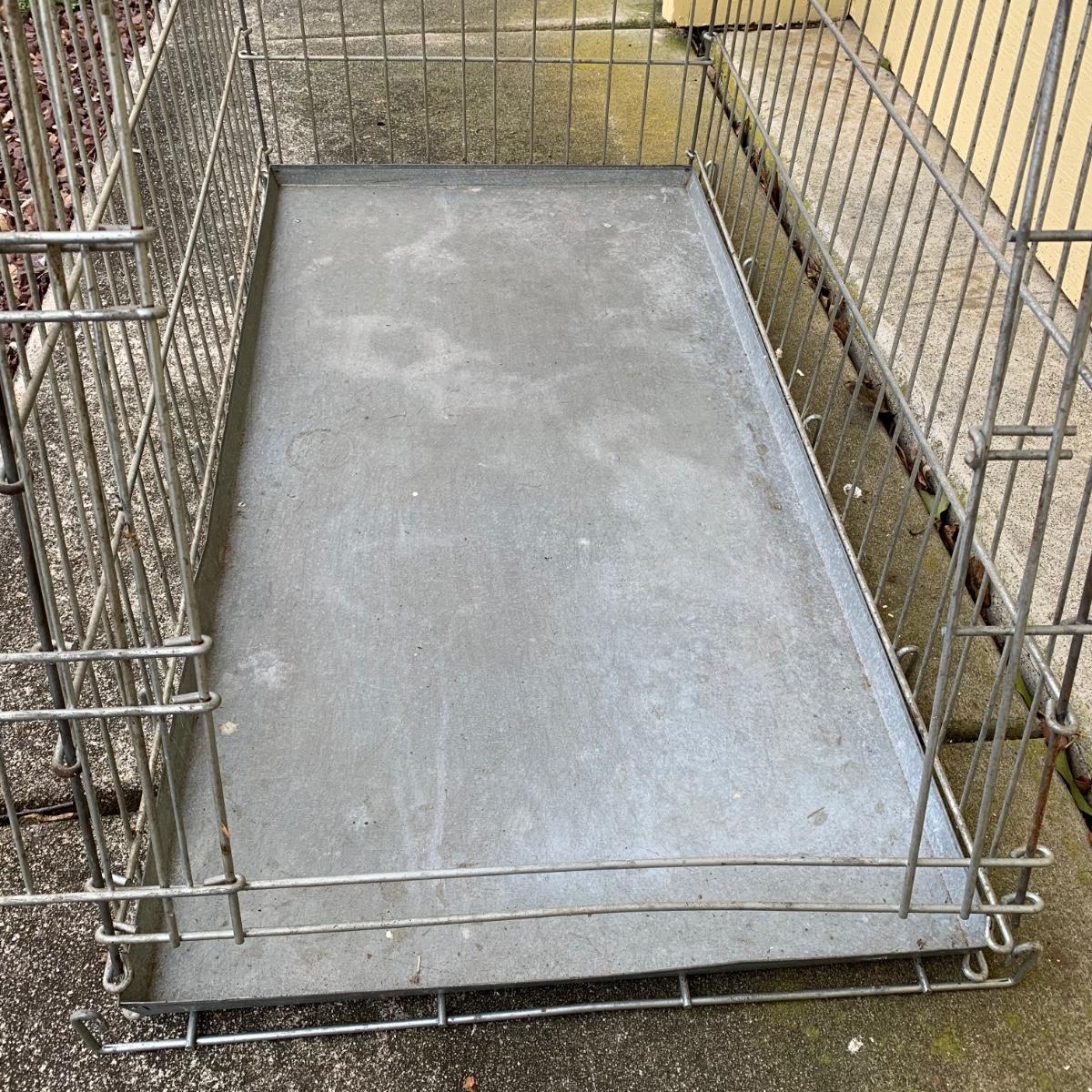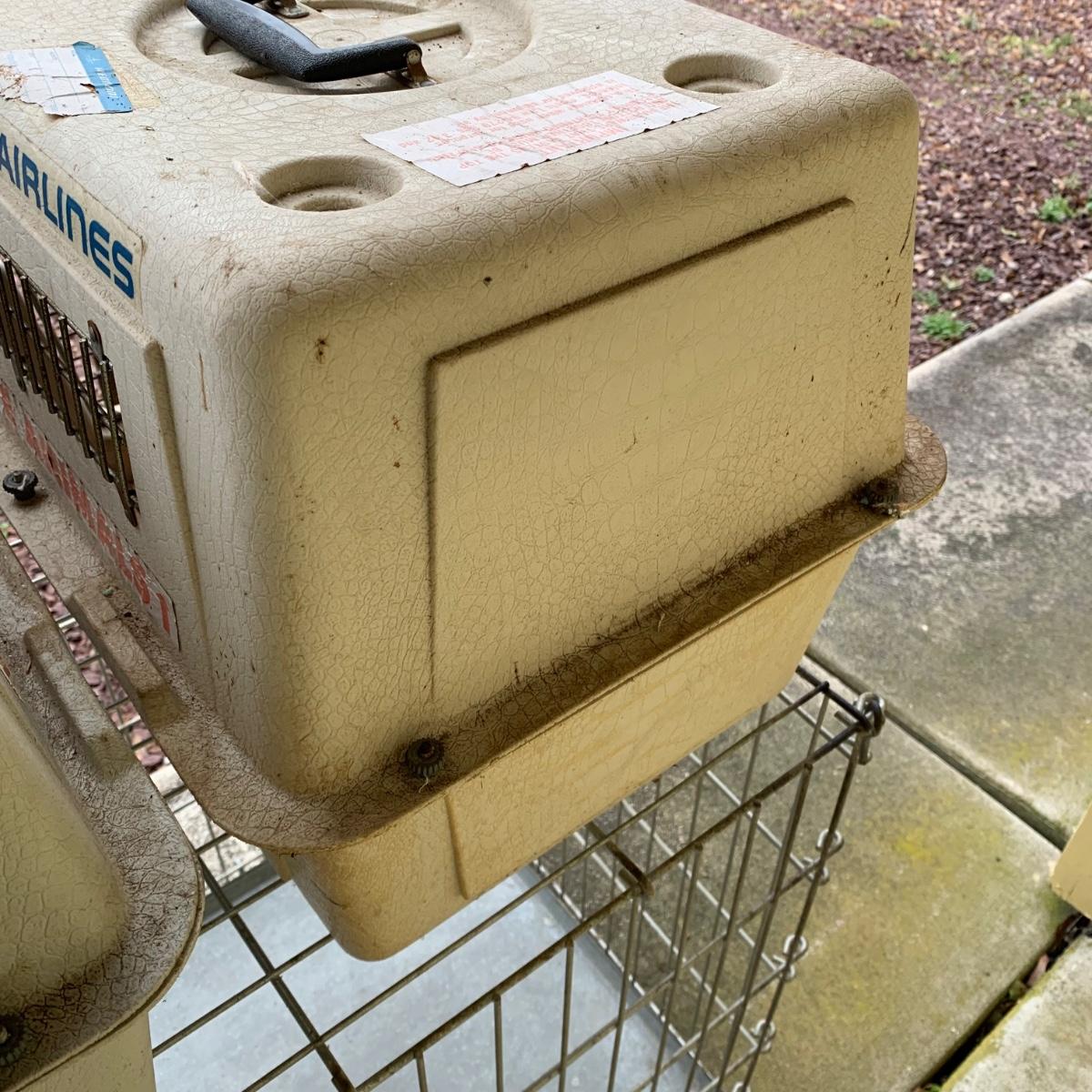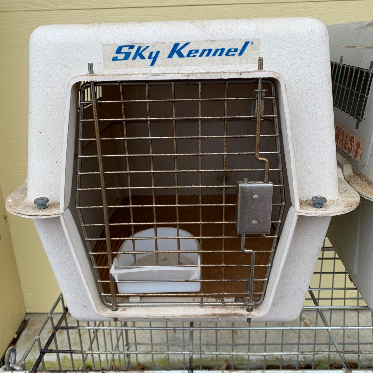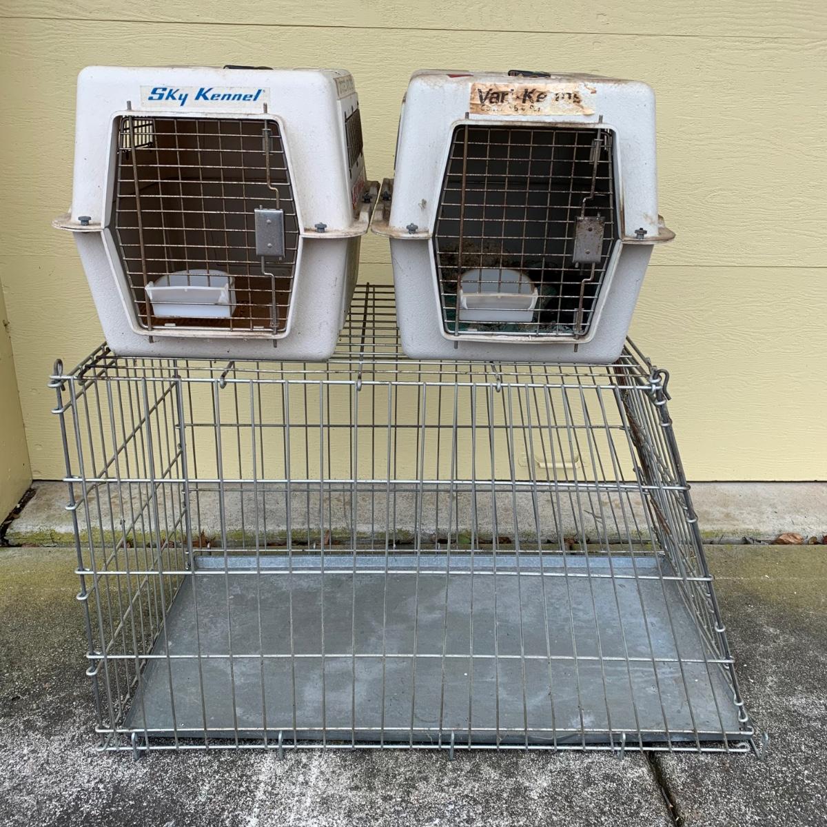 LOT 256 G: Large Metal Angle Fronted Dog Crate & 2 Small Sky Kennels/Carrying Crates