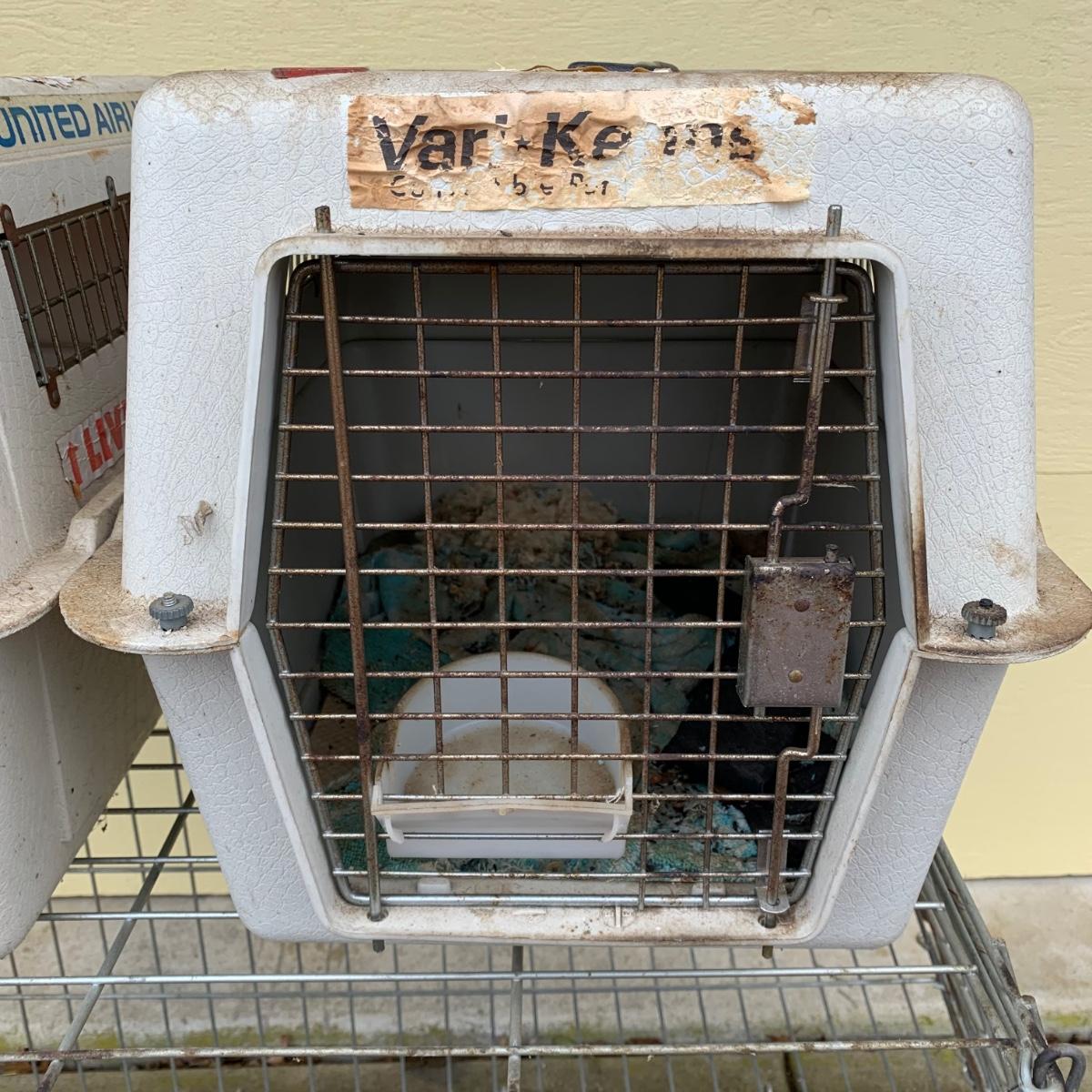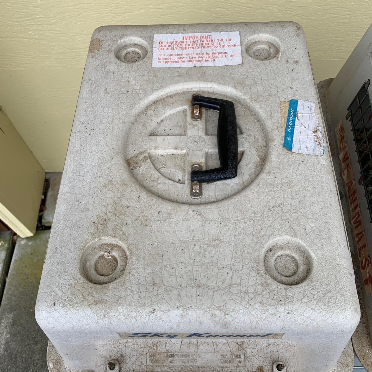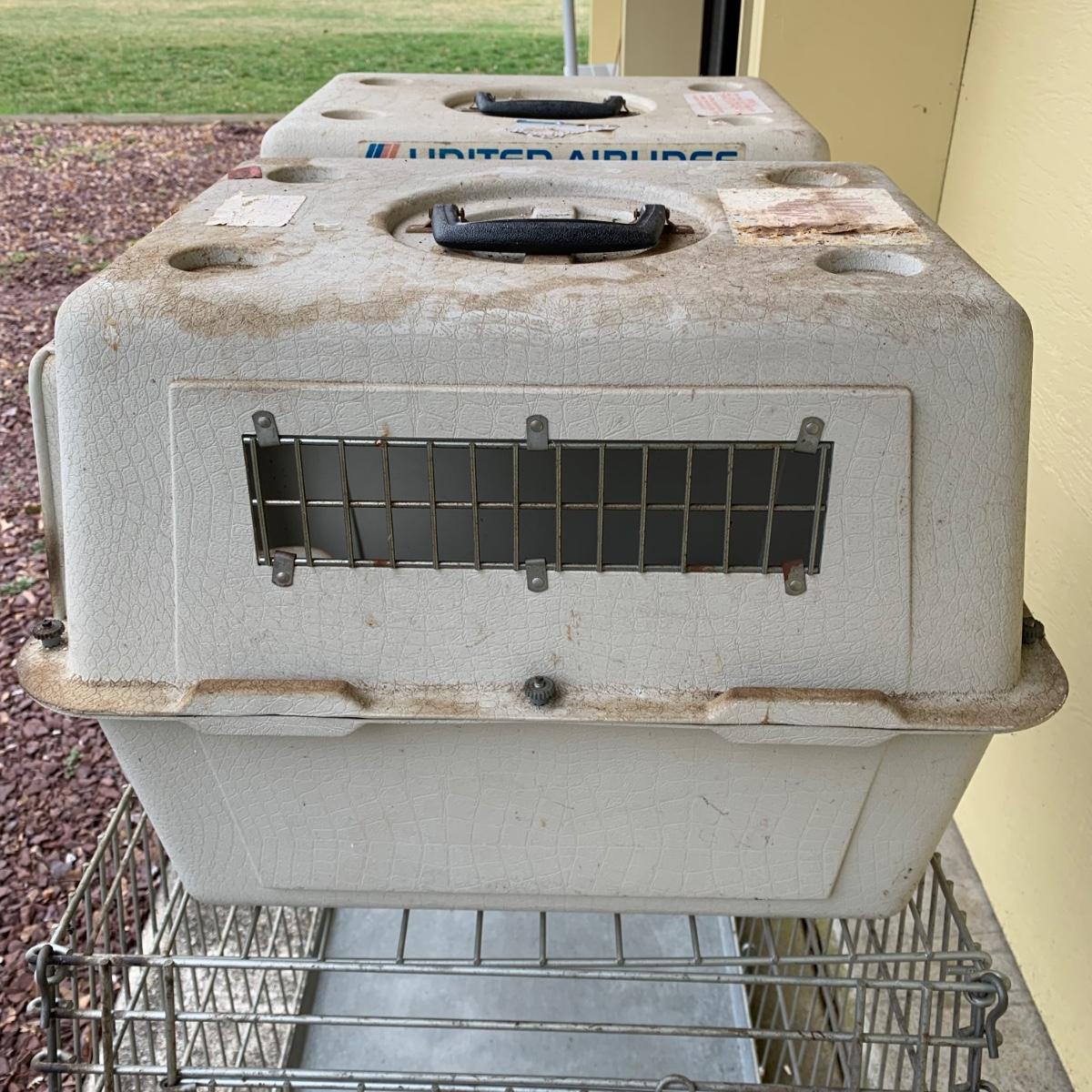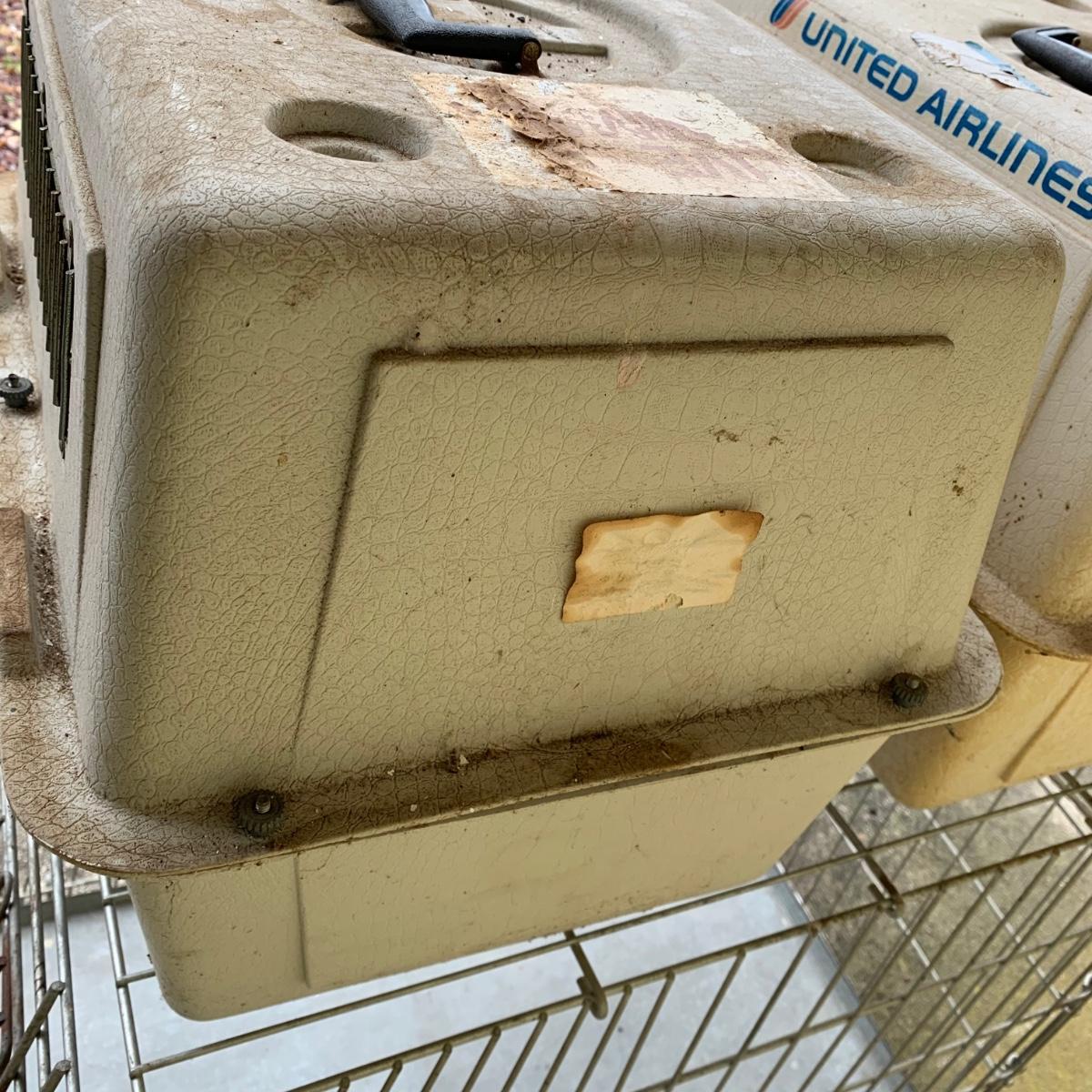 LOT 256 G: Large Metal Angle Fronted Dog Crate & 2 Small Sky Kennels/Carrying Crates