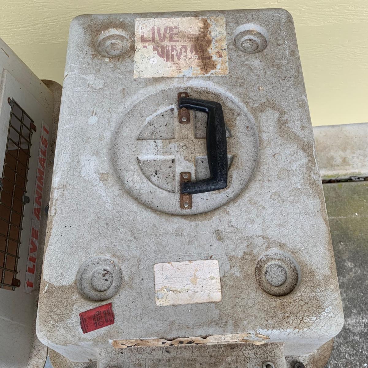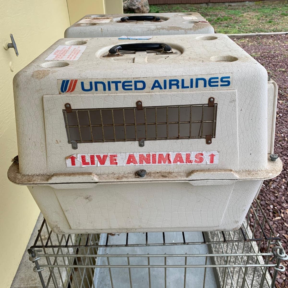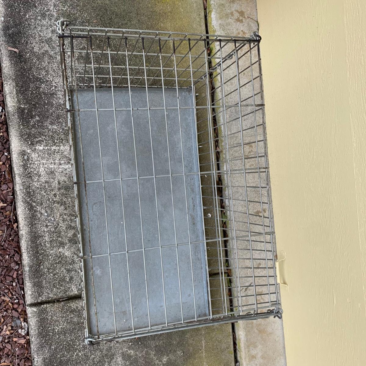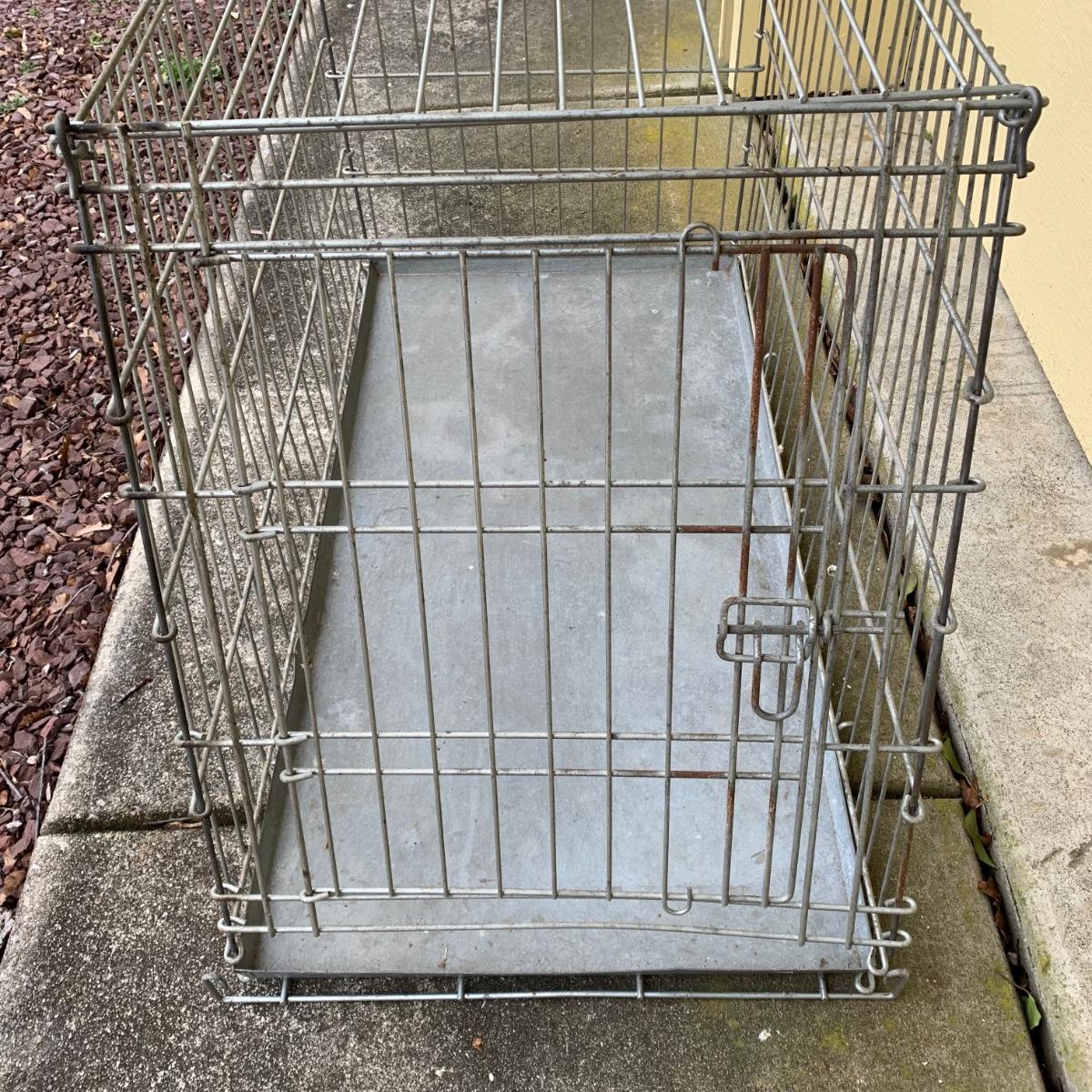 LOT 256 G: Large Metal Angle Fronted Dog Crate & 2 Small Sky Kennels/Carrying Crates